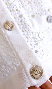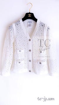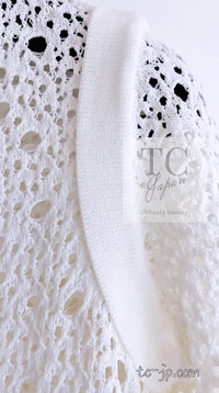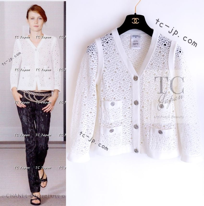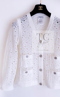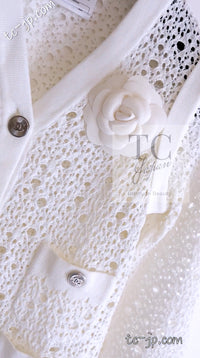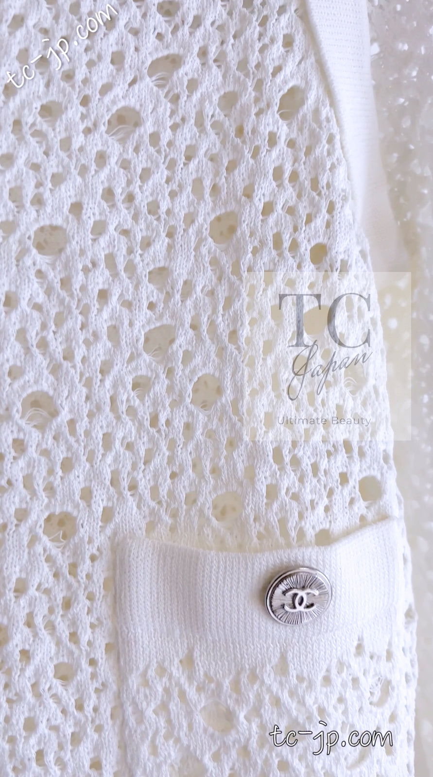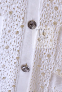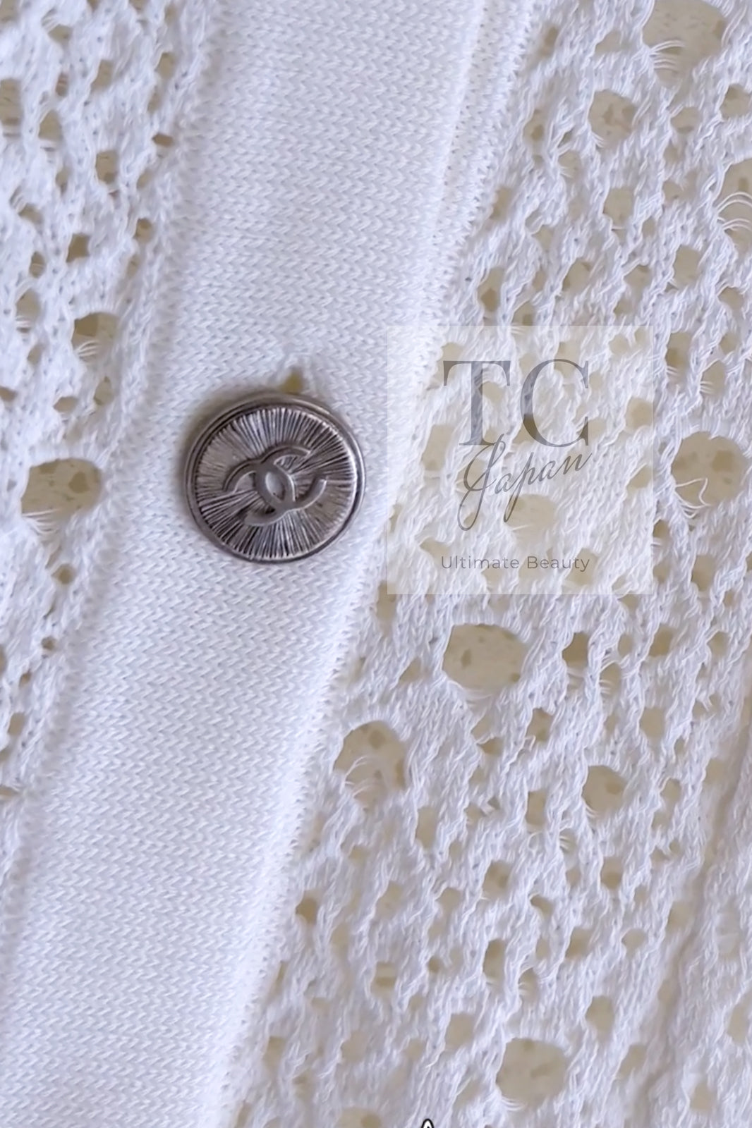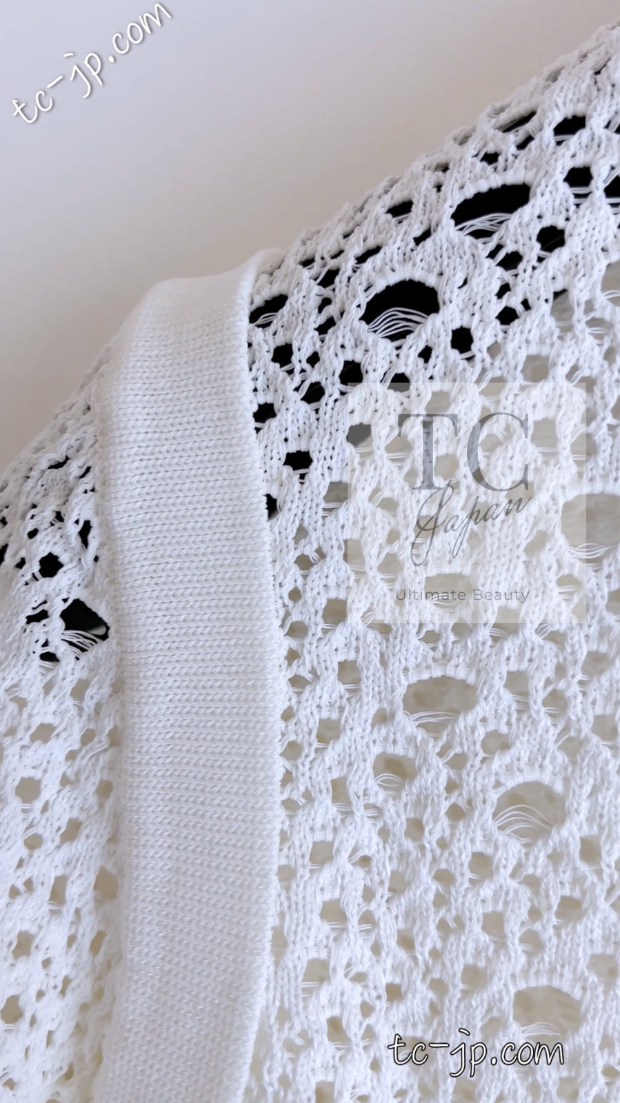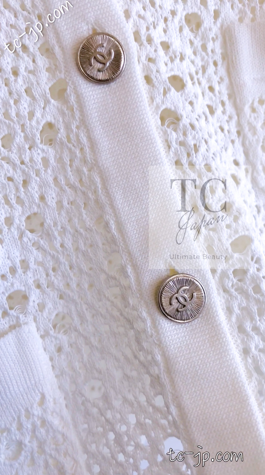 CHANEL 12S White Cotton Eye-let V-Neck Knit Cardigan 34 36 シャネル ホワイト コットン アイレット Vネック ニット カーディガン 即発
