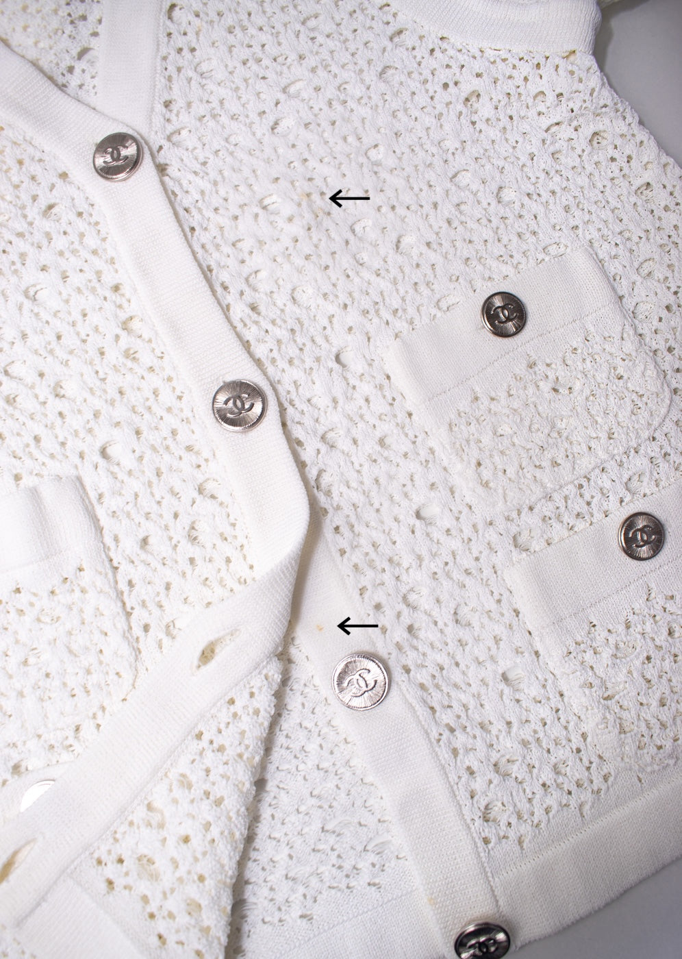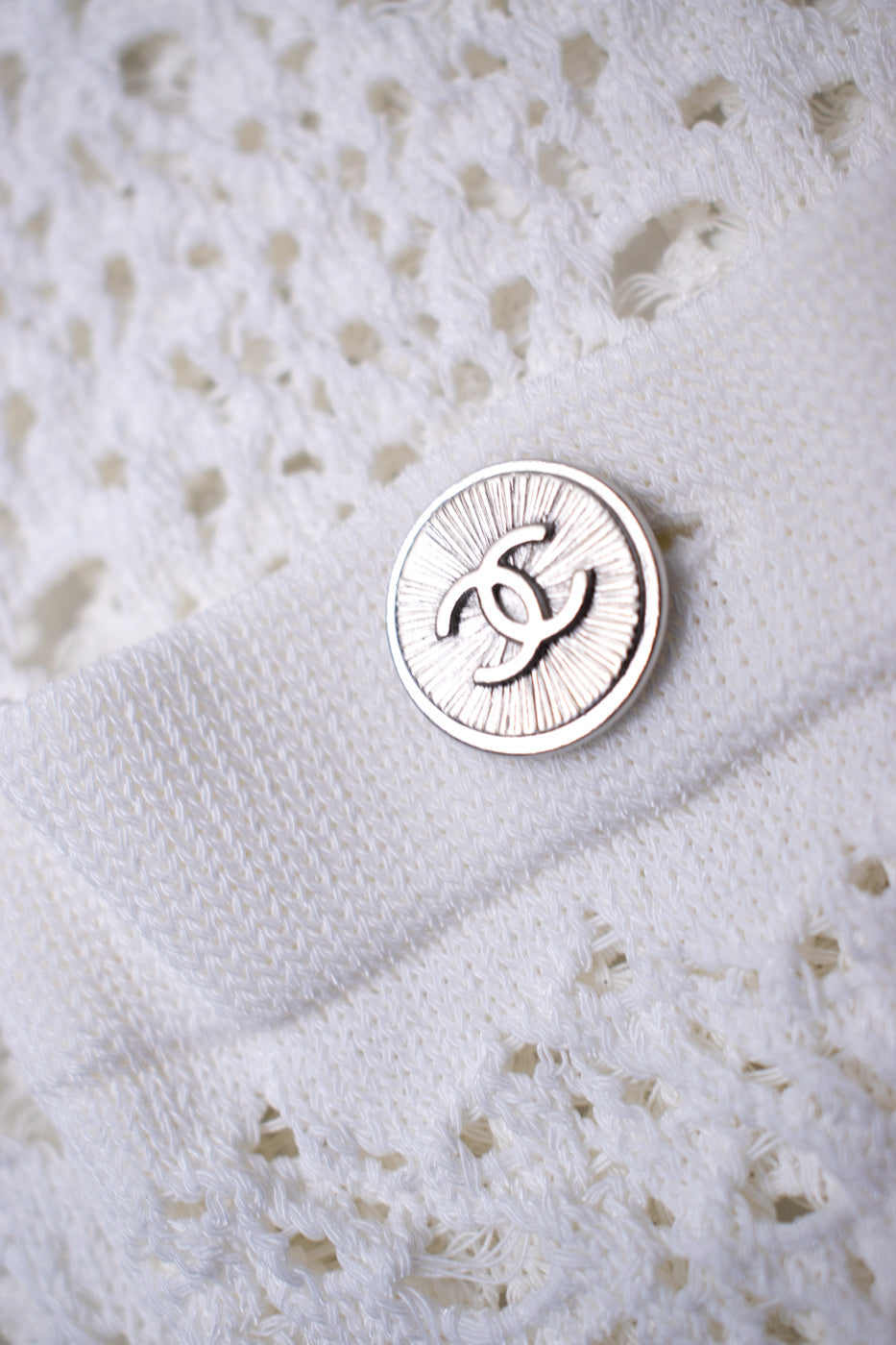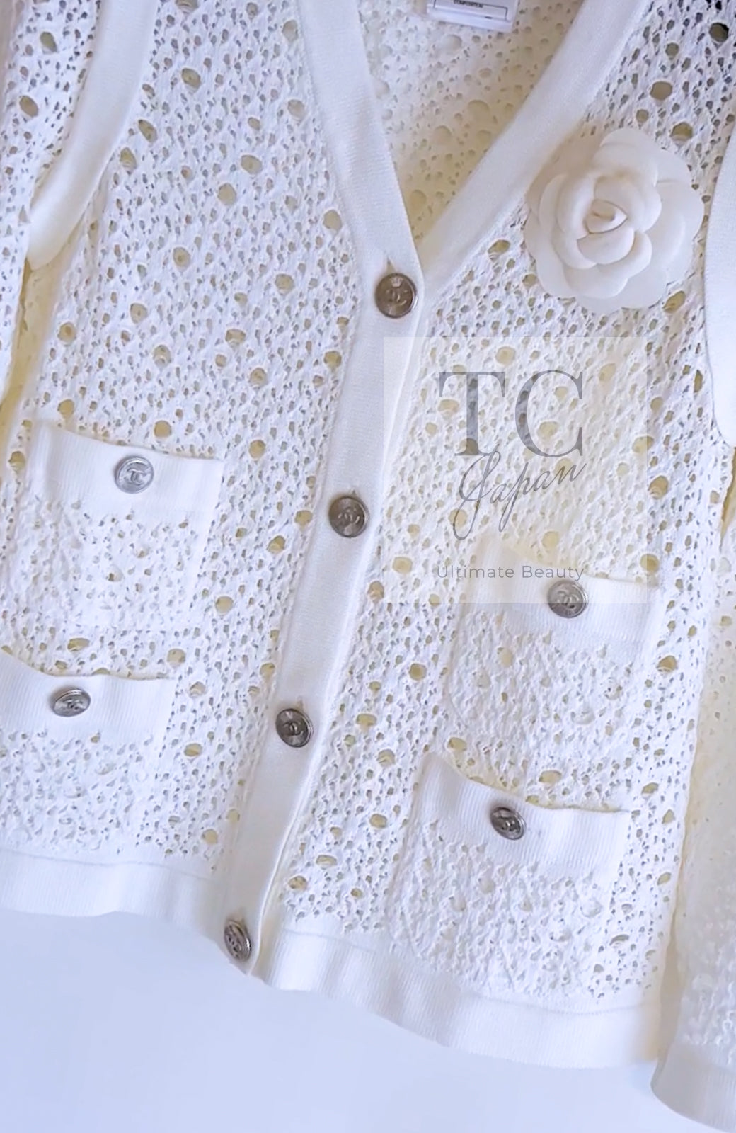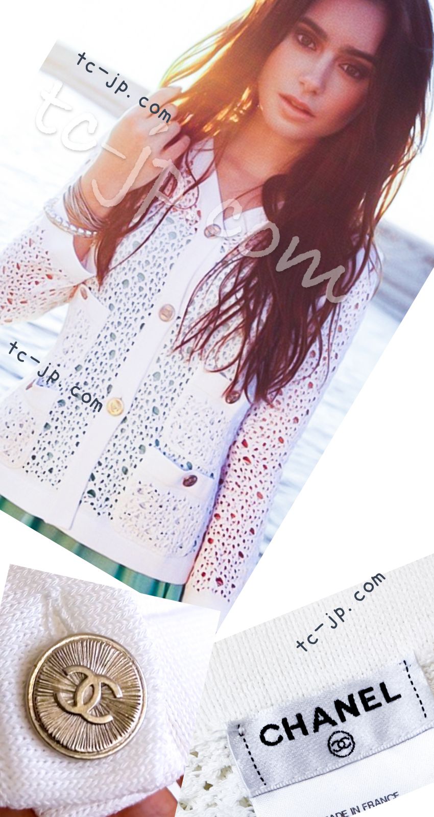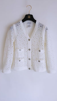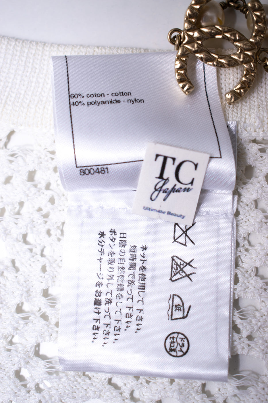 CHANEL 12S White Cotton Eye-let V-Neck Knit Cardigan 34 36 シャネル ホワイト コットン アイレット Vネック ニット カーディガン 即発