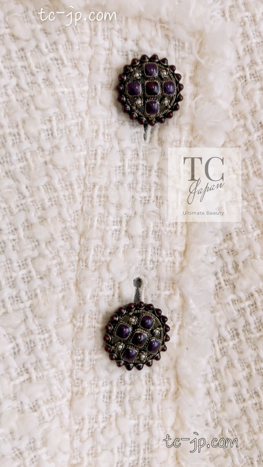 CHANEL 13PF Ivory Creme Black Tartan Check Tweed Jacket 38 40シャネル アイボリー クリーム ブラック タータンチェック ツイード ジャケット 即発