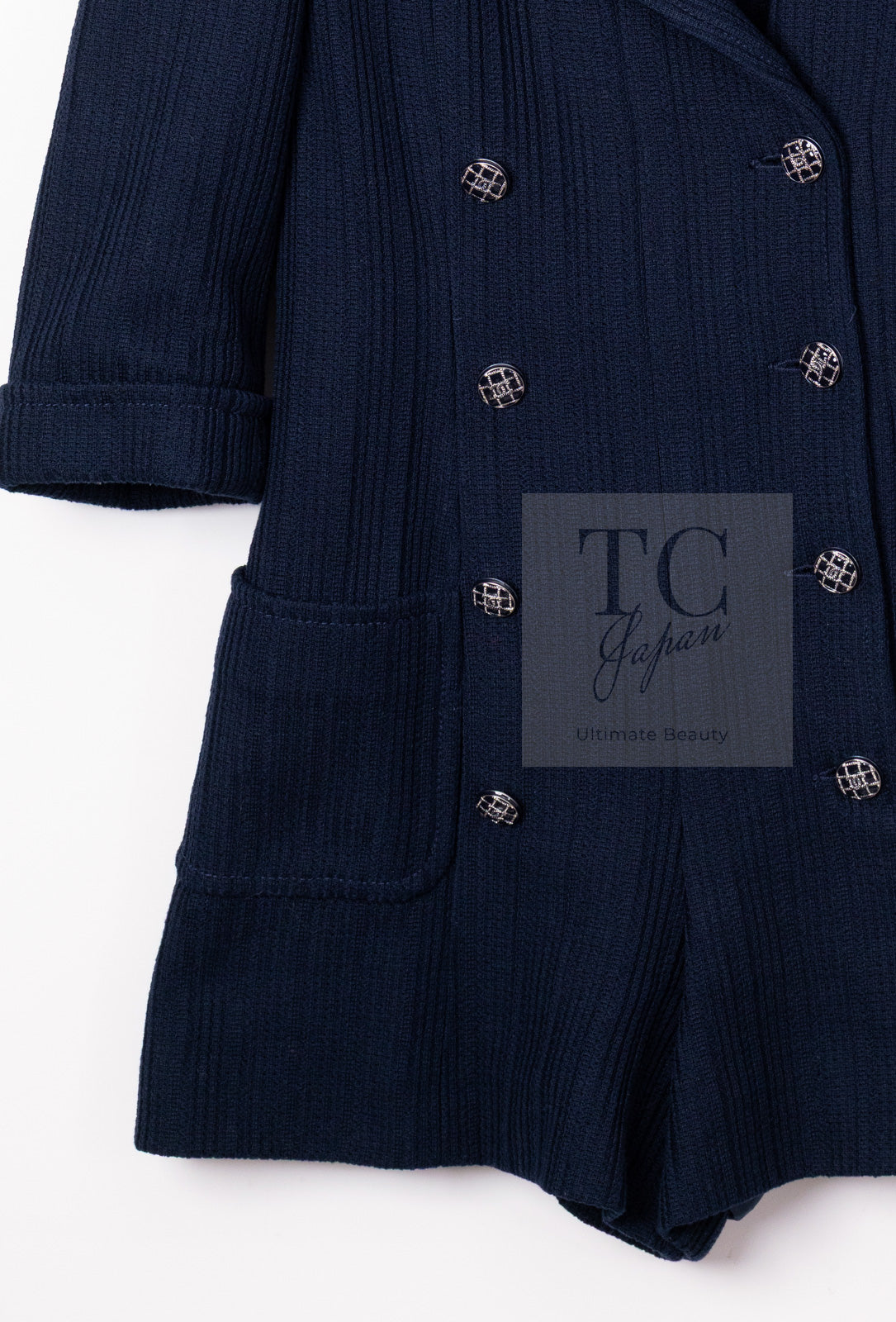 CHANEL 13S Navy Cotton Tweed Bottom Culottes Jumpsuit 34 シャネル ネイビー コットン ツイード ボトムキュロット ジャンプスーツ 即発