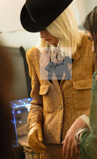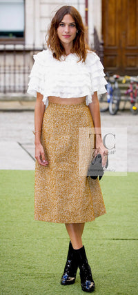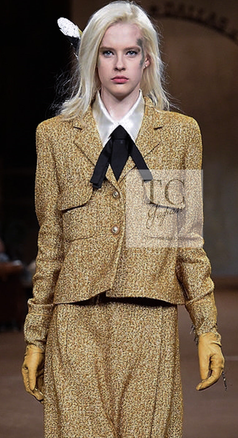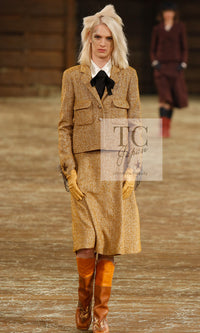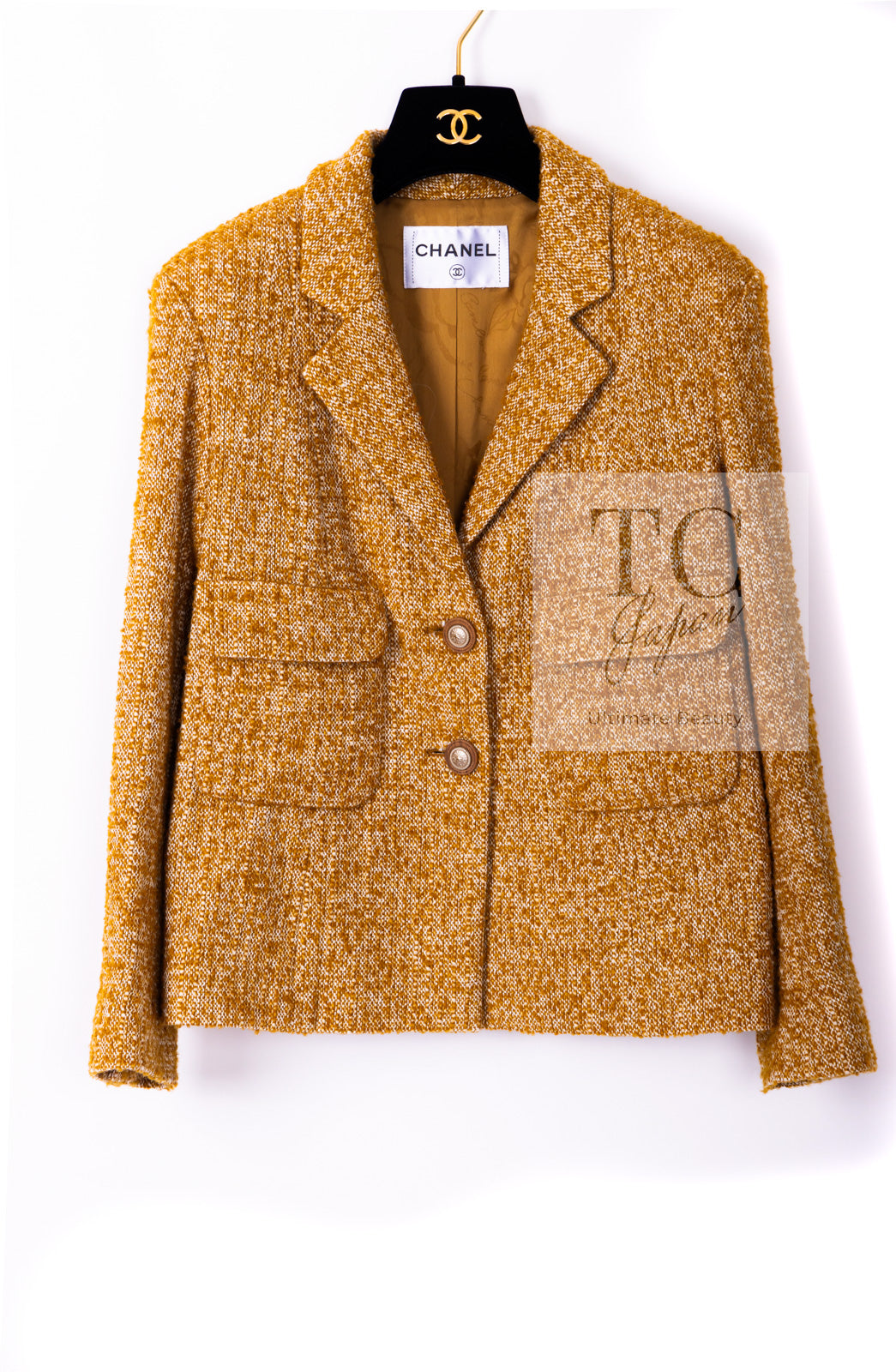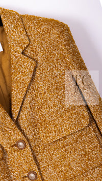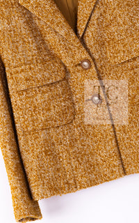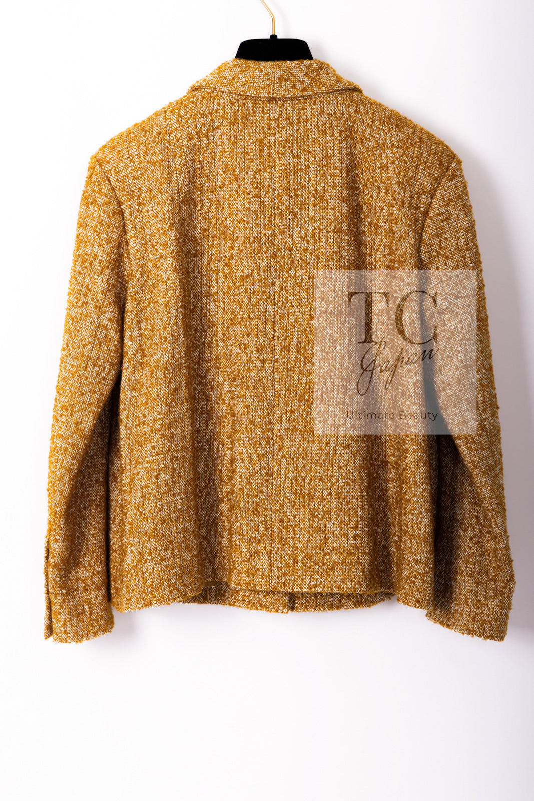 CHANEL 14PF Beige Brown Wool Cotton Tweed Jacket Skirt Suit 44 シャネル ベージュ ブラウン ウール コットン ツイード ジャケット スカート スーツ 即発