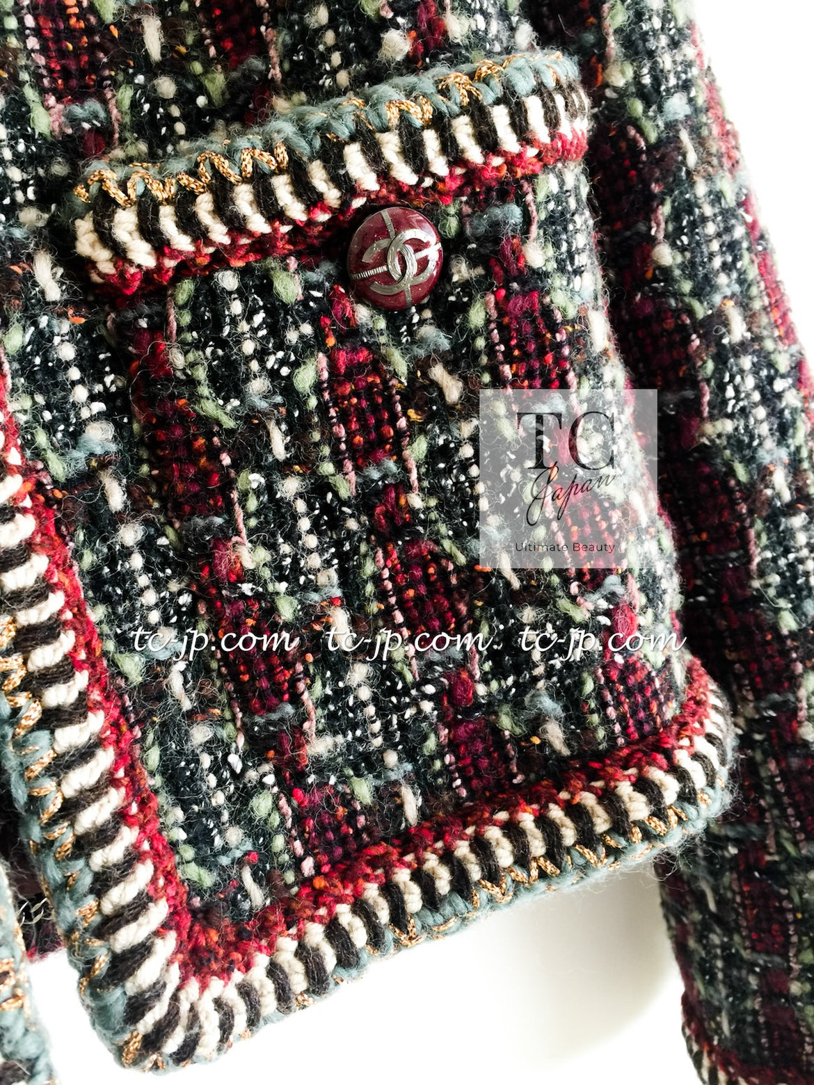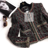 CHANEL 15A Maroon Wine Red Braid Trimming Wool Tweed Jacket Skirt Suit 42 44 シャネル ワインレッド ブレイドトリミング ウール ツイード ジャケット スカート スーツ 即発