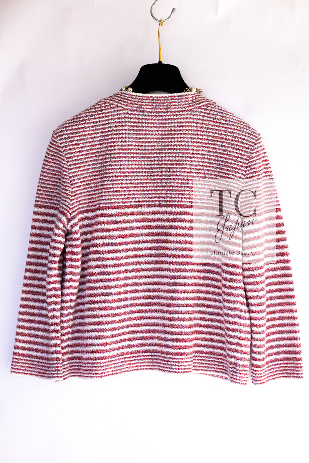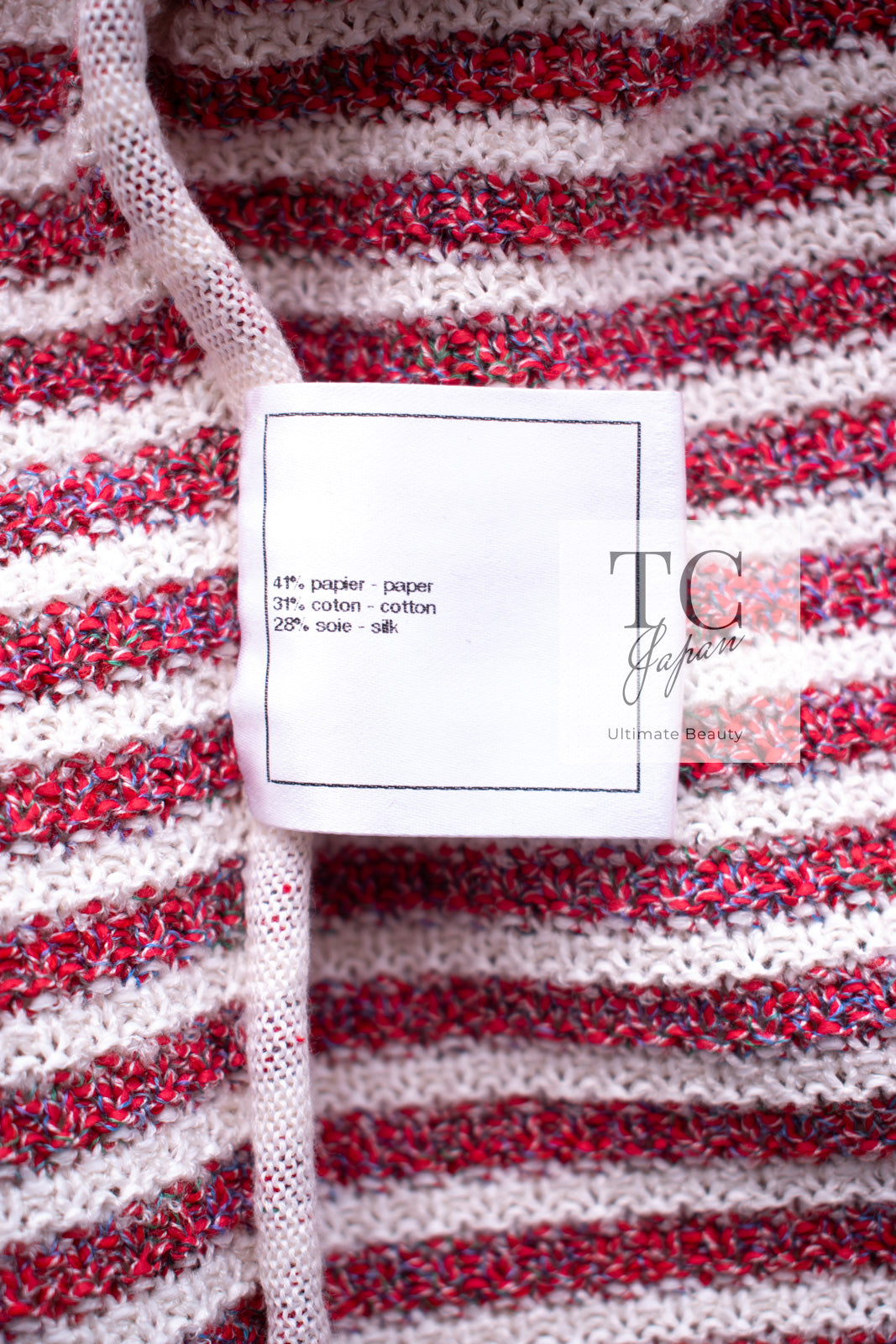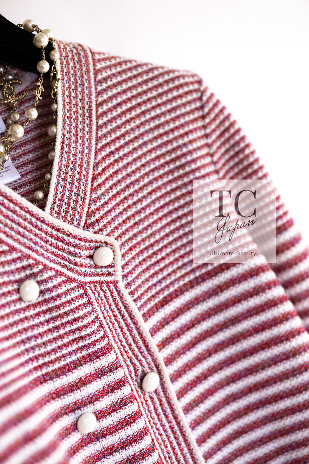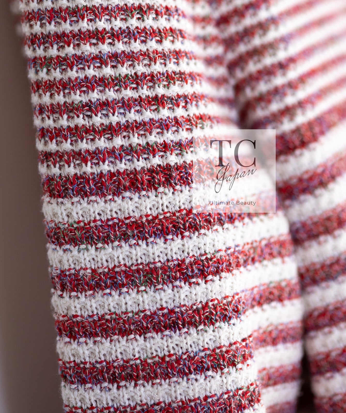 CHANEL 15S Red White Stripe Knit Cardigan 36 38 シャネル レッド ホワイト ストライプ ニット カーディガン 即発