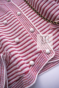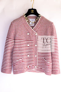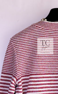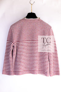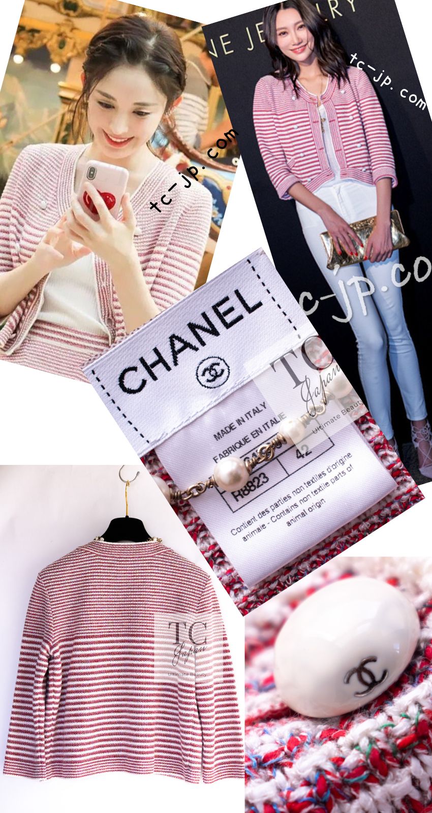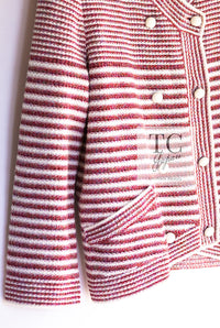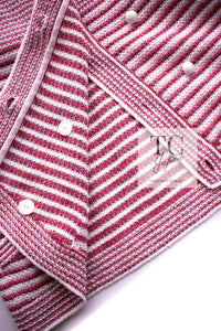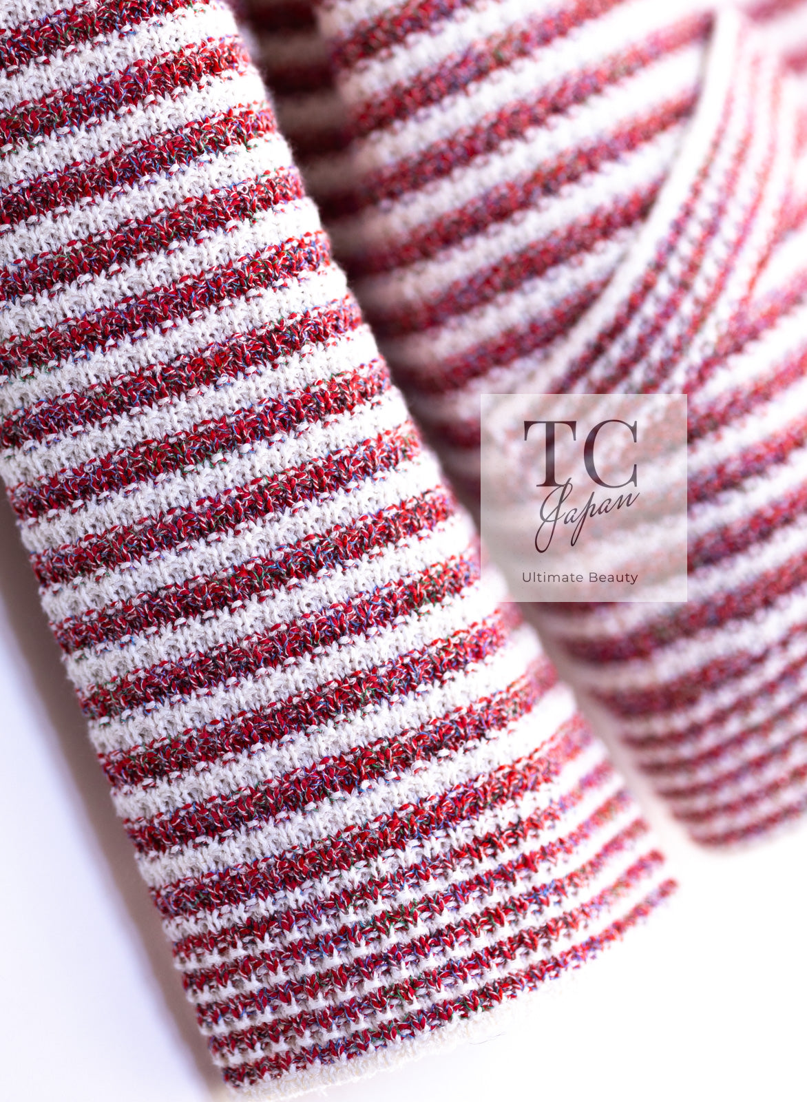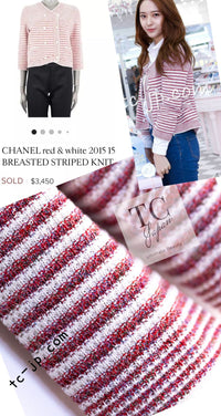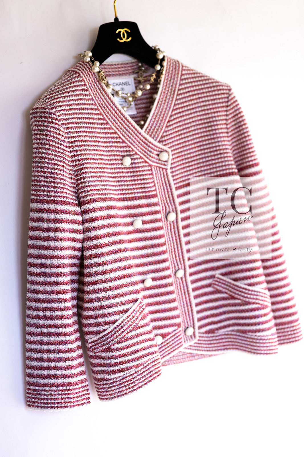 CHANEL 15S Red White Stripe Knit Cardigan 36 38 シャネル レッド ホワイト ストライプ ニット カーディガン 即発