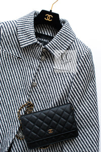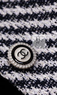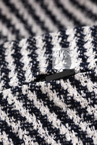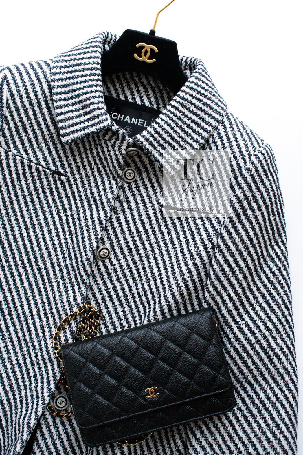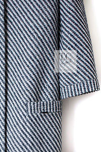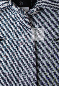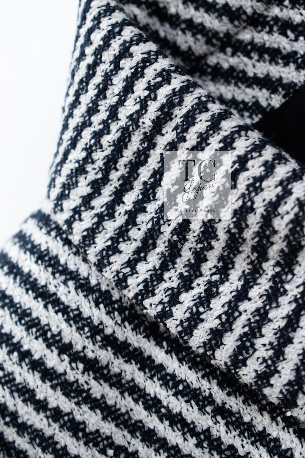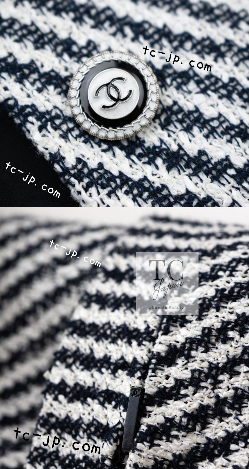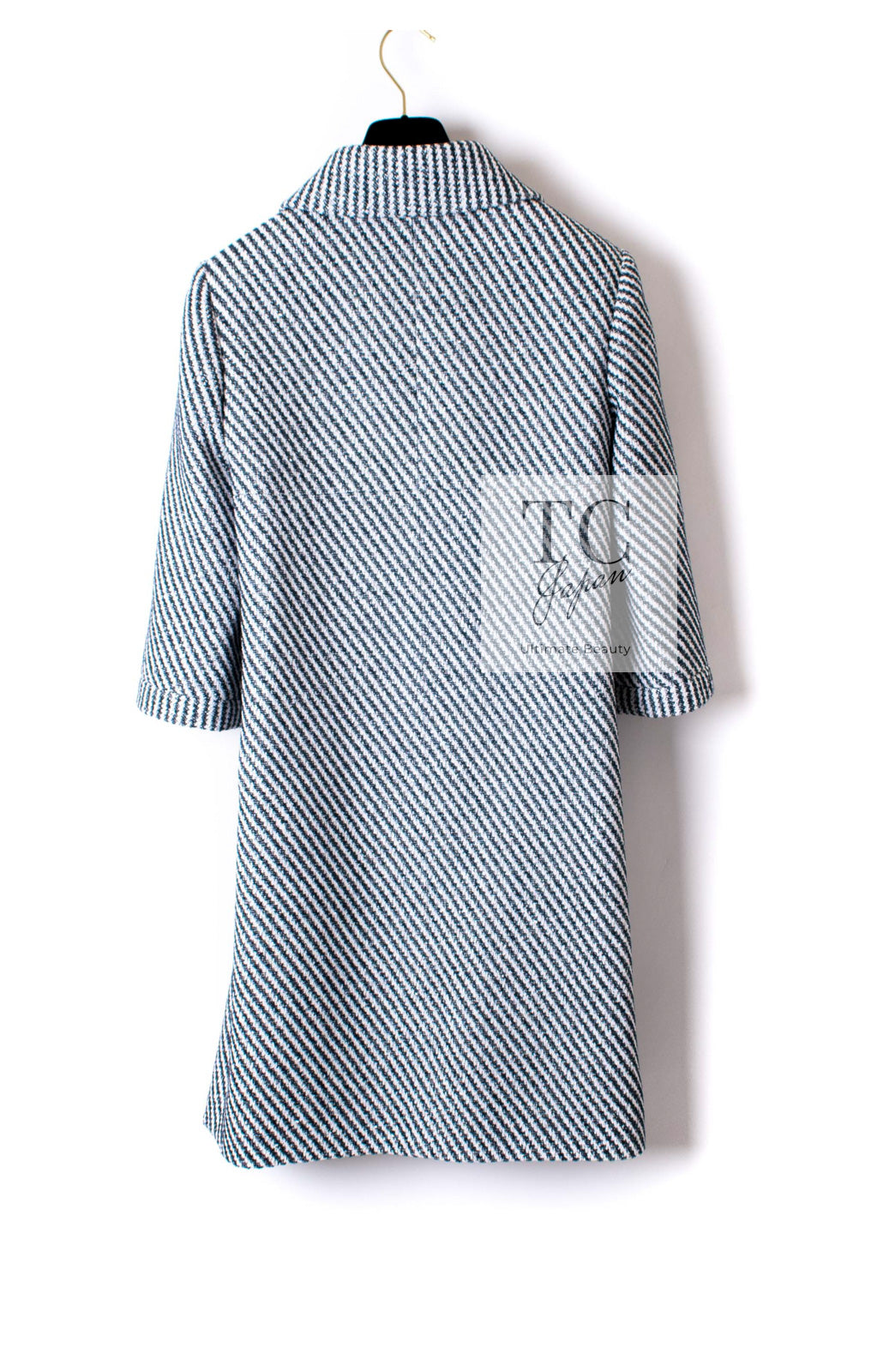 CHANEL 16S Olive Navy White Striped Cotton Wool Tweed Coat 34 シャネル オリーブ ネイビー ホワイト ストライプ コットン ウール ツイード コート 即発