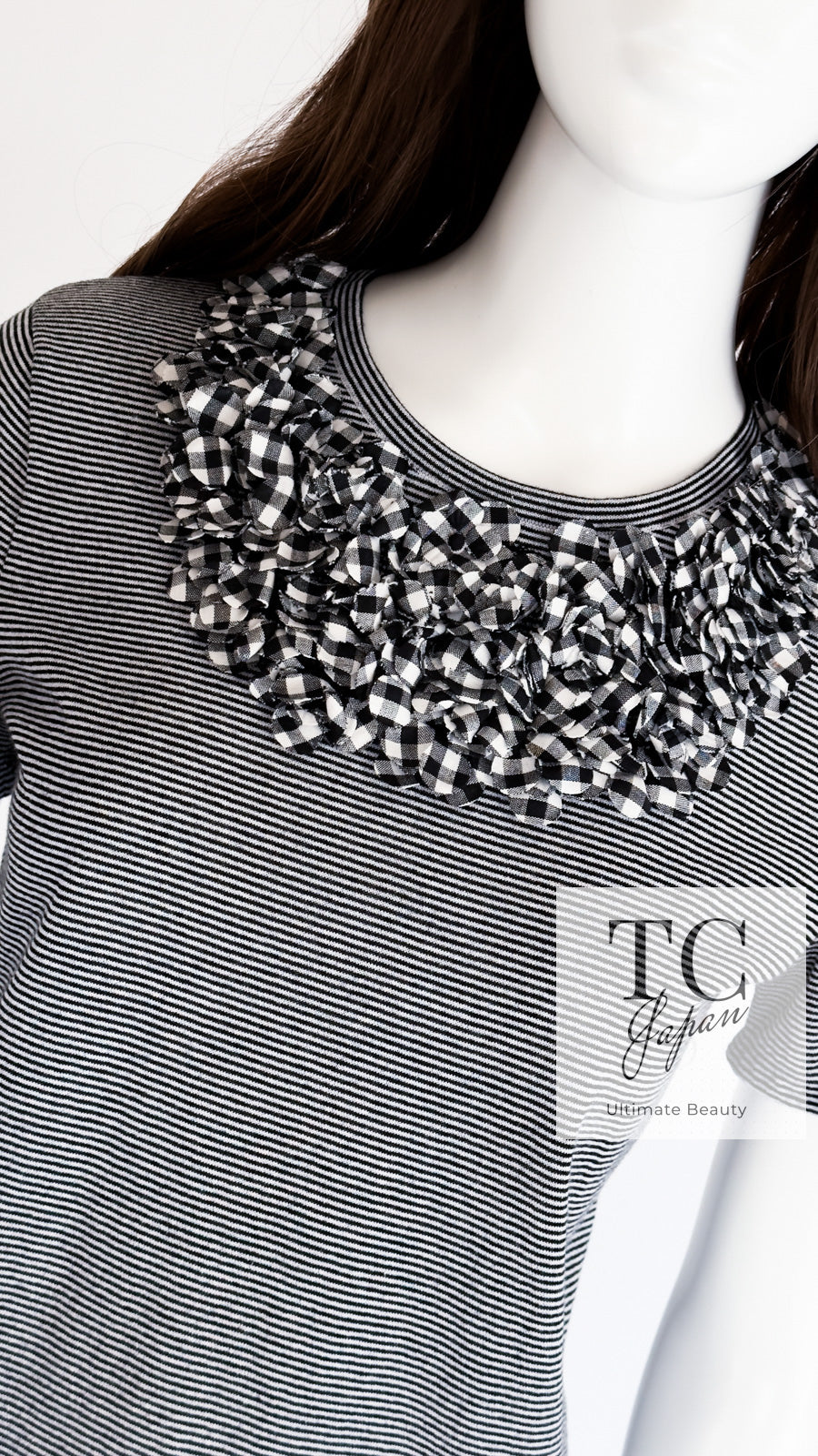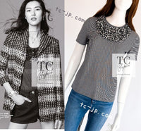 CHANEL 17PS Black White Stripe Border Knit Tops T-shirts 34 シャネル ブラック ホワイト ニット ストライプ トップス カットソー Tシャツ 即発