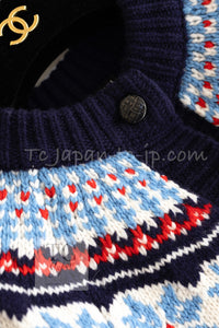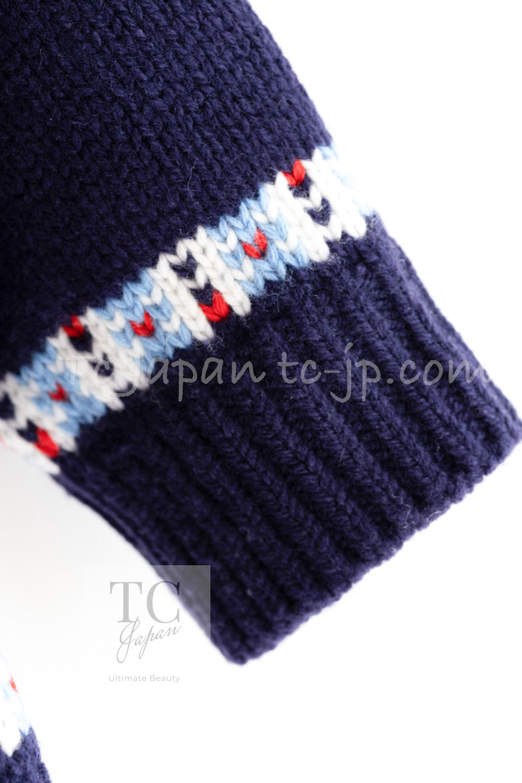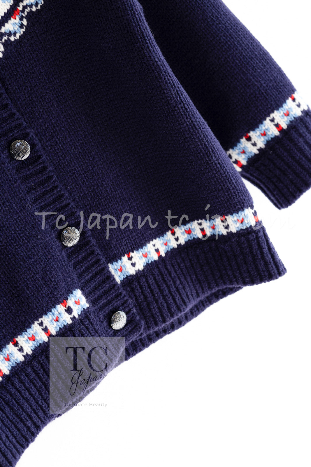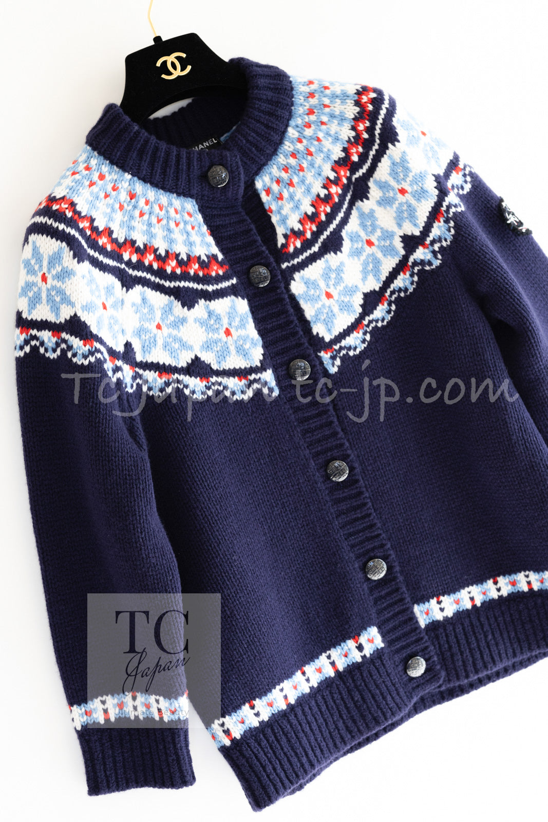 CHANEL 18N Coco Neige Navy Nordic Wool Knit Cardigan 34 シャネル ココ ネージュ ネイビー ノルディック ウール ニット カーディガン 即発