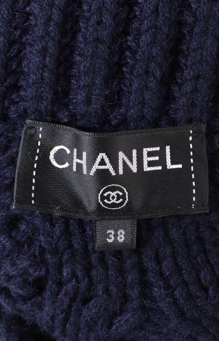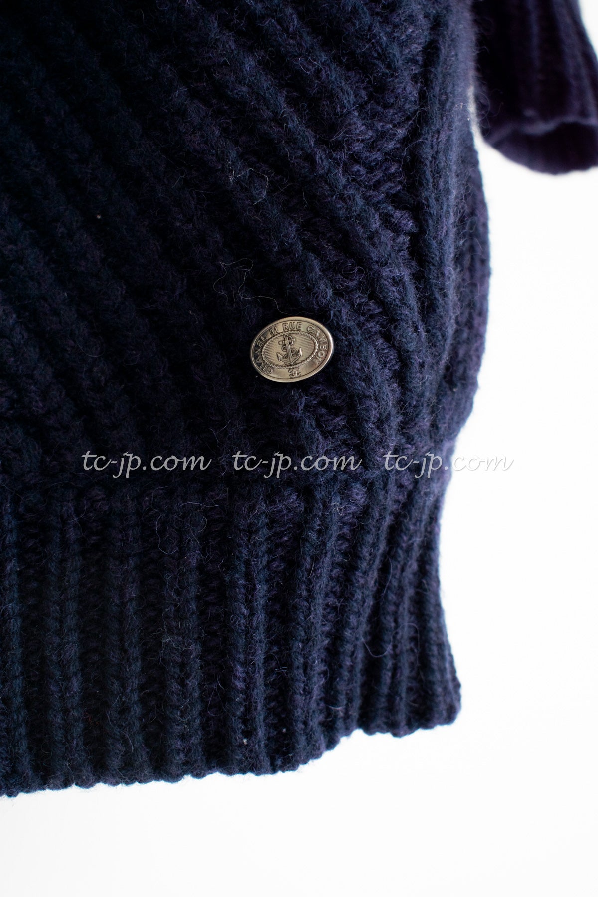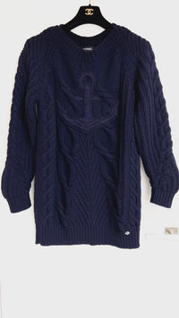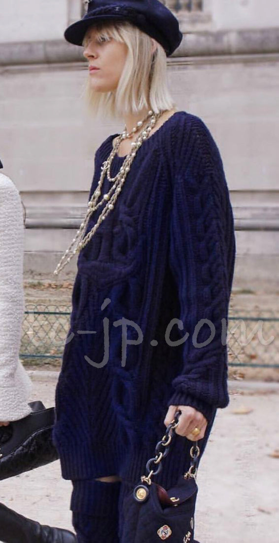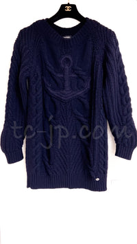 CHANEL 18PF Navy Wool Cashmere Dress Knit Sweater 38 40 42 シャネル ネイビー・ウール・カシミア・ケーブル・ニット・ワンピース・セーター 即発