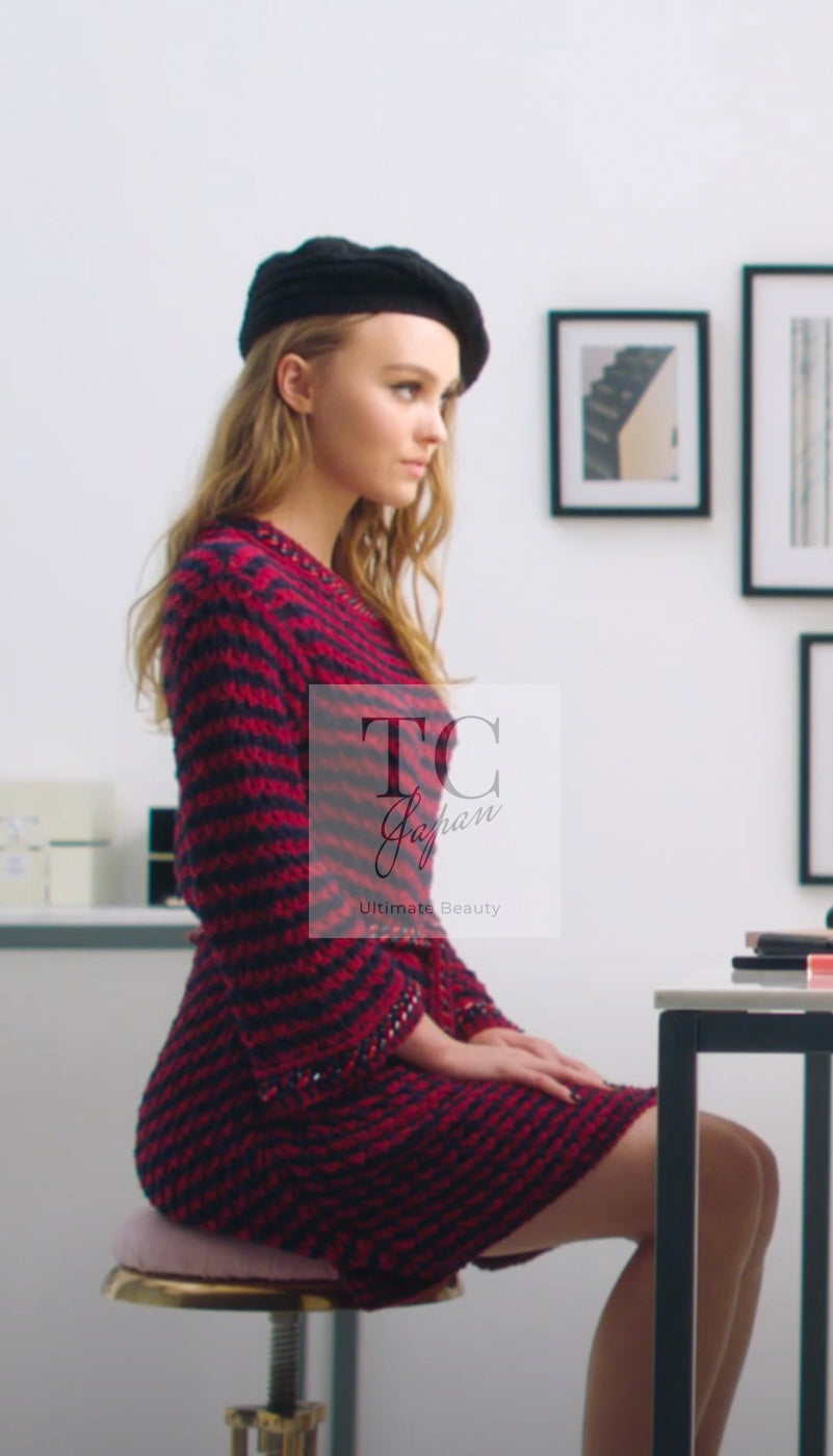 CHANEL 18PS Red Navy Striped Chain Trimming Knit Cardigan 36 38 シャネル レッド ネイビー ストライプ チェーントリミング ニット カーディガン 即発