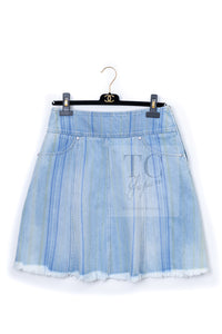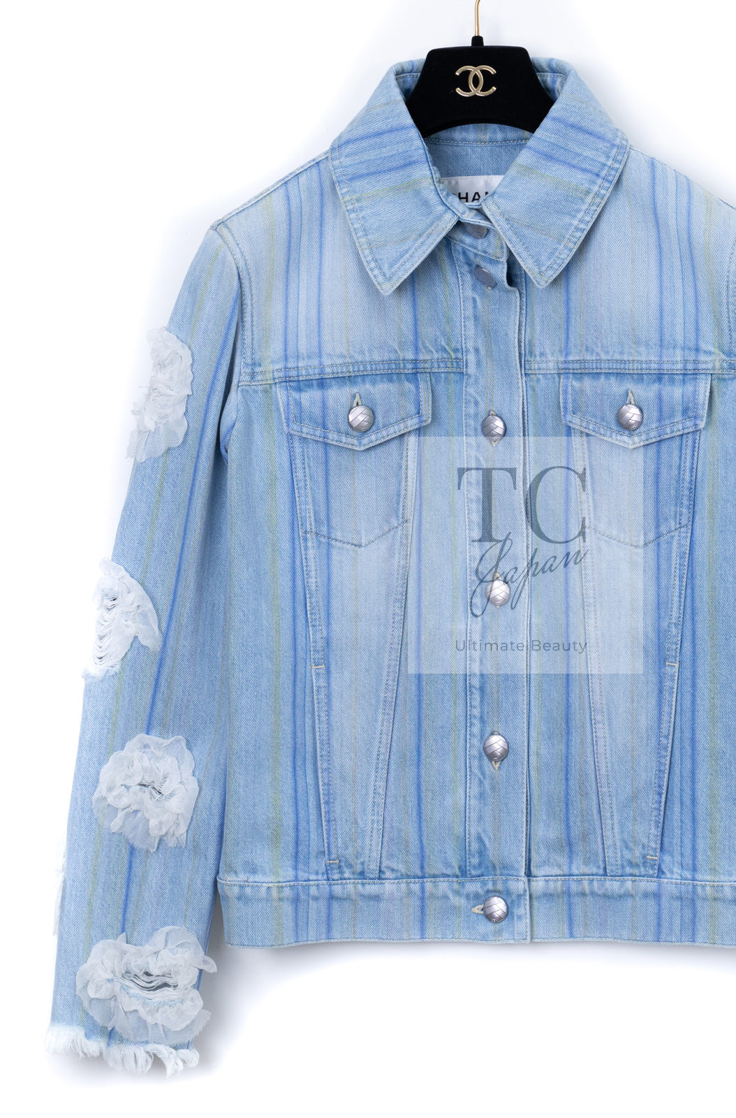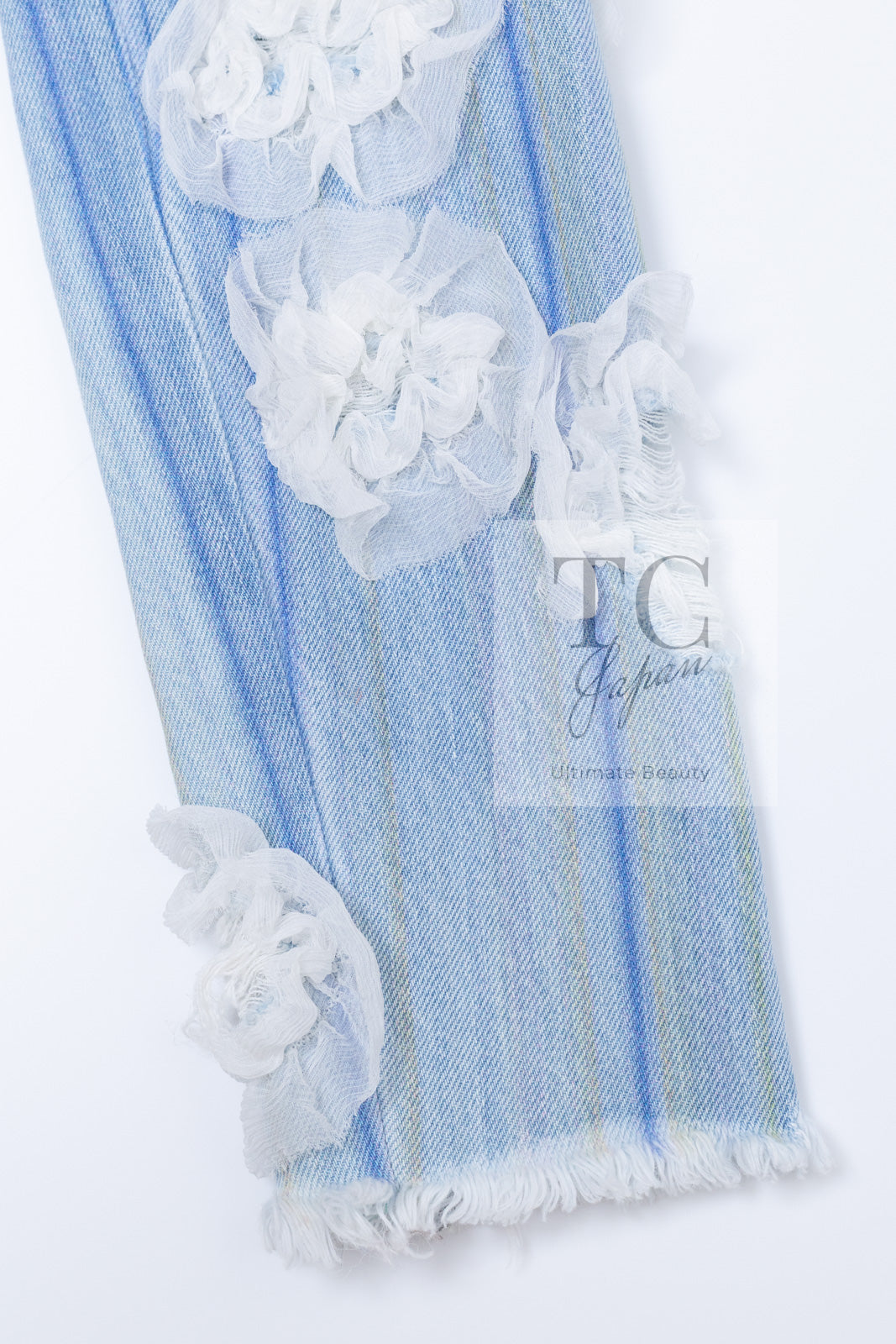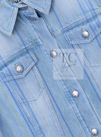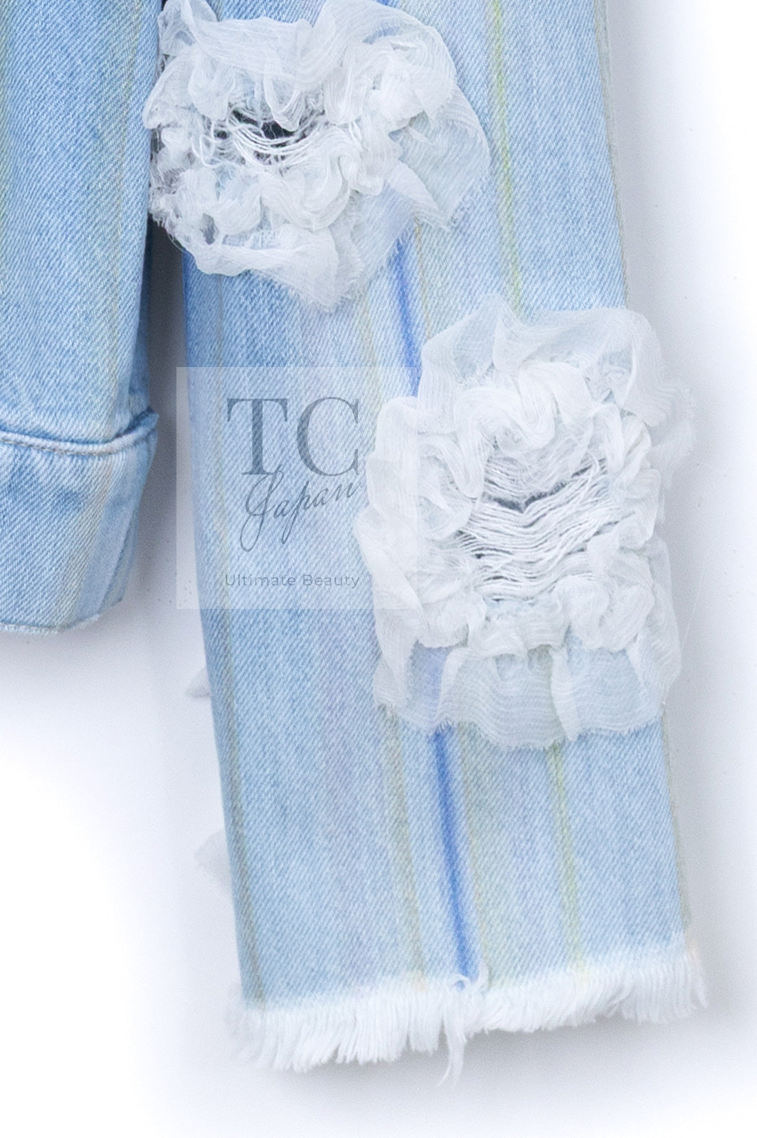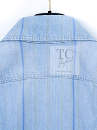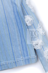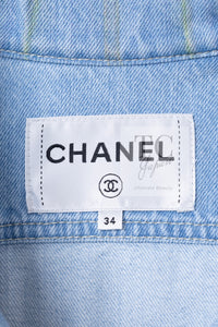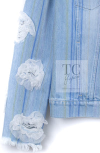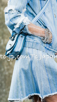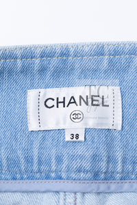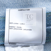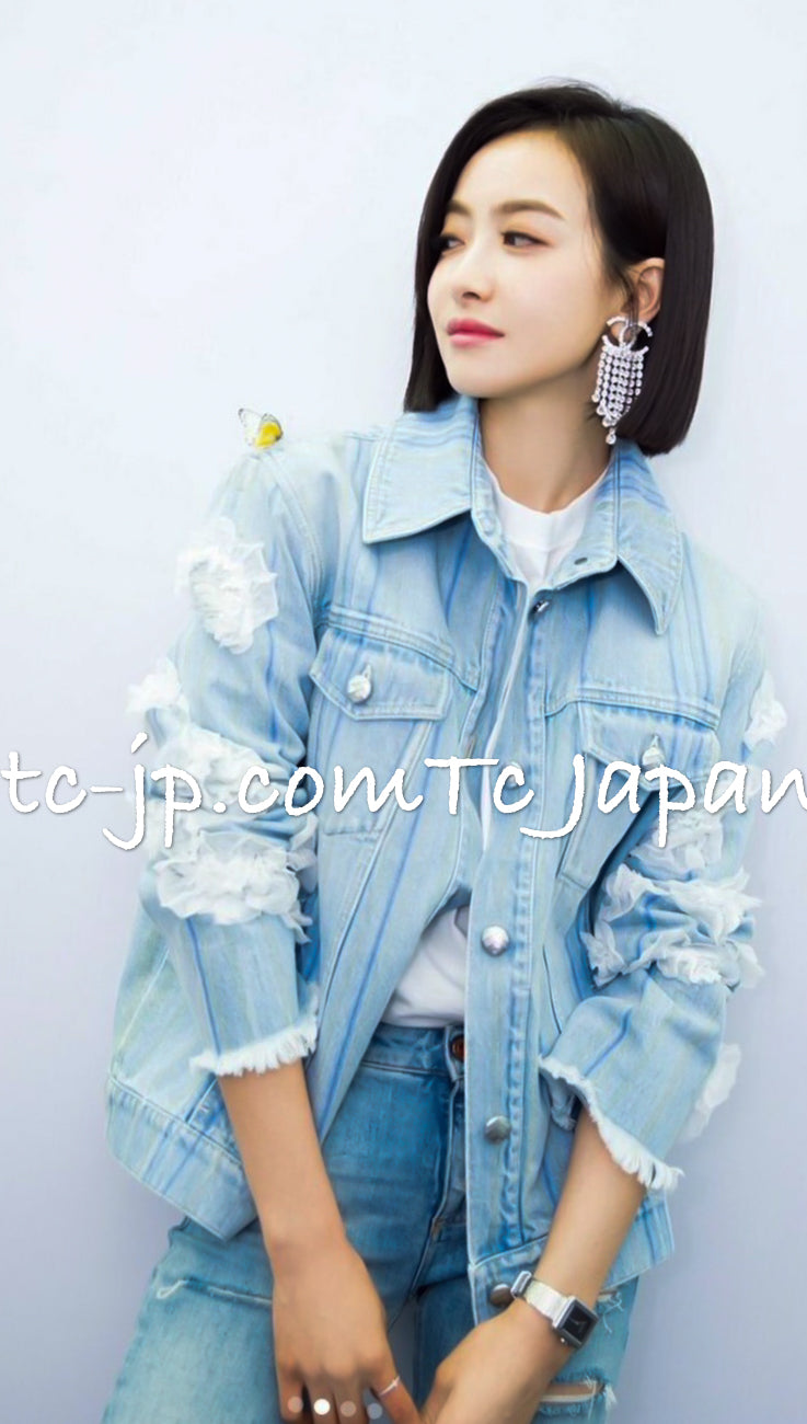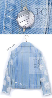 CHANEL 18S Light Blue Cotton Wash Denim Camellia Jacket Skirt Suit Set Up 36 38 シャネル ライト ブルー コットン デニム ウォッシュ カメリア ジャケット スカート スーツ セット アップ 即発