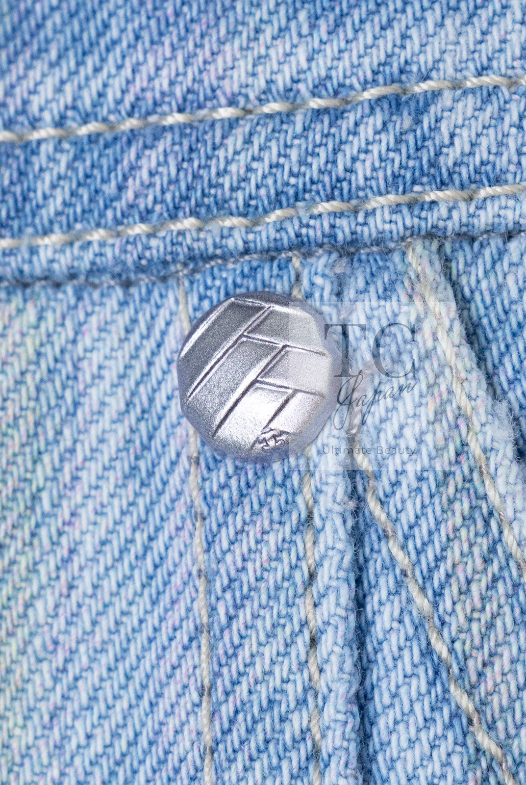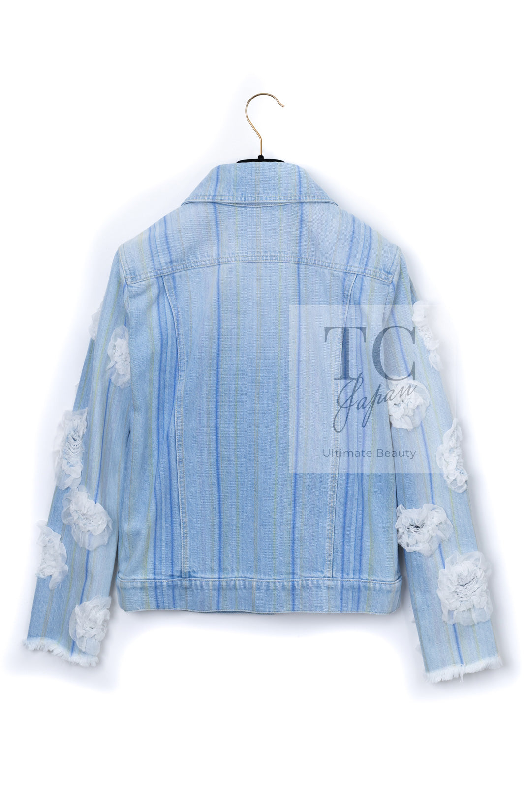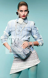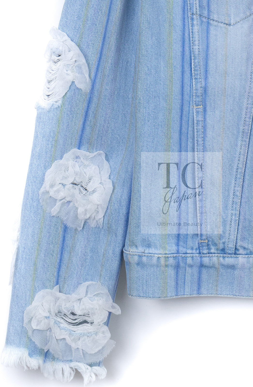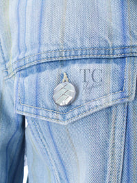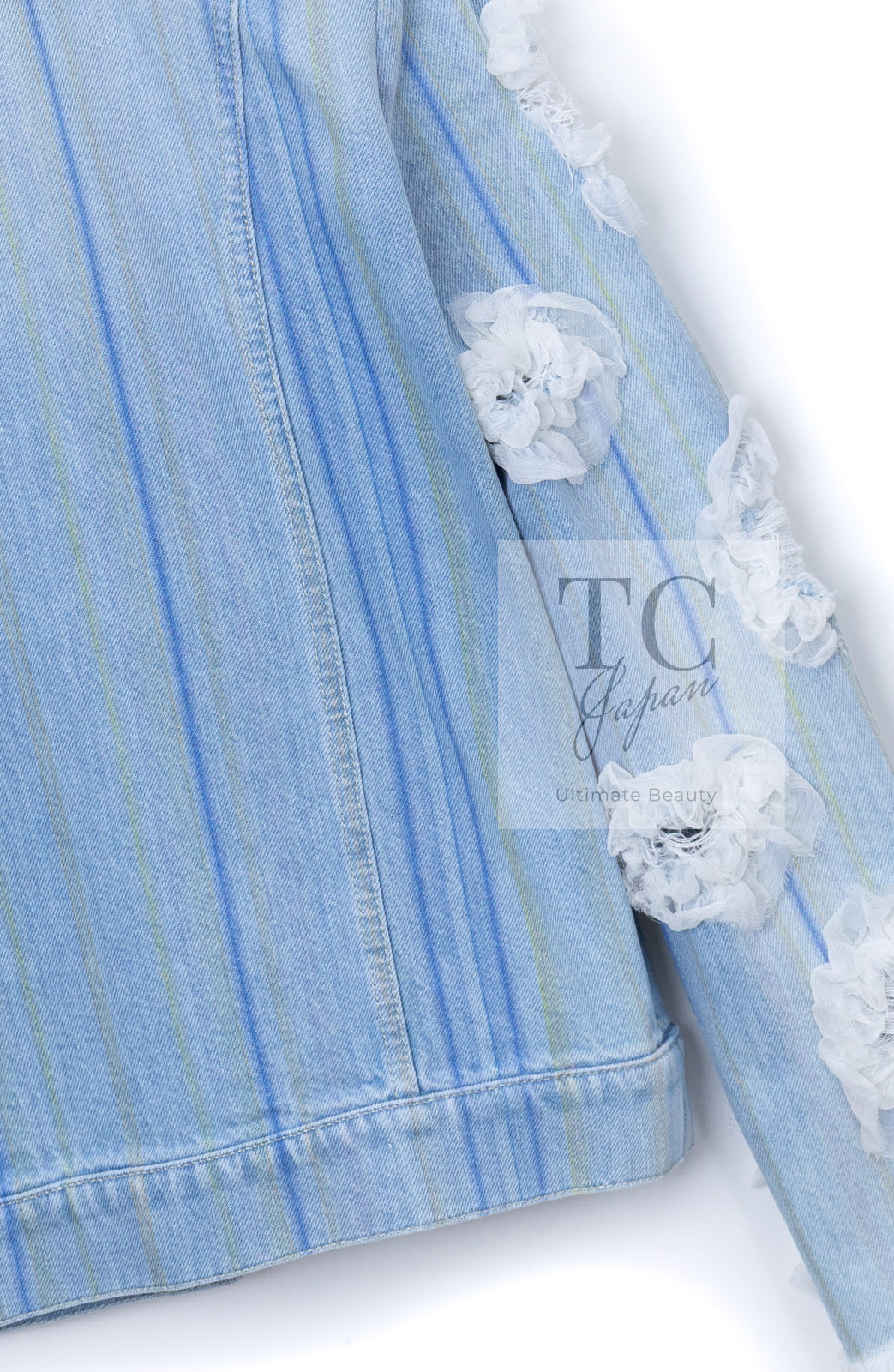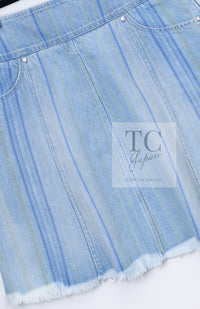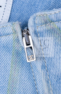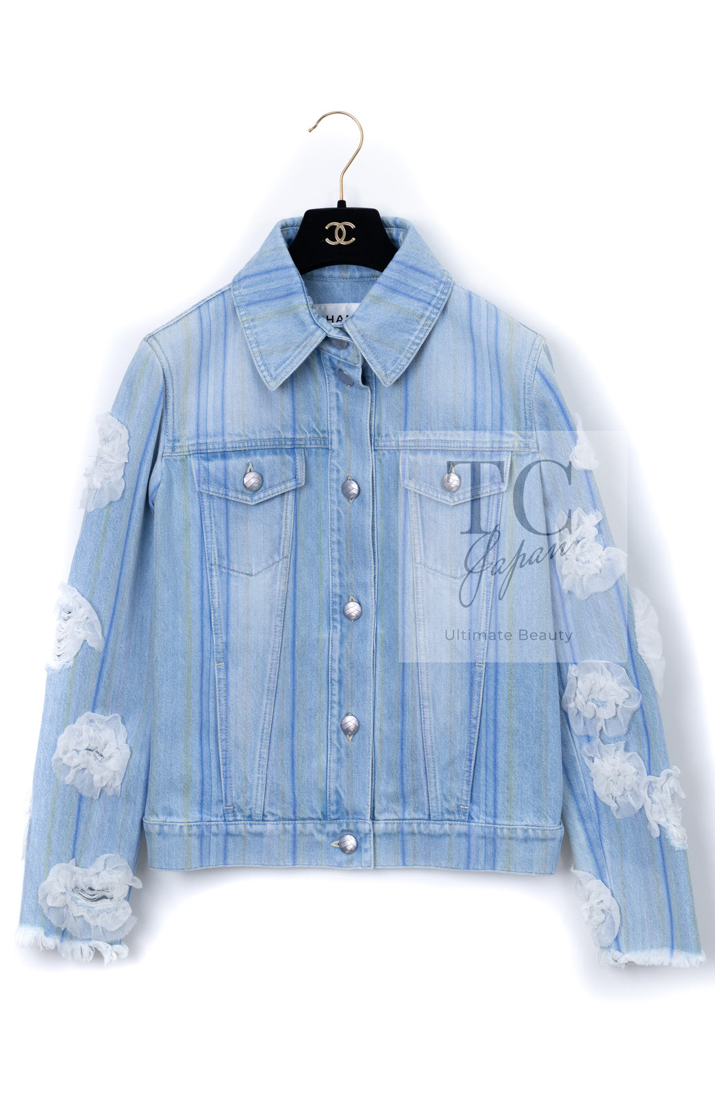 CHANEL 18S Light Blue Cotton Wash Denim Camellia Jacket Skirt Suit Set Up 36 38 シャネル ライト ブルー コットン デニム ウォッシュ カメリア ジャケット スカート スーツ セット アップ 即発