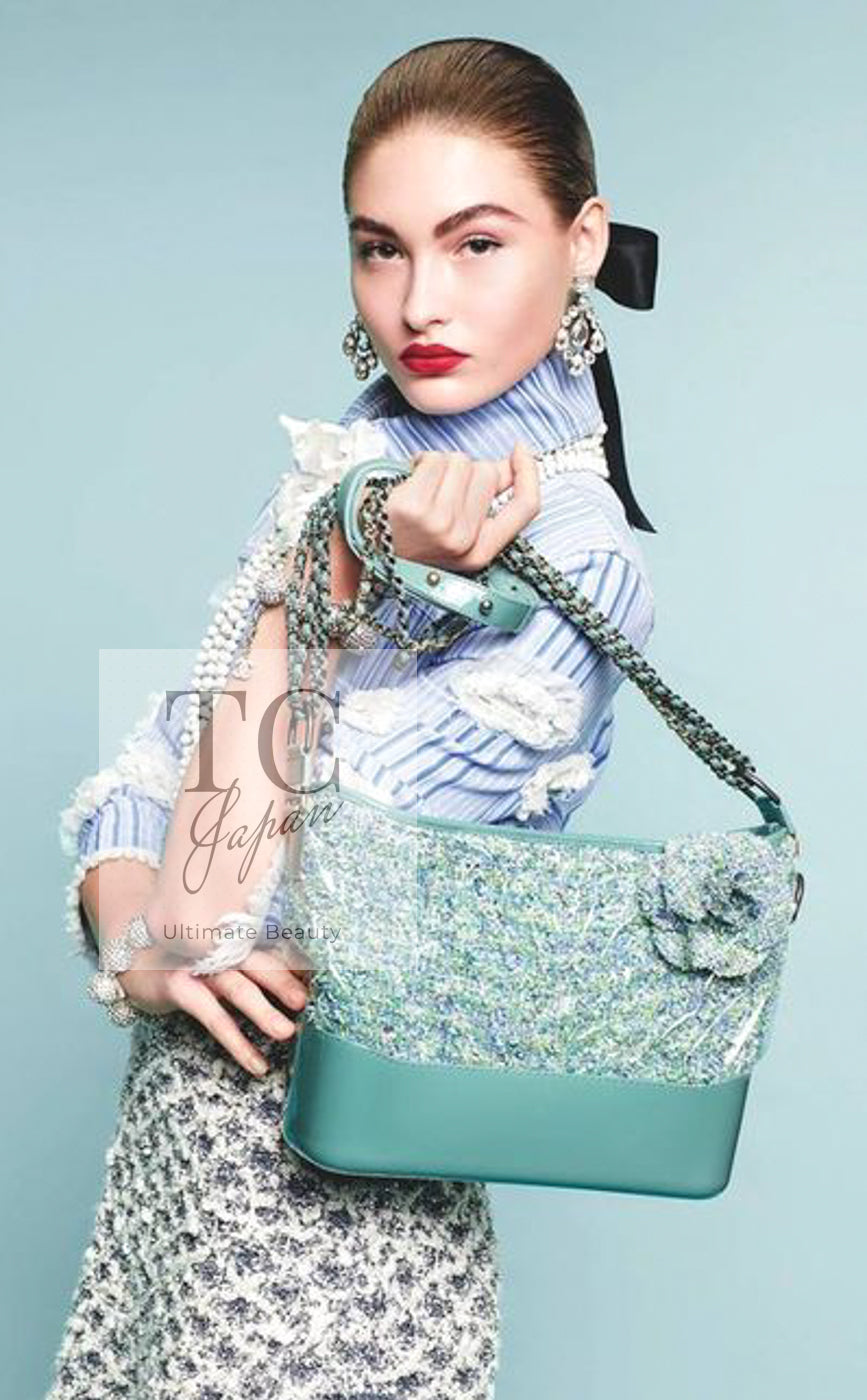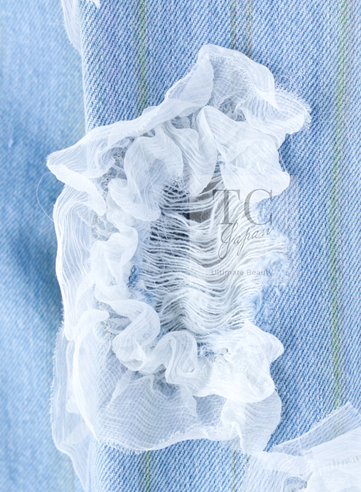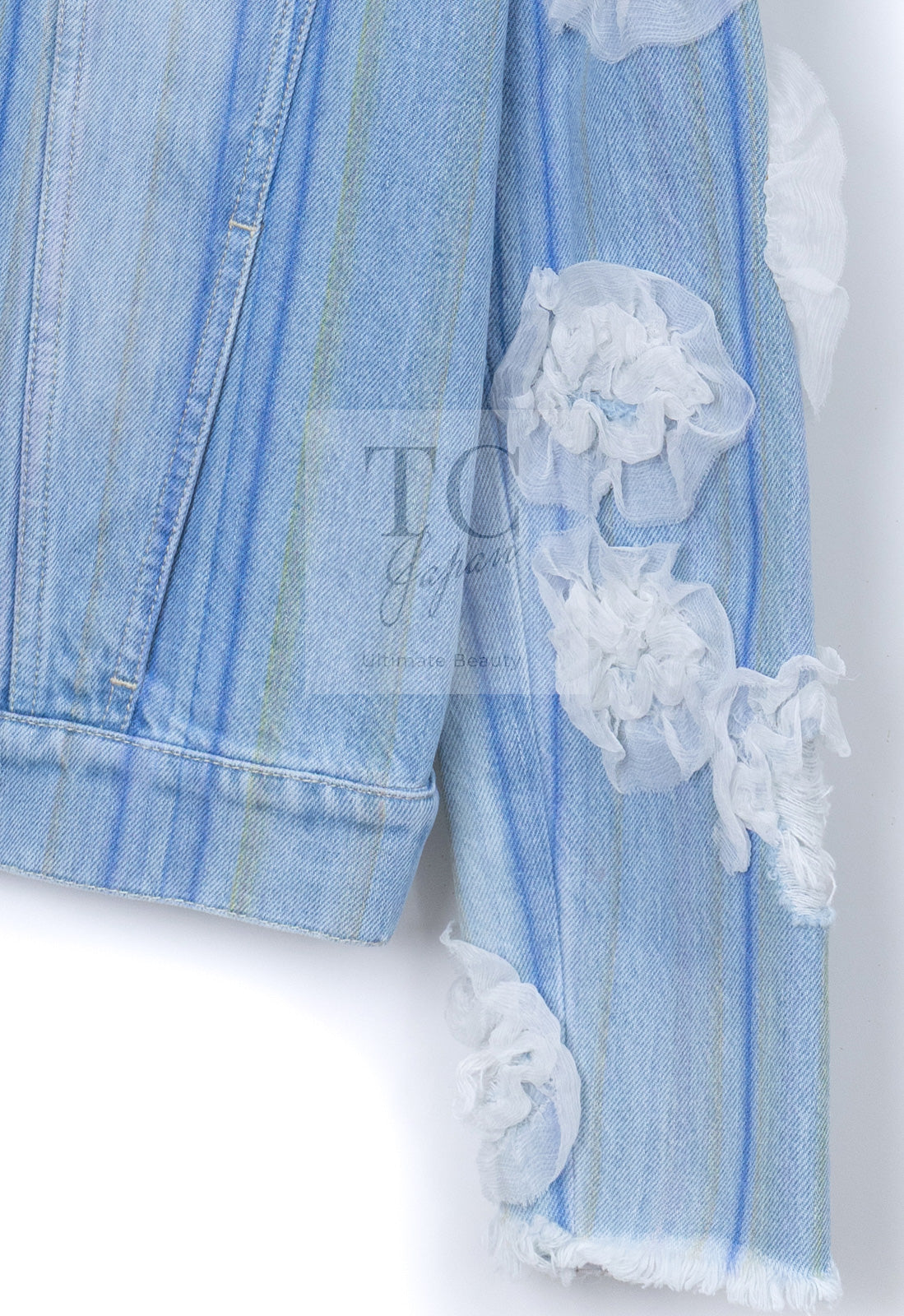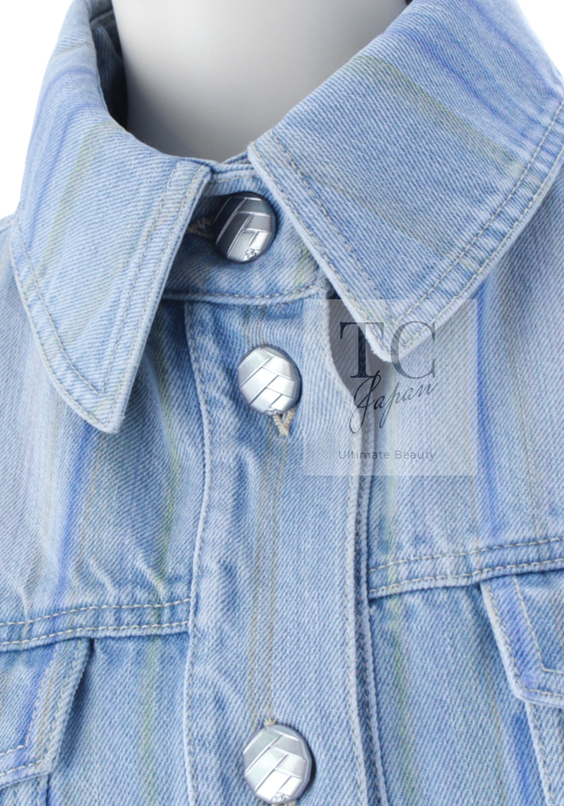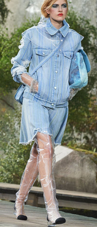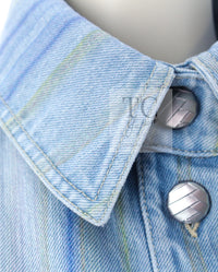 CHANEL 18S Light Blue Cotton Wash Denim Camellia Jacket Skirt Suit Set Up 36 38 シャネル ライト ブルー コットン デニム ウォッシュ カメリア ジャケット スカート スーツ セット アップ 即発