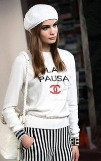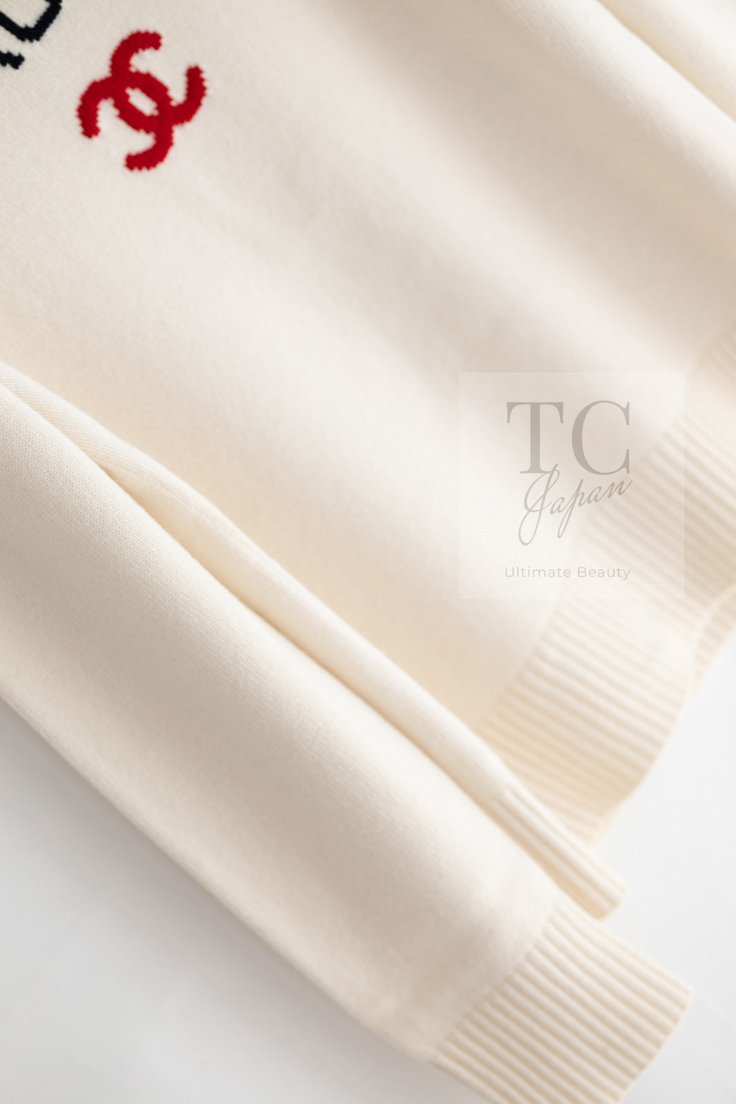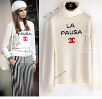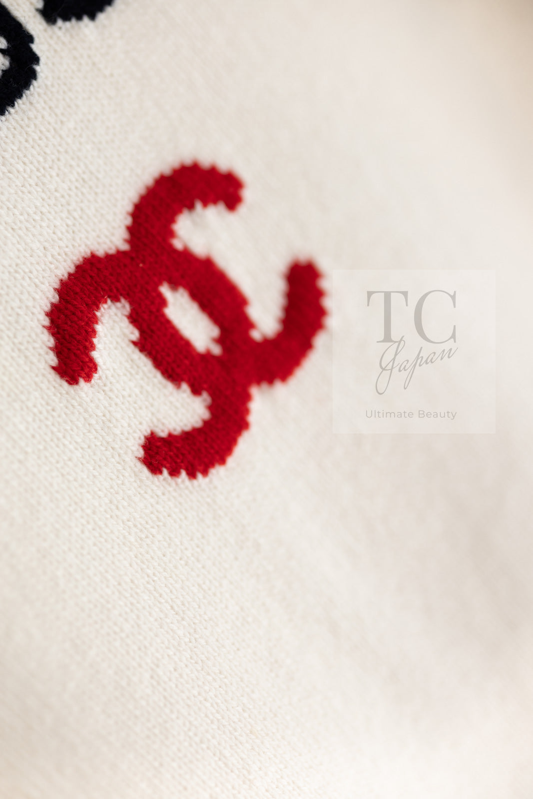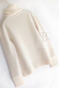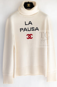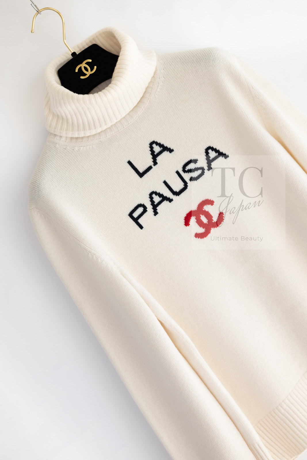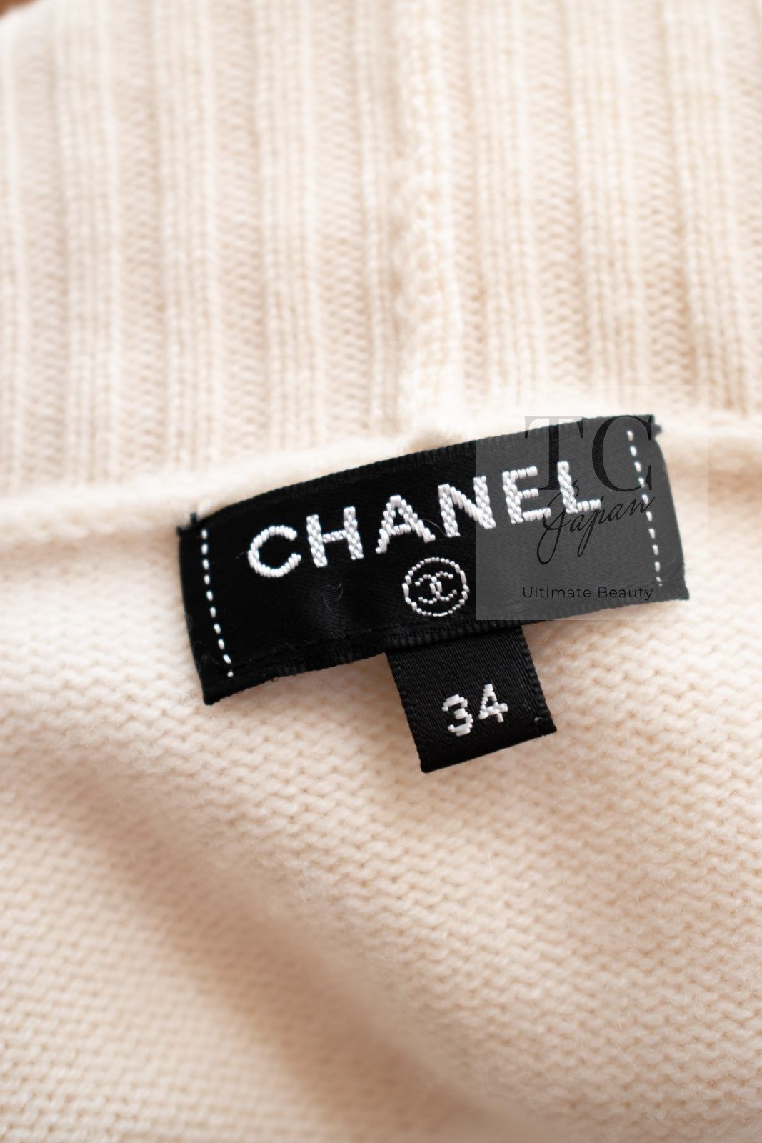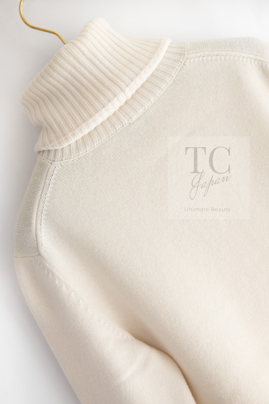 CHANEL 19C Ivory La Pausa CC Logo Turtle Cashmere Knit Sweater 36 38 シャネル アイボリー ホワイト ラ パウザ CC ロゴ タートル カシミア ニット セーター 即発