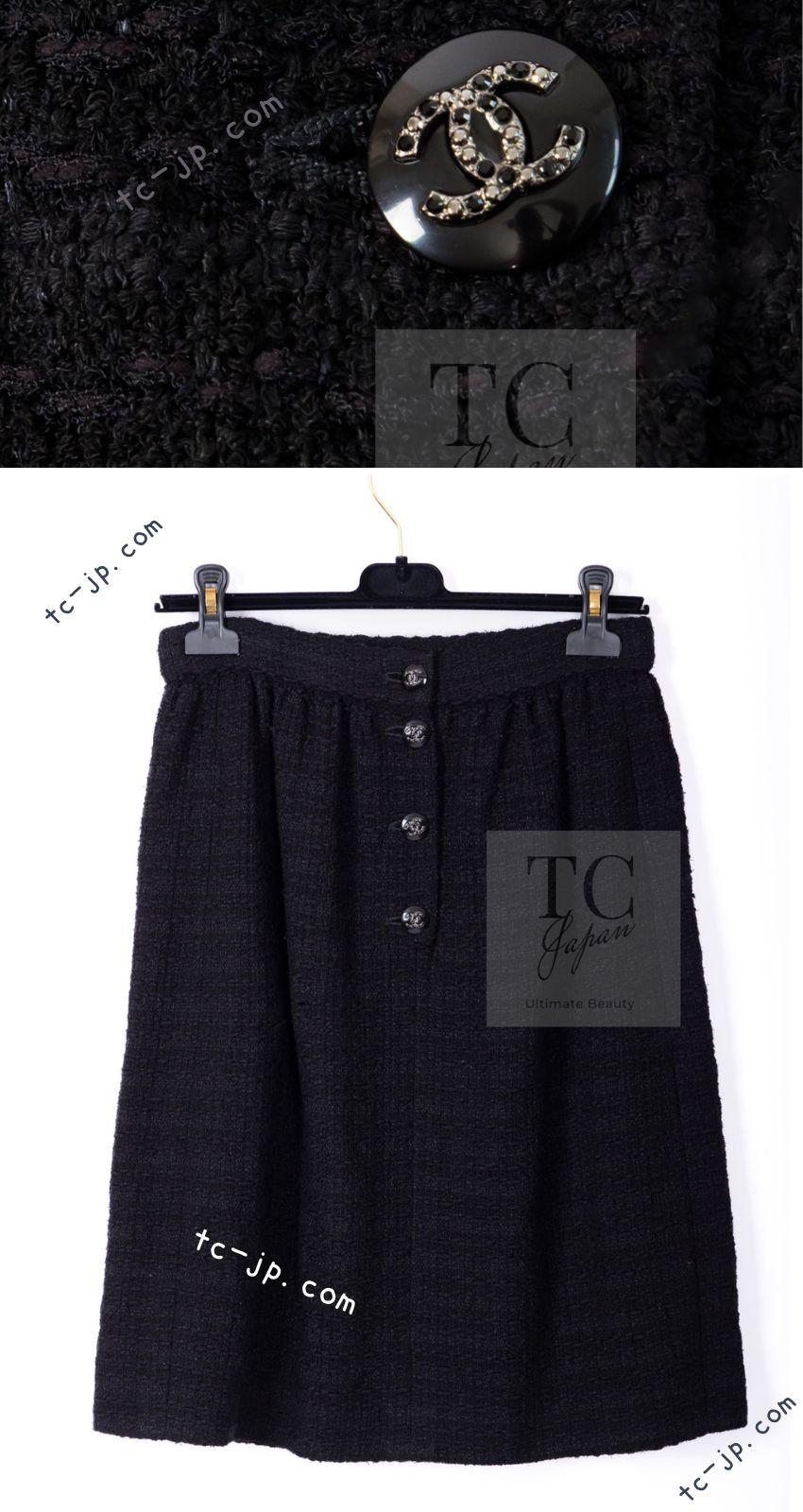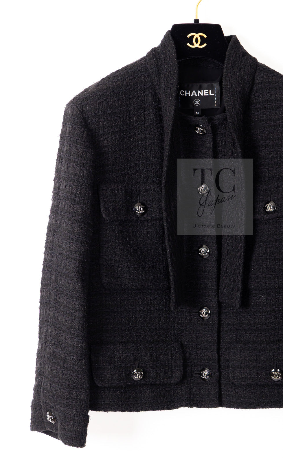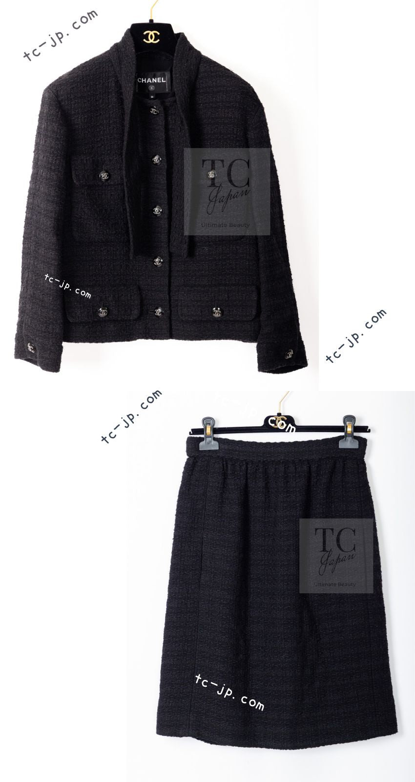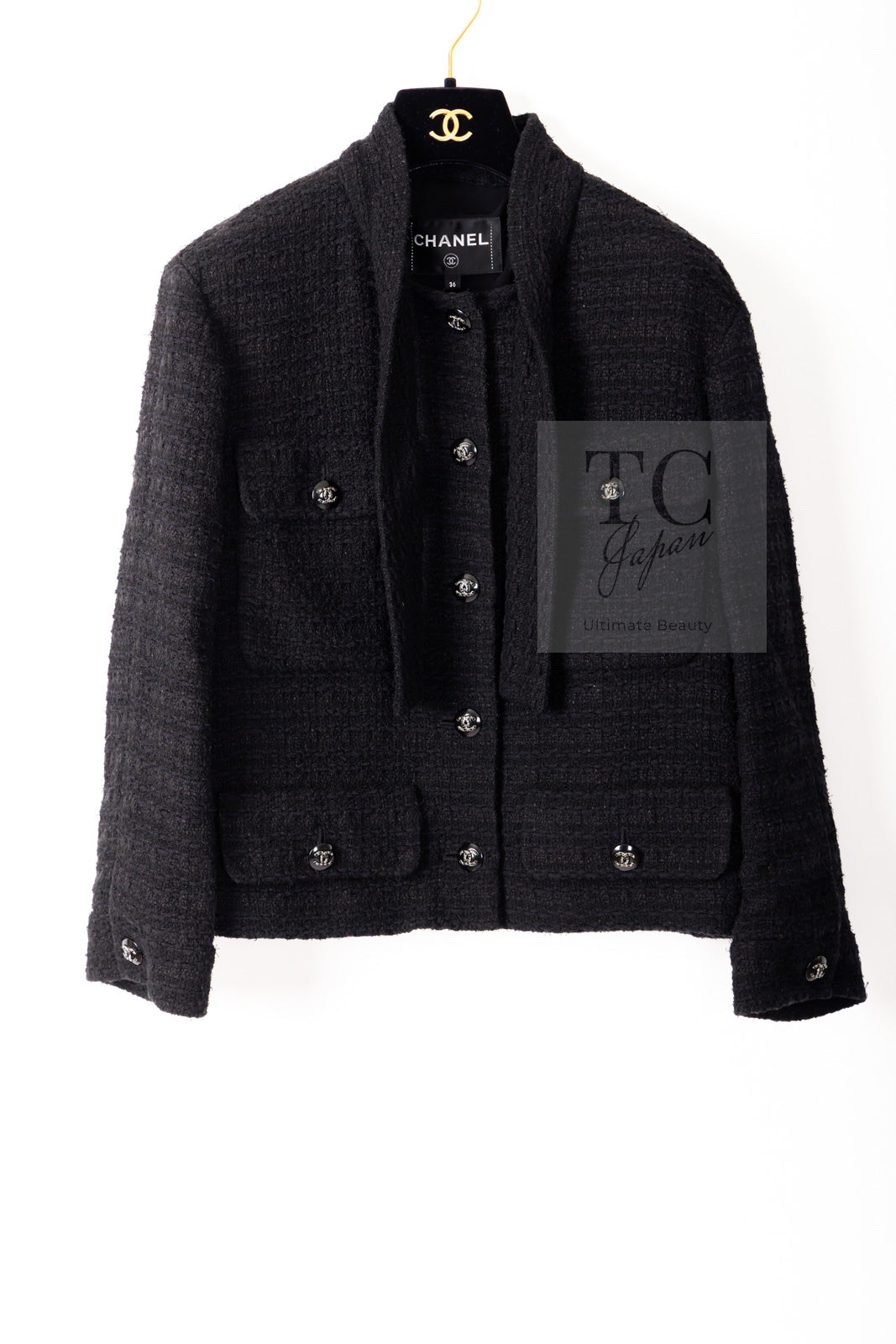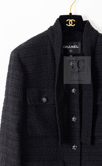 CHANEL 21C Black Bow CC Buttons Tweed Jacket Skirt Suit 38 シャネル ブラック リボン ココボタン ツイード ジャケット スカート スーツ 即発