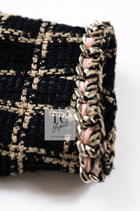 CHANEL 21S Black Beige Silk Cotton Tweed Jacket Silver Chain Trim No.5 Button 38 シャネル ブラック ベージュ シルク コットン ツイード ジャケット シルバー チェーン トリム No.5 ボタン 即発