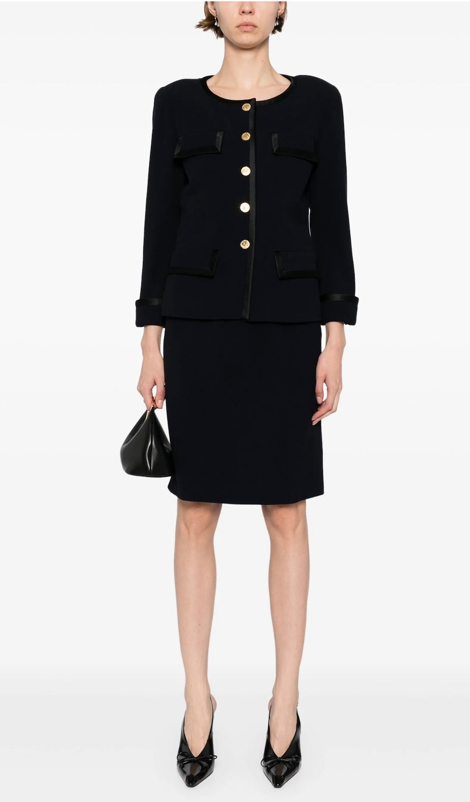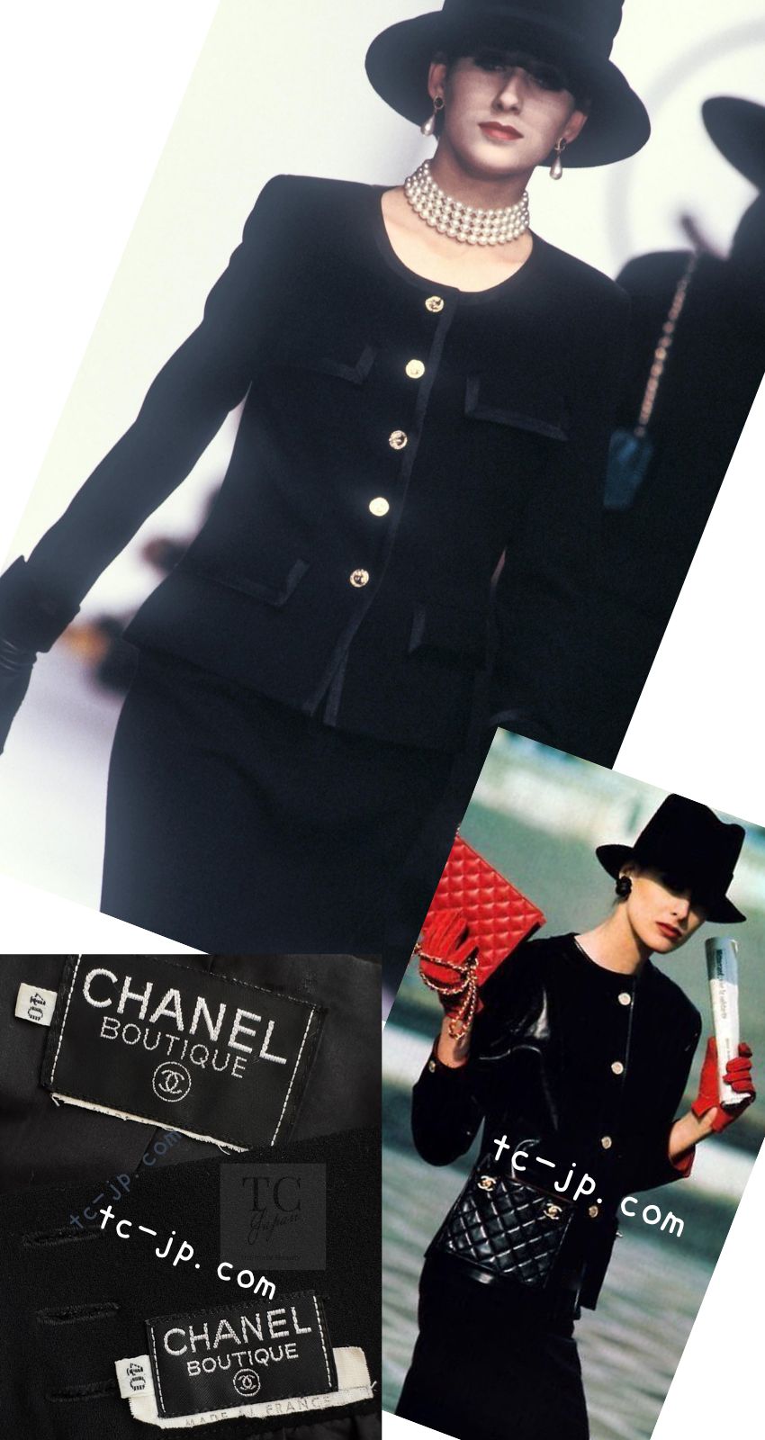 CHANEL 88A Vintage Black Wool Gold Buttons Jacket Skirt Suit 40 シャネル ヴィンテージ ブラック ウール ジャケット スカート スーツ 即発