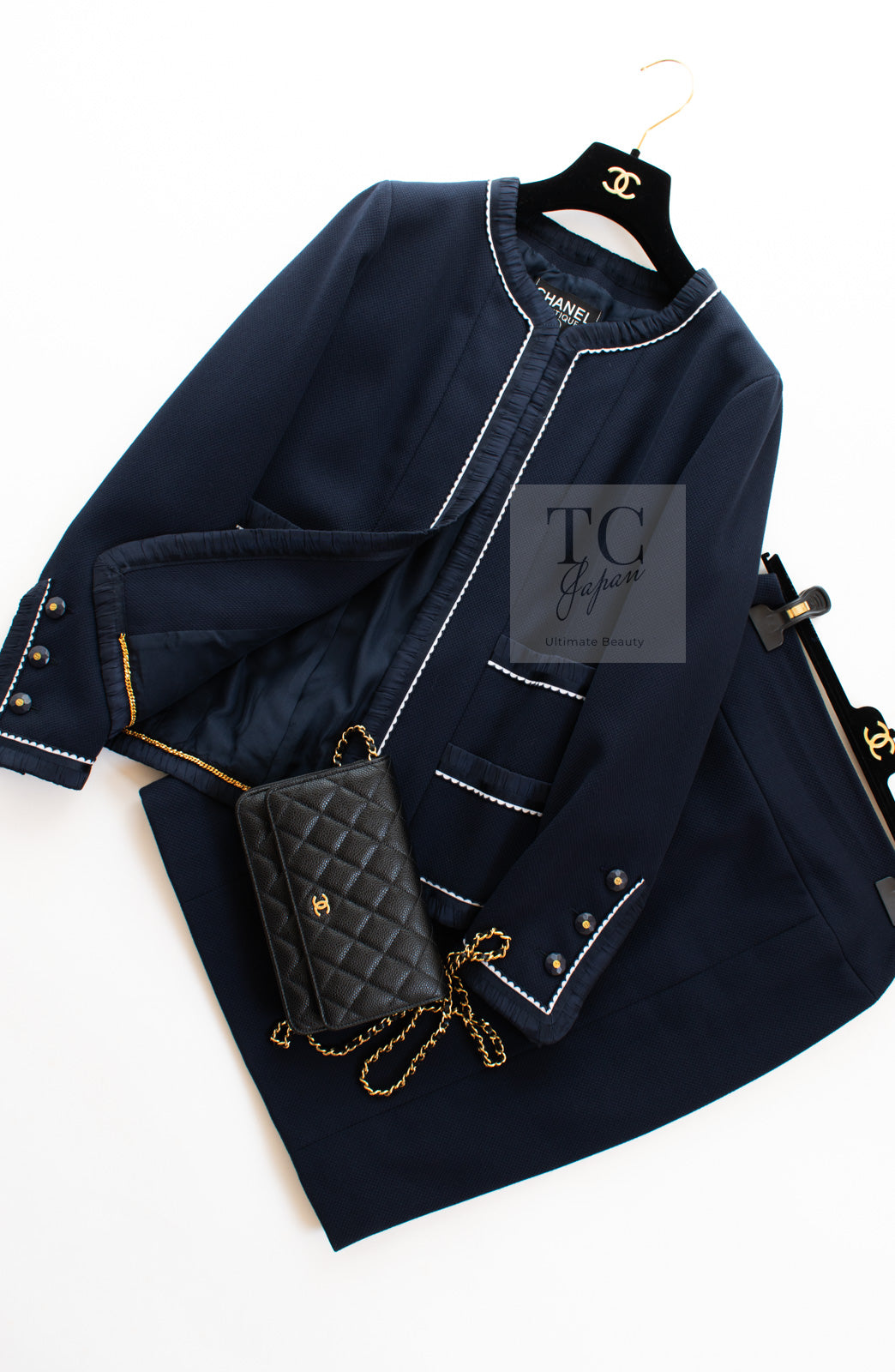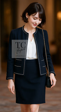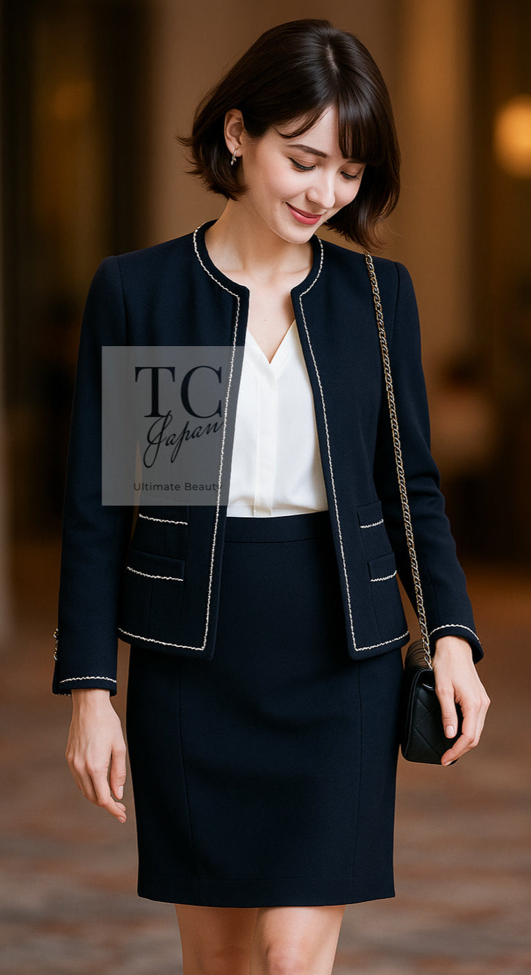 CHANEL 94S Navy "BLACKPINK" Jennie Cotton Tweed Jacket Skirt Suit 34 36 38 42 シャネル ネイビー "ブラックピンク"のジェニー コットン ツイード ジャケット スカート スーツ 即発