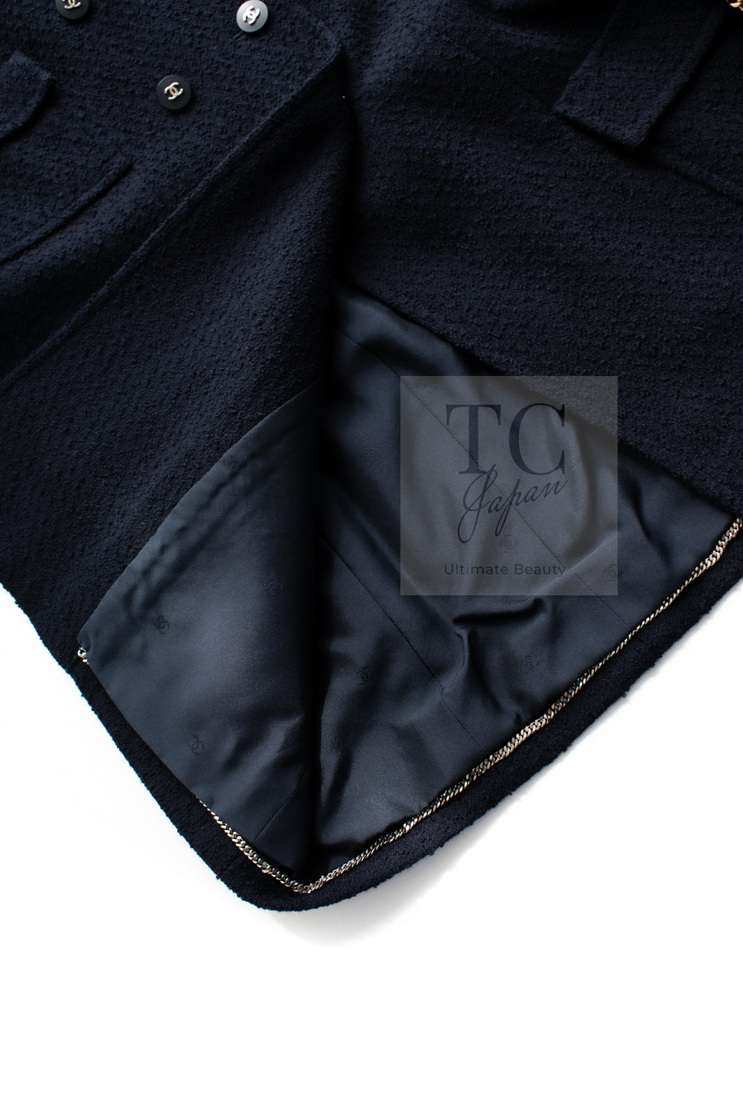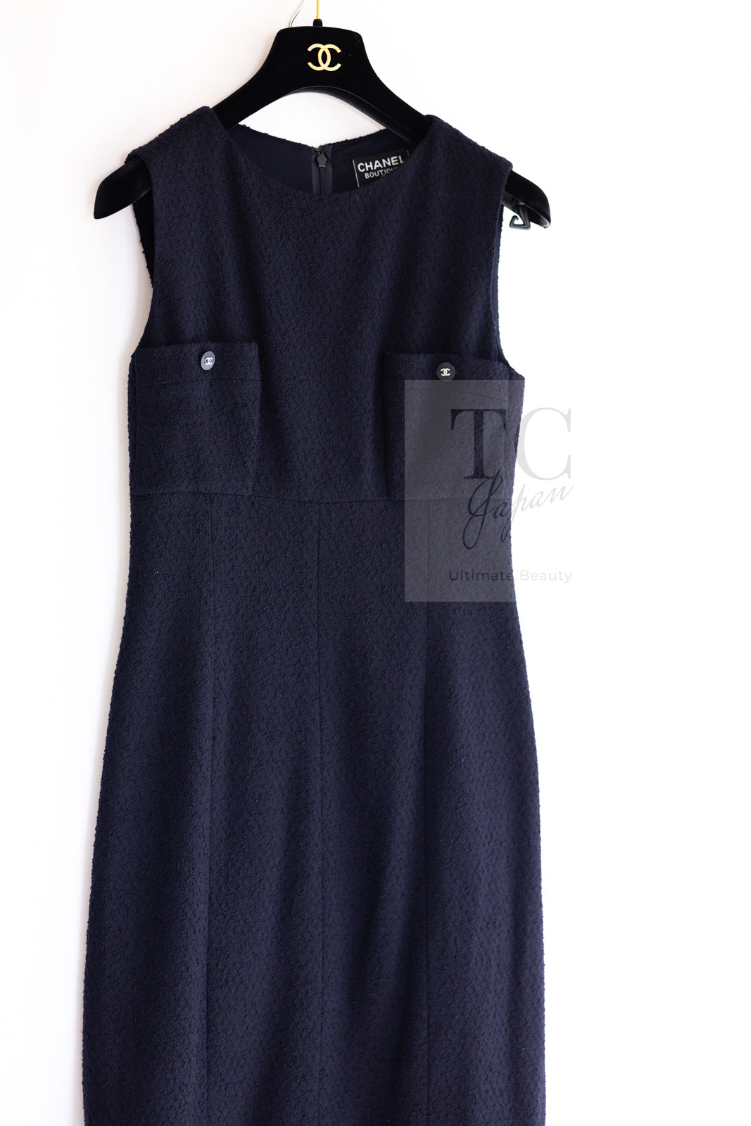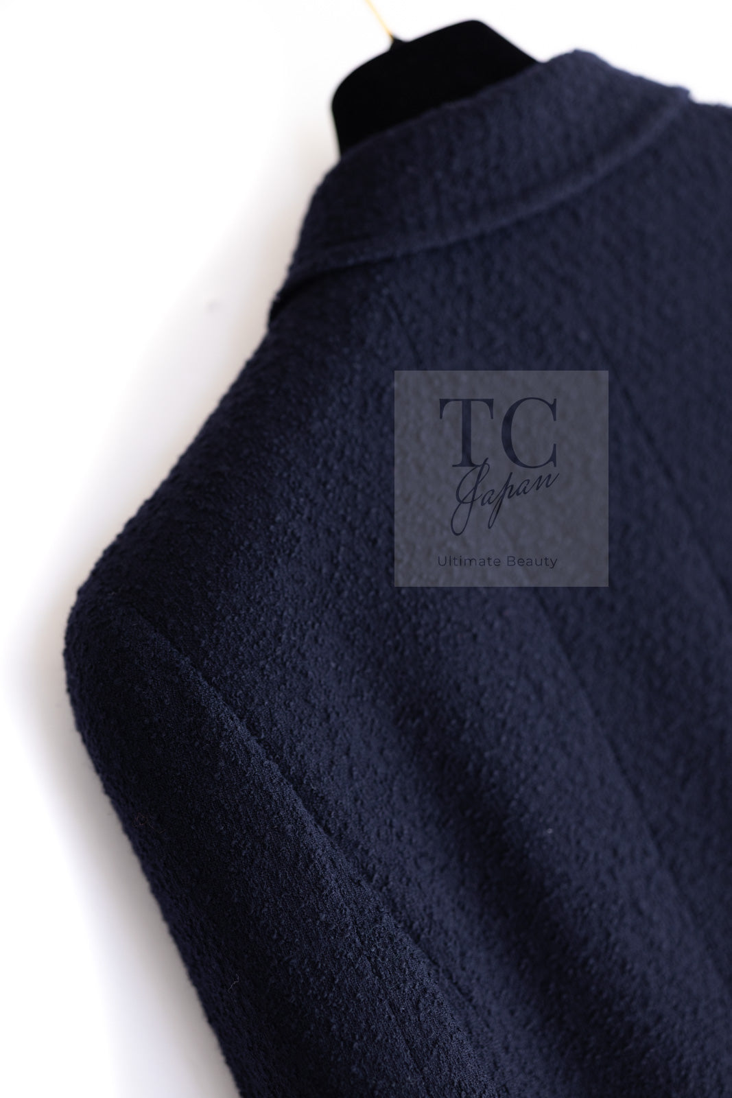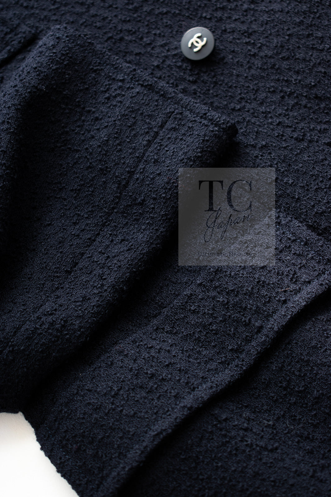 CHANEL 96S Vintage Navy Double Wool Tweed Dress Jacket Setup 38 シャネル ヴィンテージ ネイビー ウール ツイード ワンピース ジャケット セットアップ 即発