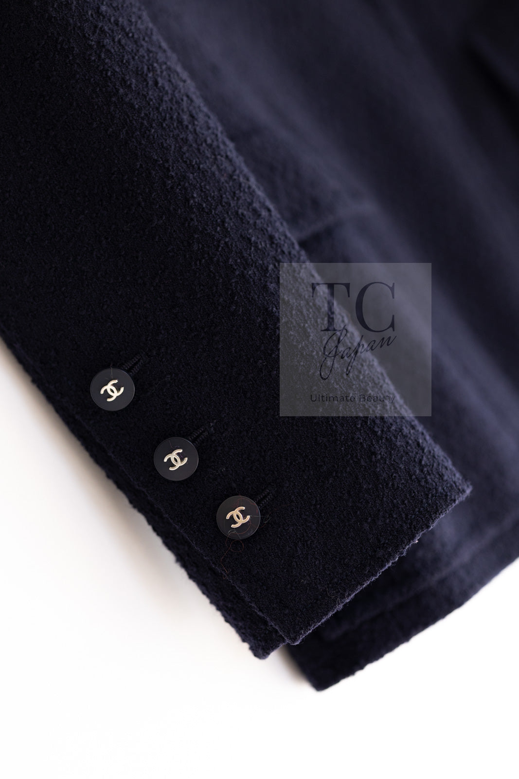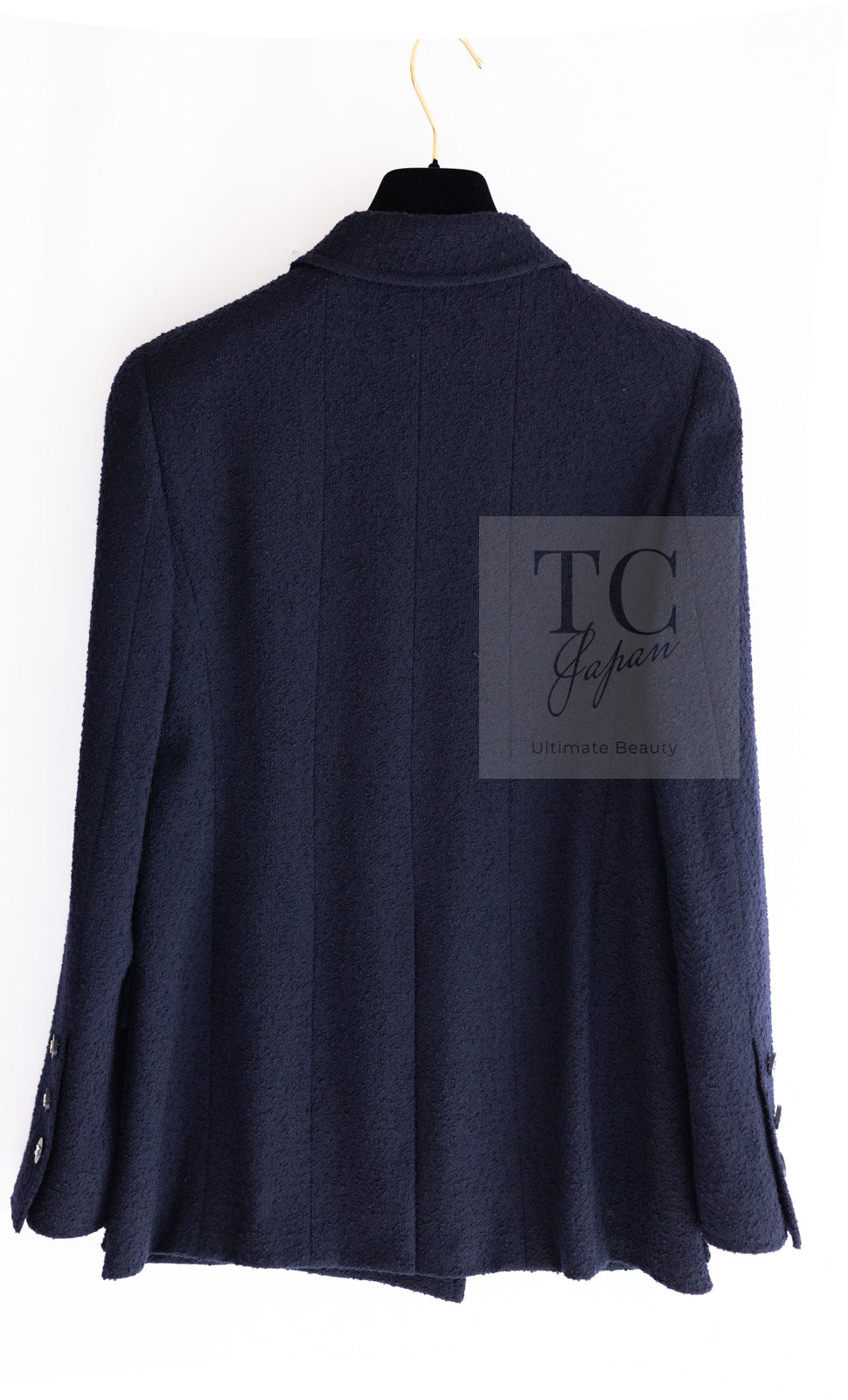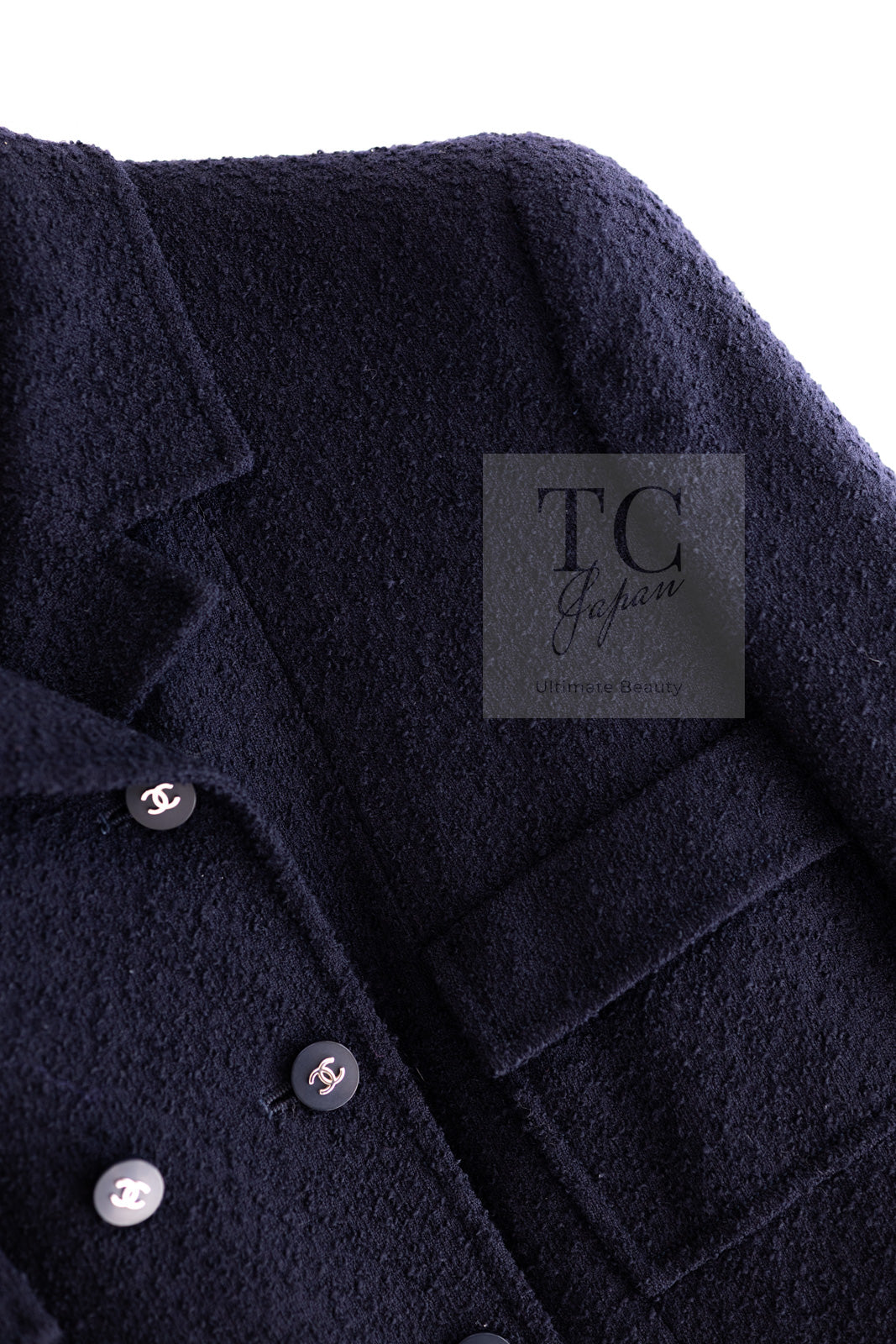 CHANEL 96S Vintage Navy Double Wool Tweed Dress Jacket Setup 38 シャネル ヴィンテージ ネイビー ウール ツイード ワンピース ジャケット セットアップ 即発