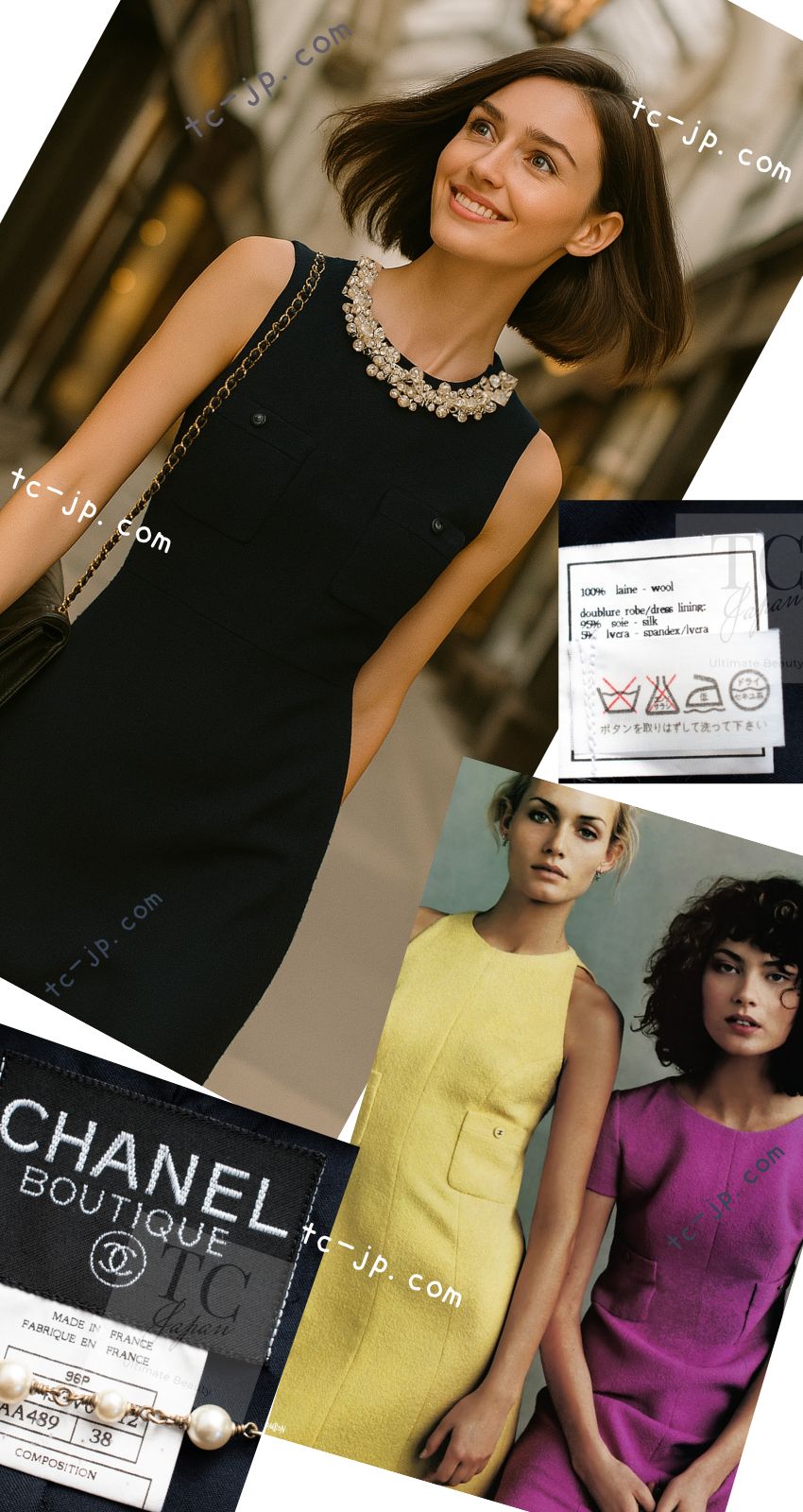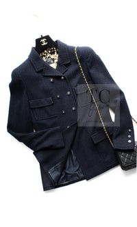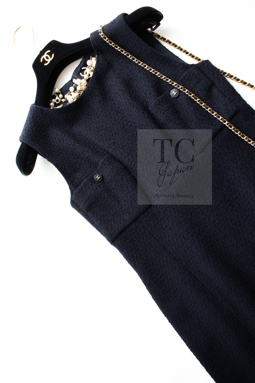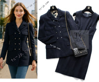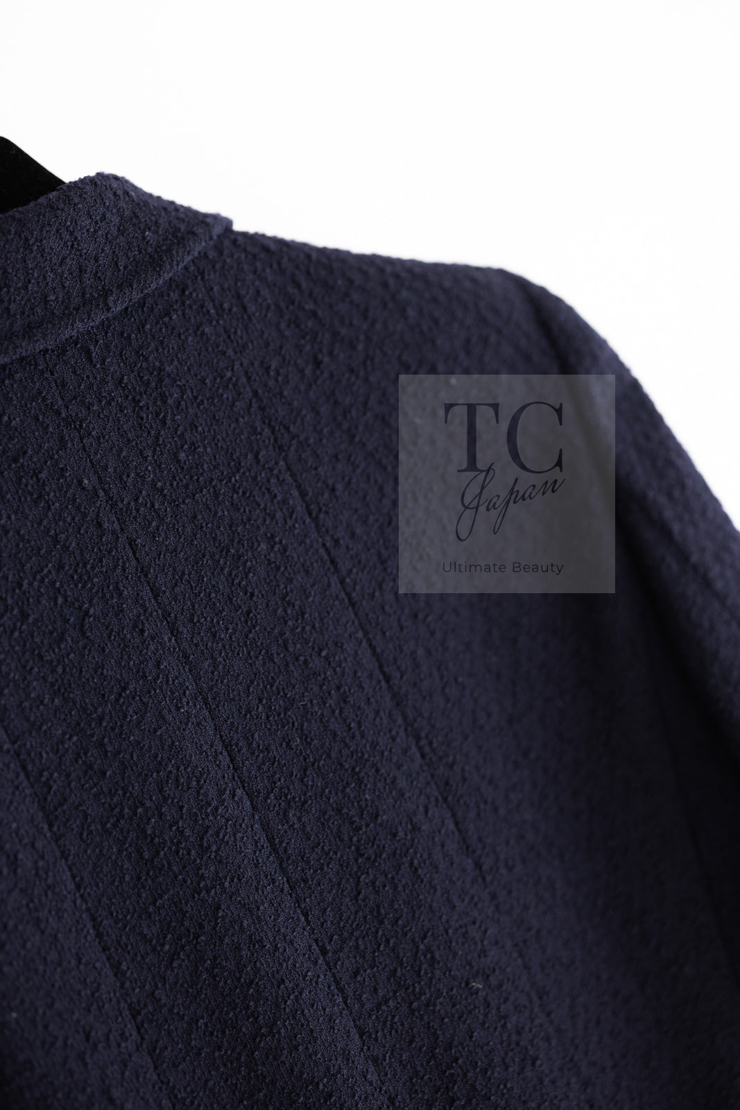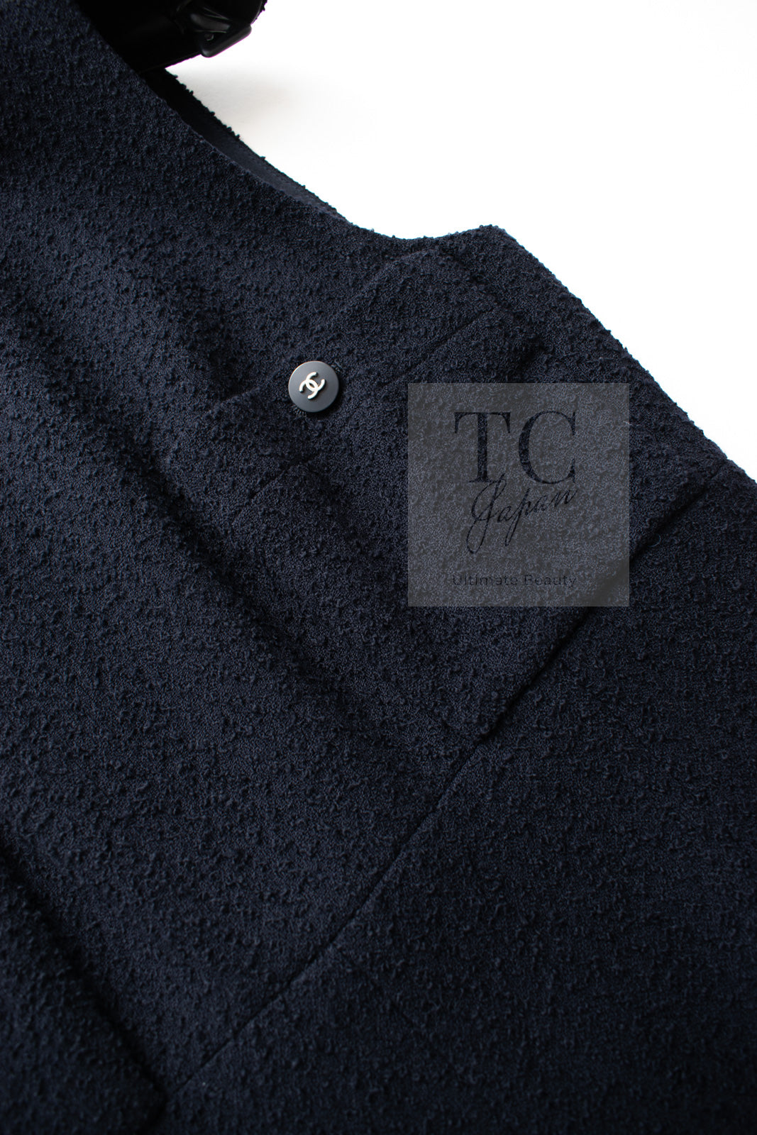 CHANEL 96S Vintage Navy Double Wool Tweed Dress Jacket Setup 38 シャネル ヴィンテージ ネイビー ウール ツイード ワンピース ジャケット セットアップ 即発