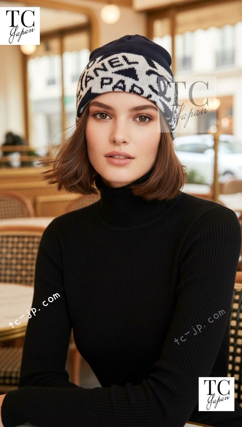 CHANEL Navy Knit Cap Women COCO Mark Logo Knit Hat シャネル ネイビー ニットキャップ レディース ココマークロゴ ニット帽