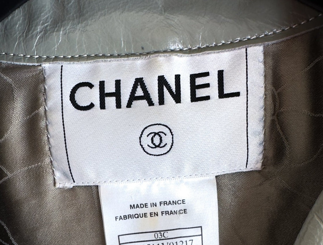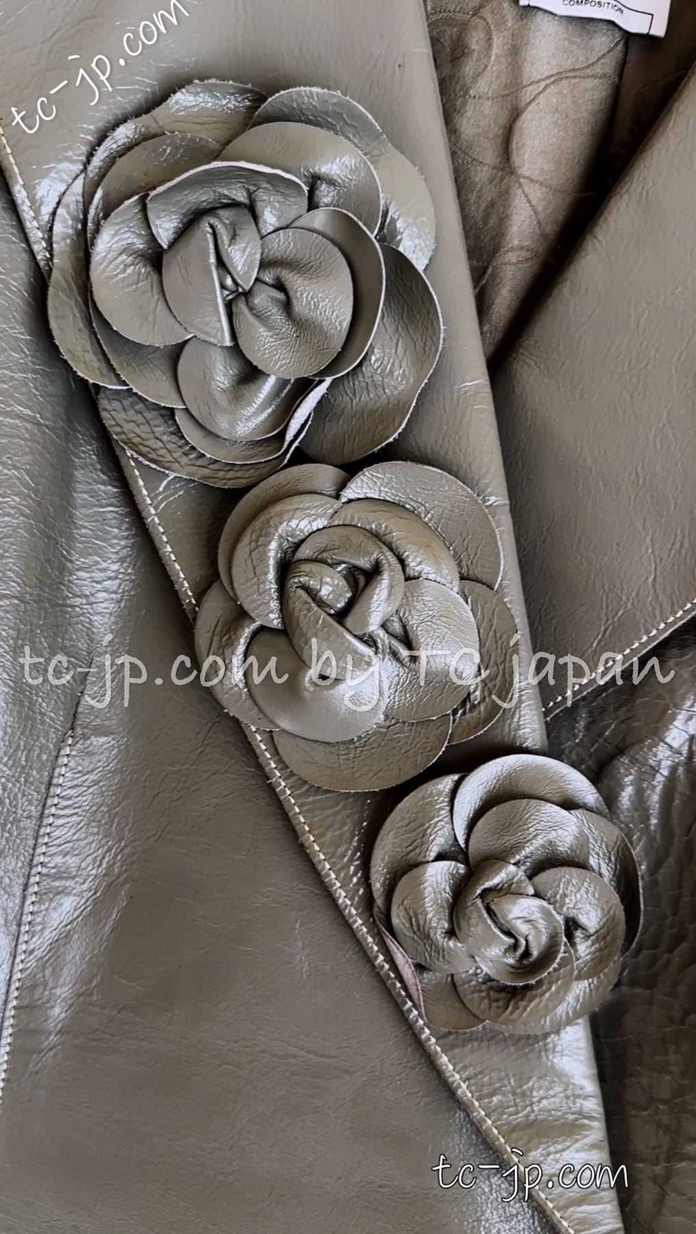 CHANEL 03C Gray Moss Calfskin Leather Camellia Jacket 38 シャネル モス グレー カメリア カーフスキン レザー ジャケット 即発