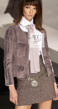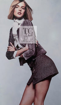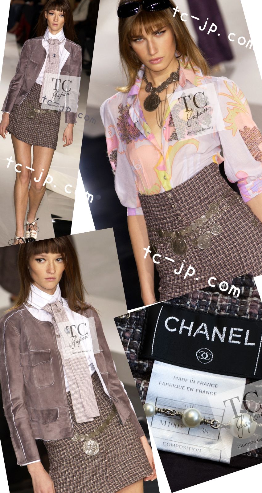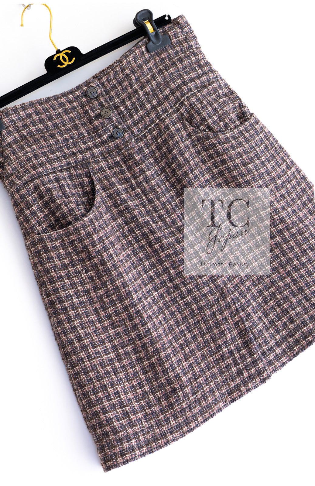 CHANEL 03S Brown Beige Pink Linen Cotton Tweed Skirt 38 シャネル ブラウン ベージュ ピンク リネン コットン ツイード スカート 即発