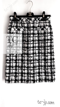CHANEL 05S White Black Tweed Skirt 36 38 シャネル ホワイト ブラック ツイード スカート 即発