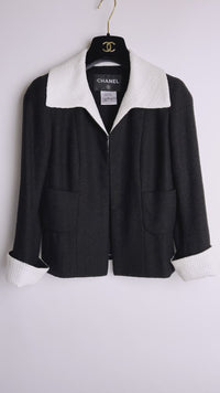 CHANEL 09S Black Ivory Two Tone Color Jacket 36 38 シャネル ブラック アイボリー 黒白 ツートンカラー ジャケット 即発