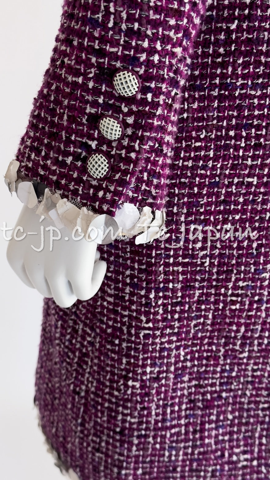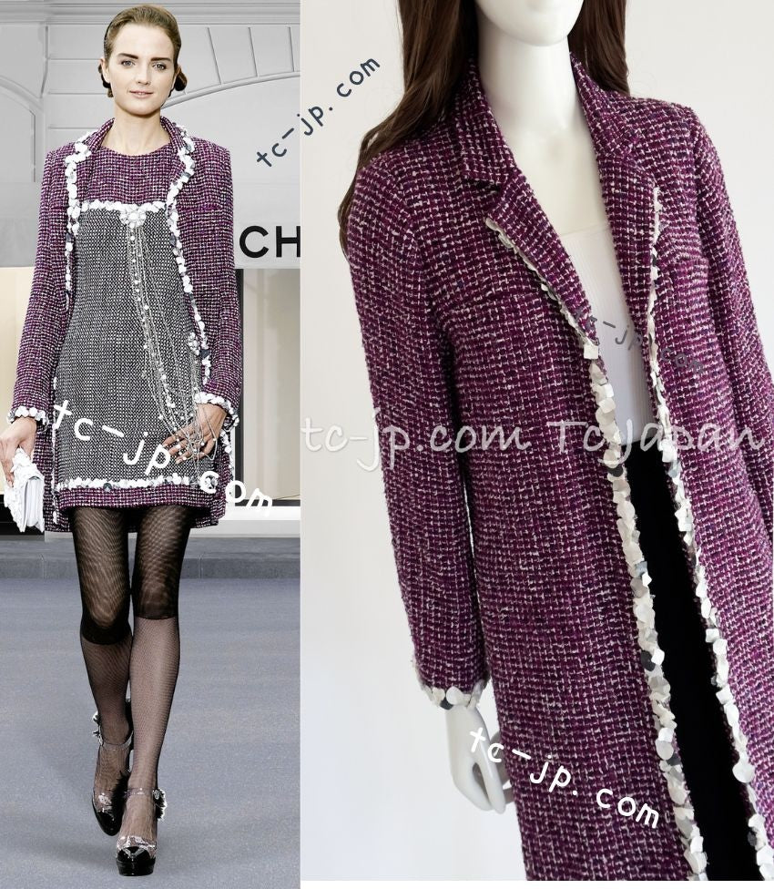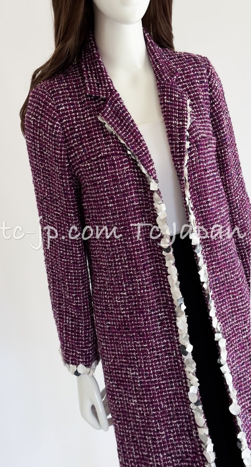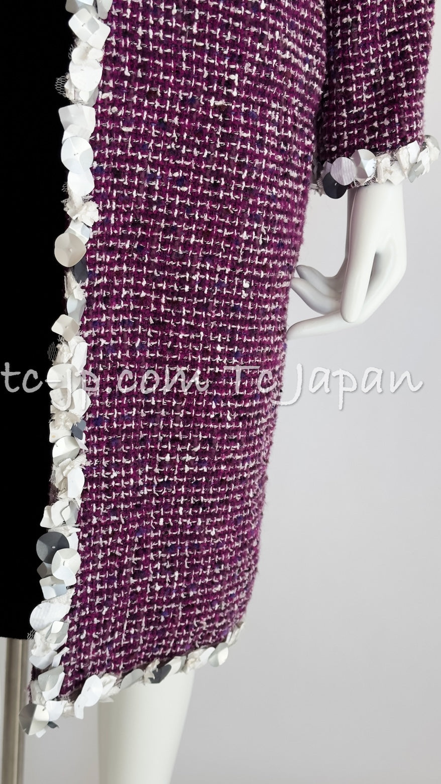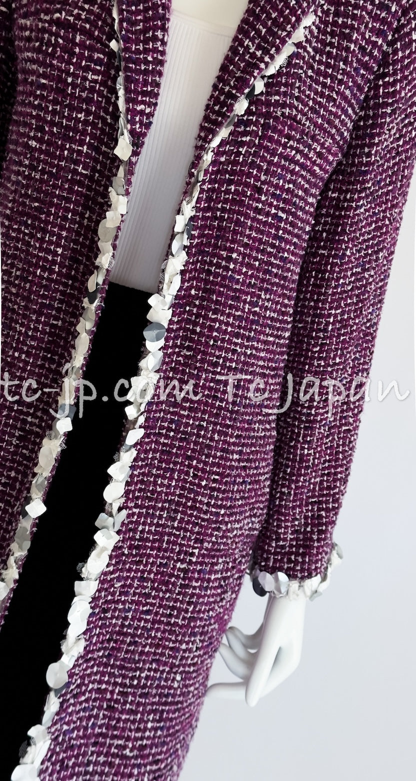 CHANEL 09S Purple Cotton Wool Tweed Sequin Trim Coat 44 46 シャネル パープル コットン ウール ツイード スパンコール トリム コート 即発