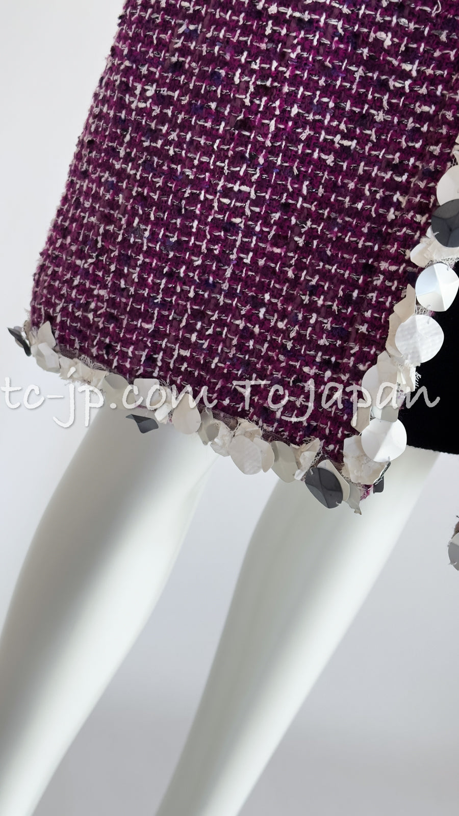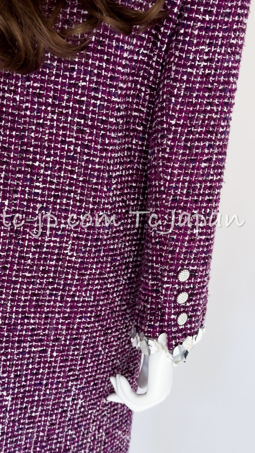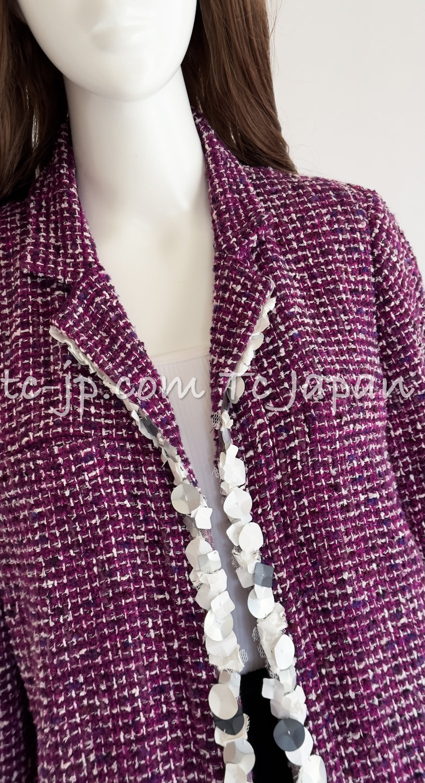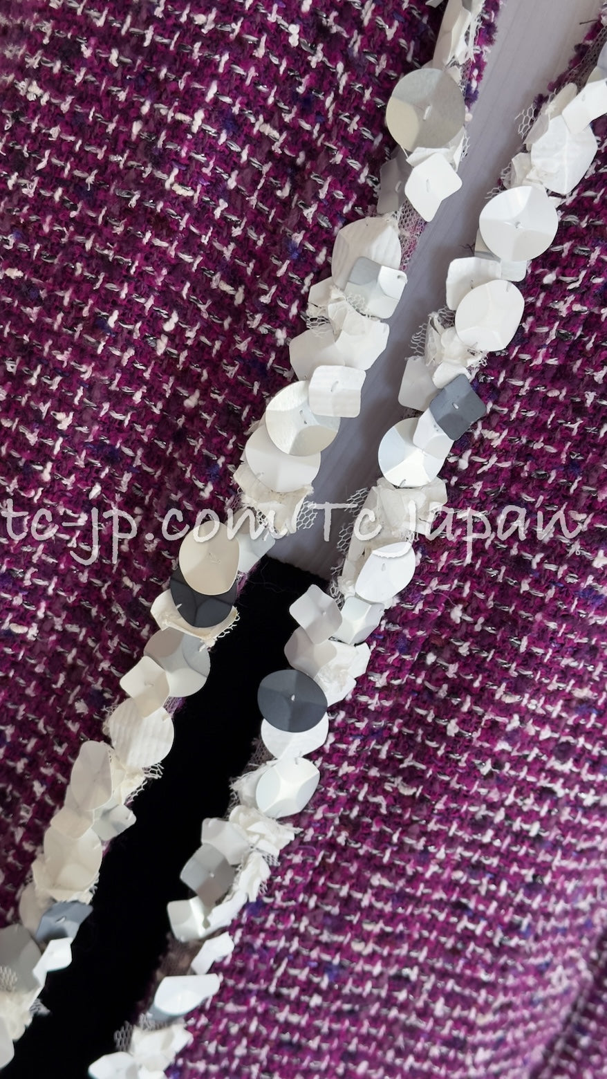 CHANEL 09S Purple Cotton Wool Tweed Sequin Trim Coat 44 46 シャネル パープル コットン ウール ツイード スパンコール トリム コート 即発