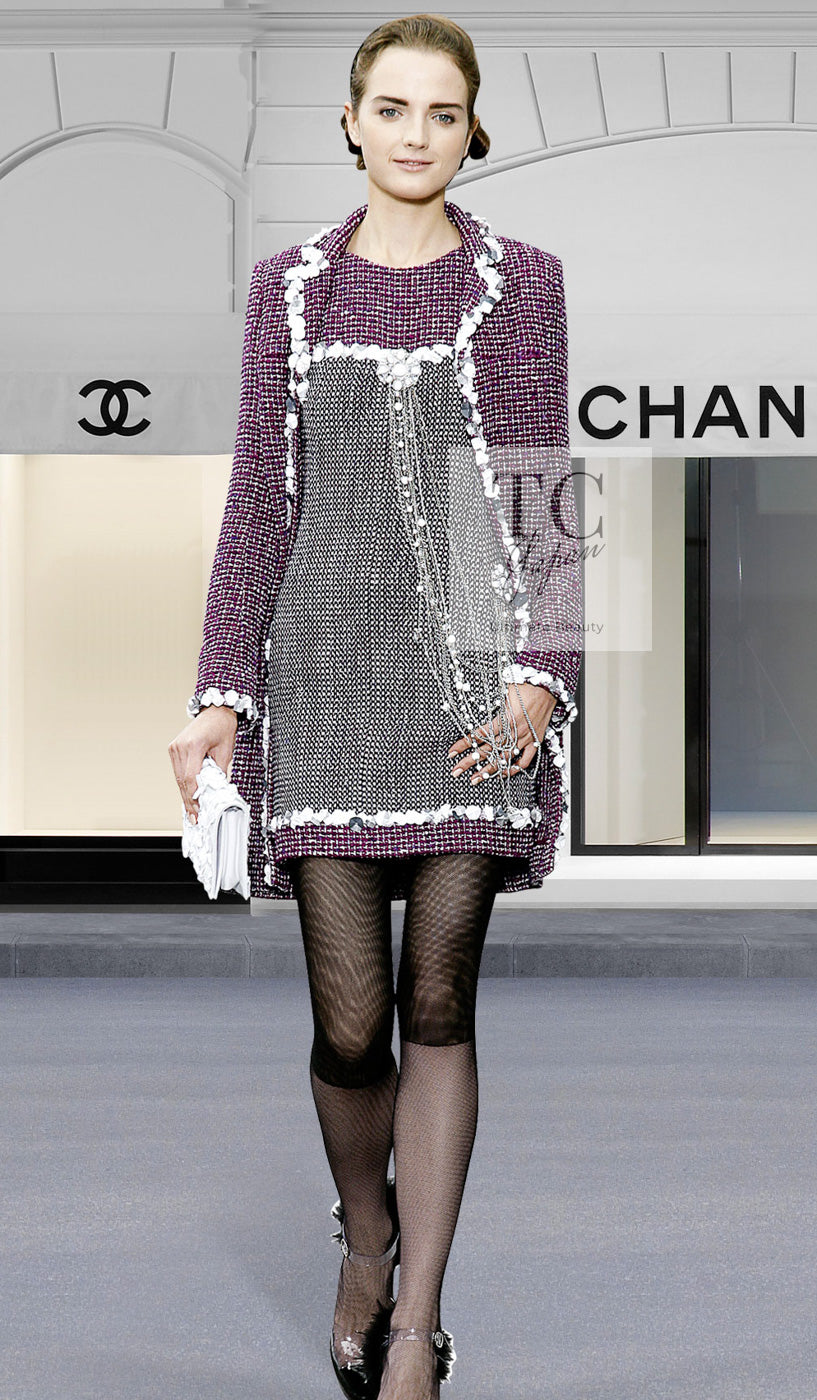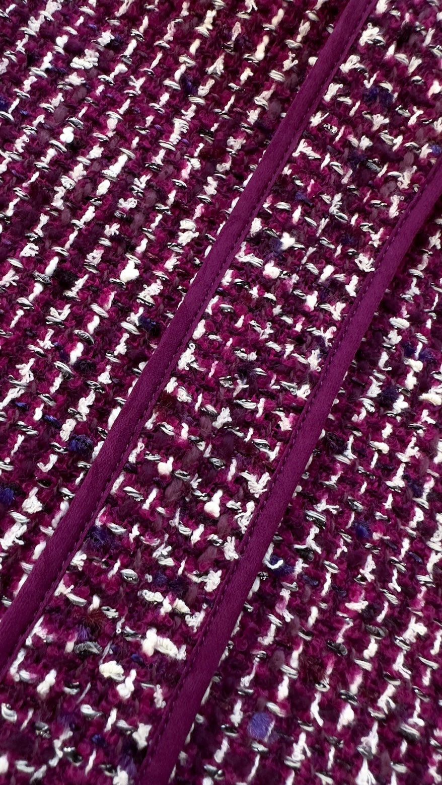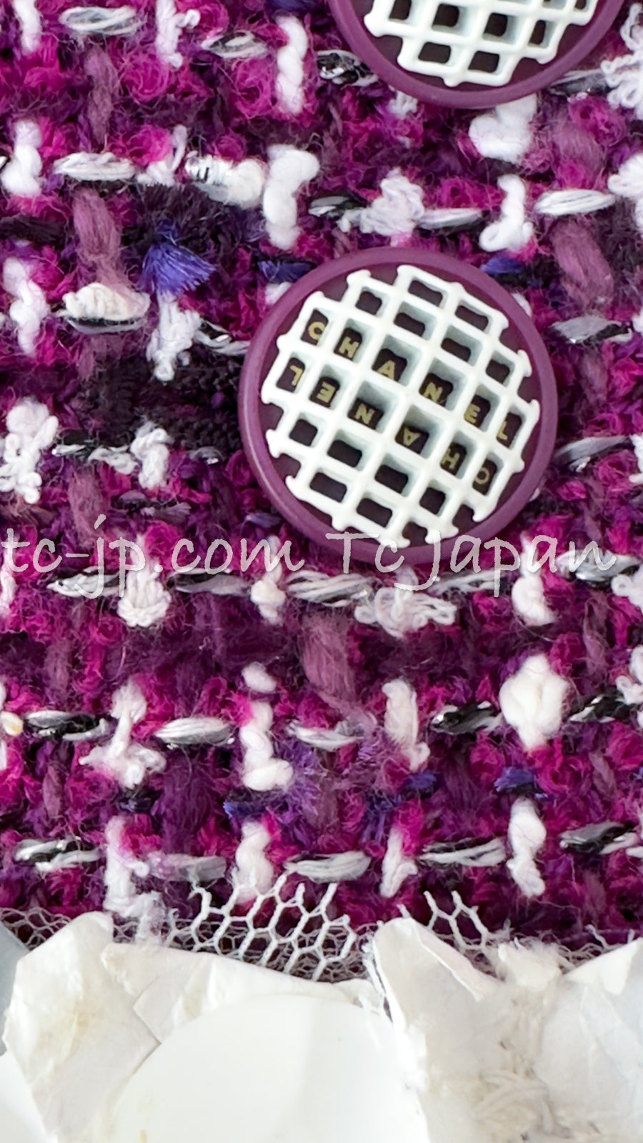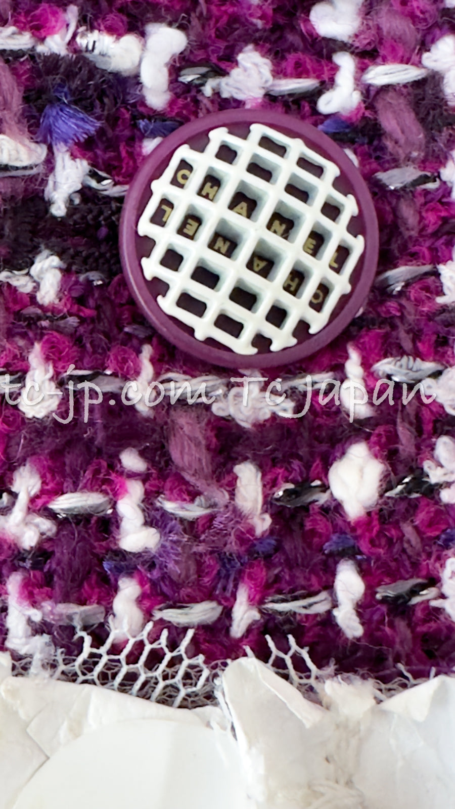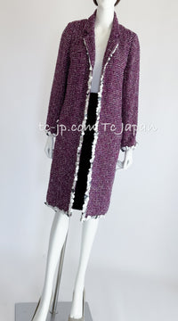 CHANEL 09S Purple Cotton Wool Tweed Sequin Trim Coat 44 46 シャネル パープル コットン ウール ツイード スパンコール トリム コート 即発