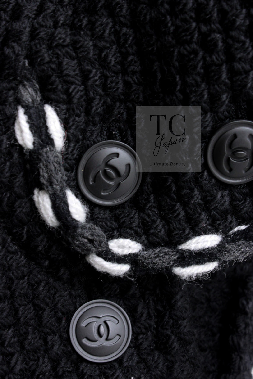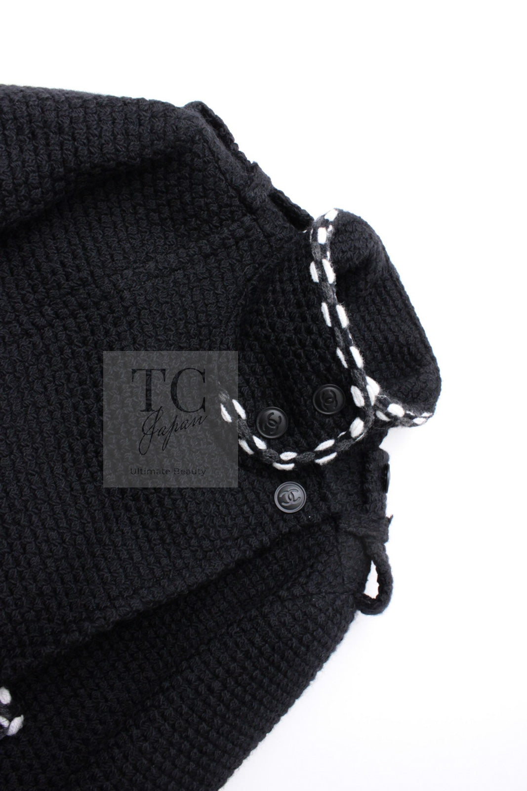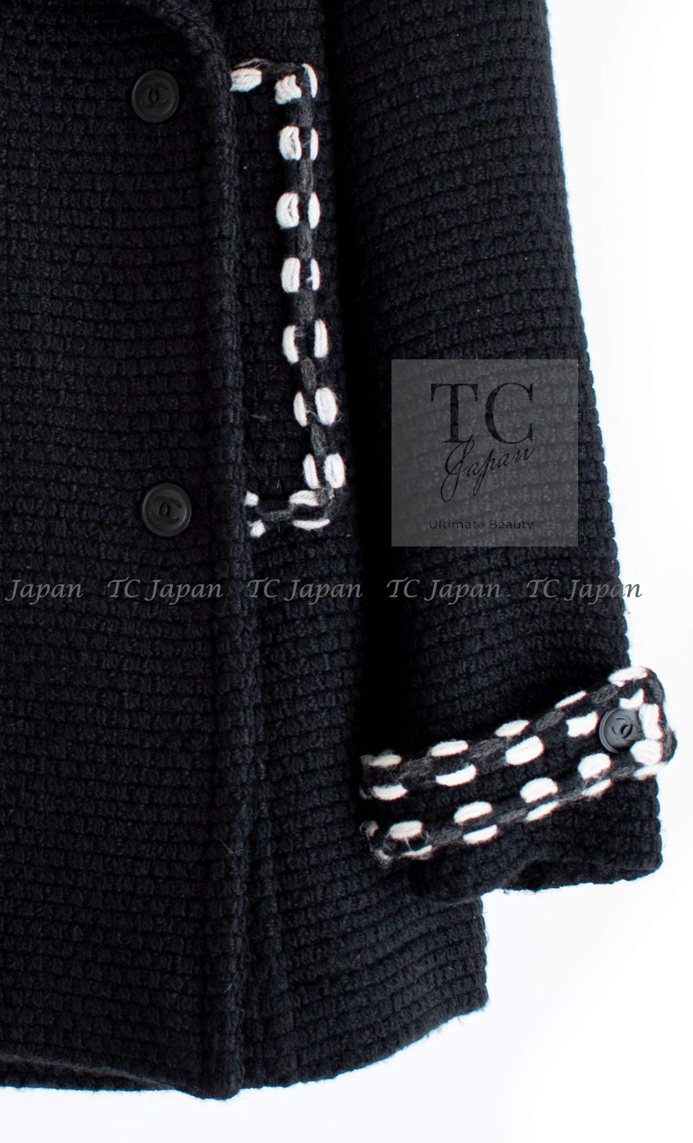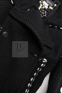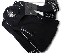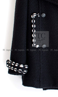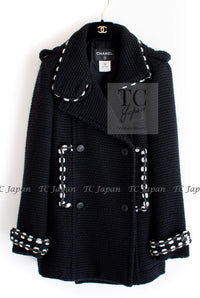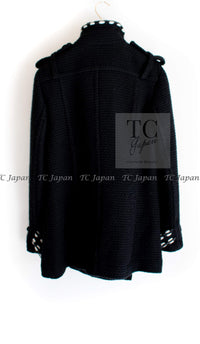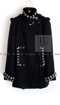 CHANEL 10A Black White Trim Wool Knit Jacket Coat 38 シャネル ブラック ホワイト トリム ウール ニット ジャケット コート 即発