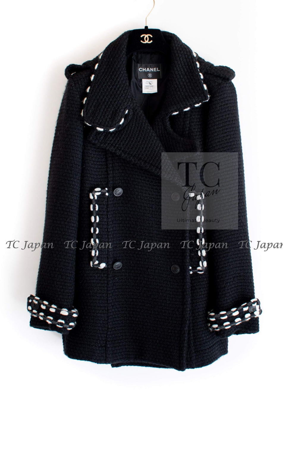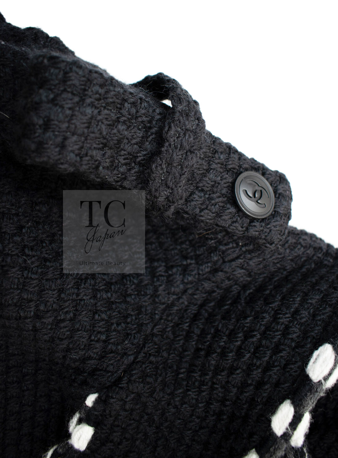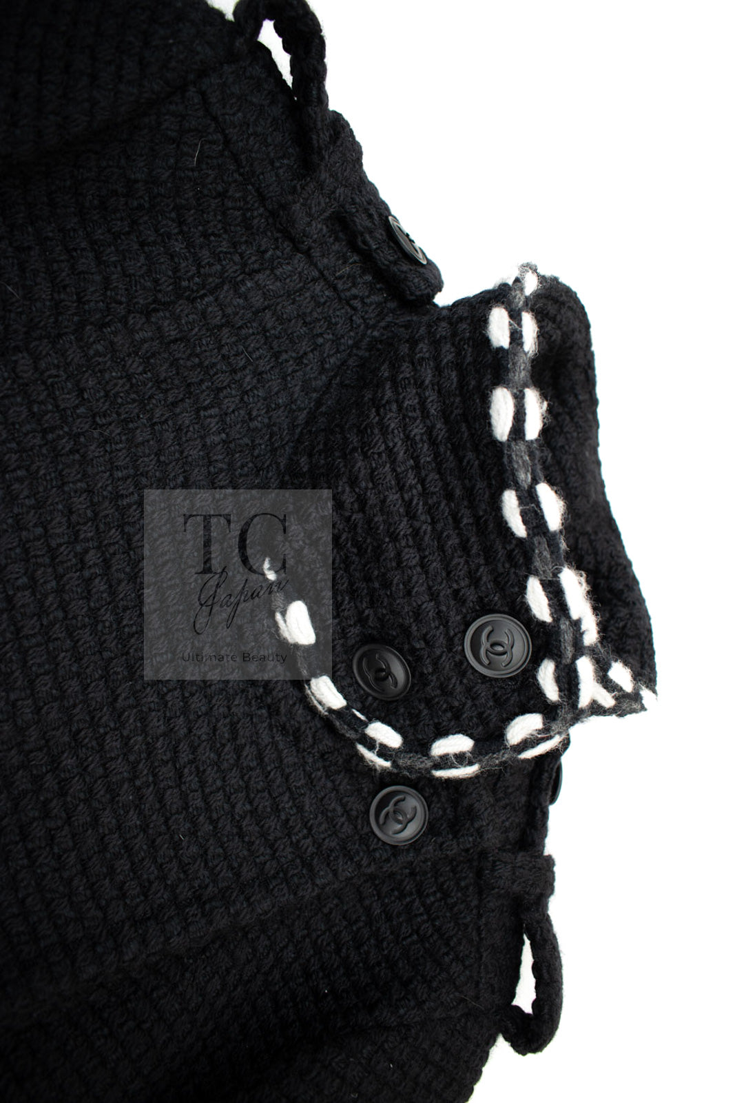 CHANEL 10A Black White Trim Wool Knit Jacket Coat 38 シャネル ブラック ホワイト トリム ウール ニット ジャケット コート 即発