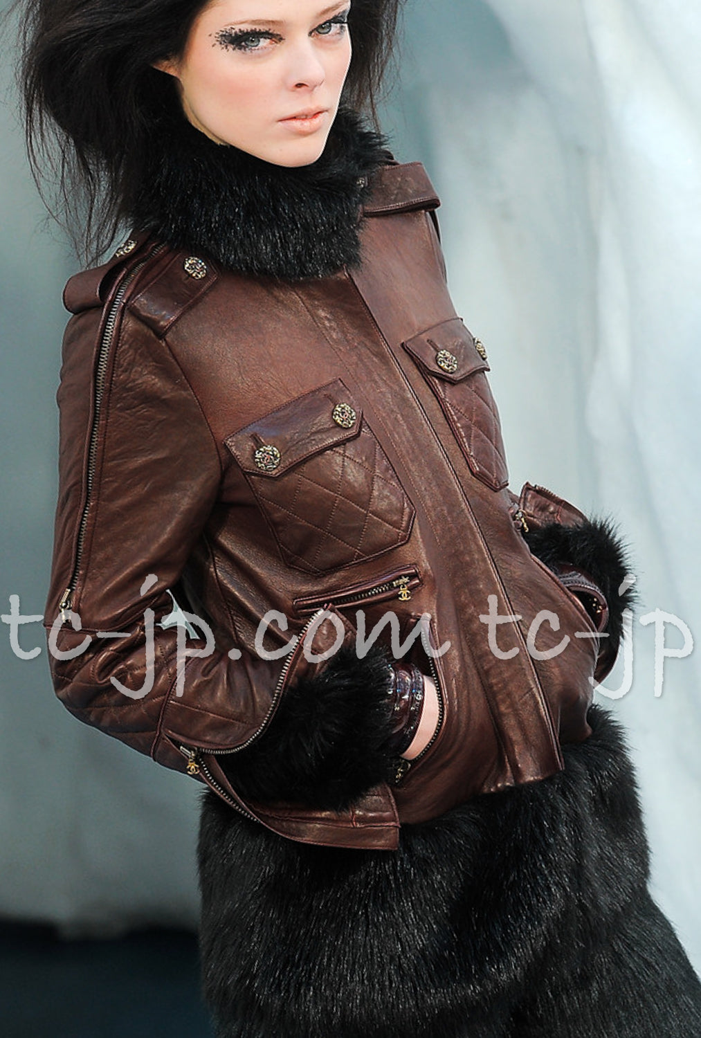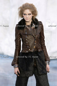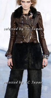 CHANEL 10A Brown Leather Jacket Coat Skirt 38 シャネル 訳あり!ブラウン・レザー・ジャケット・スカート 即発