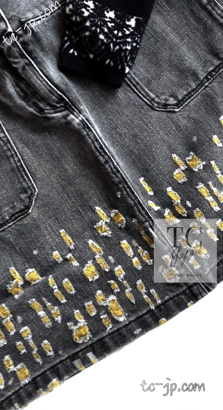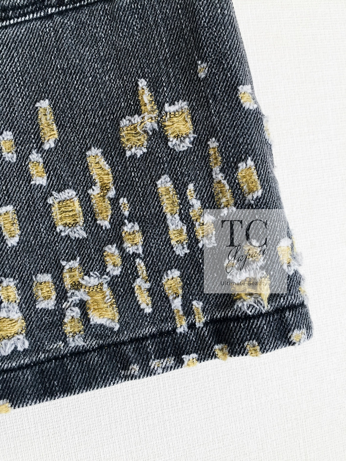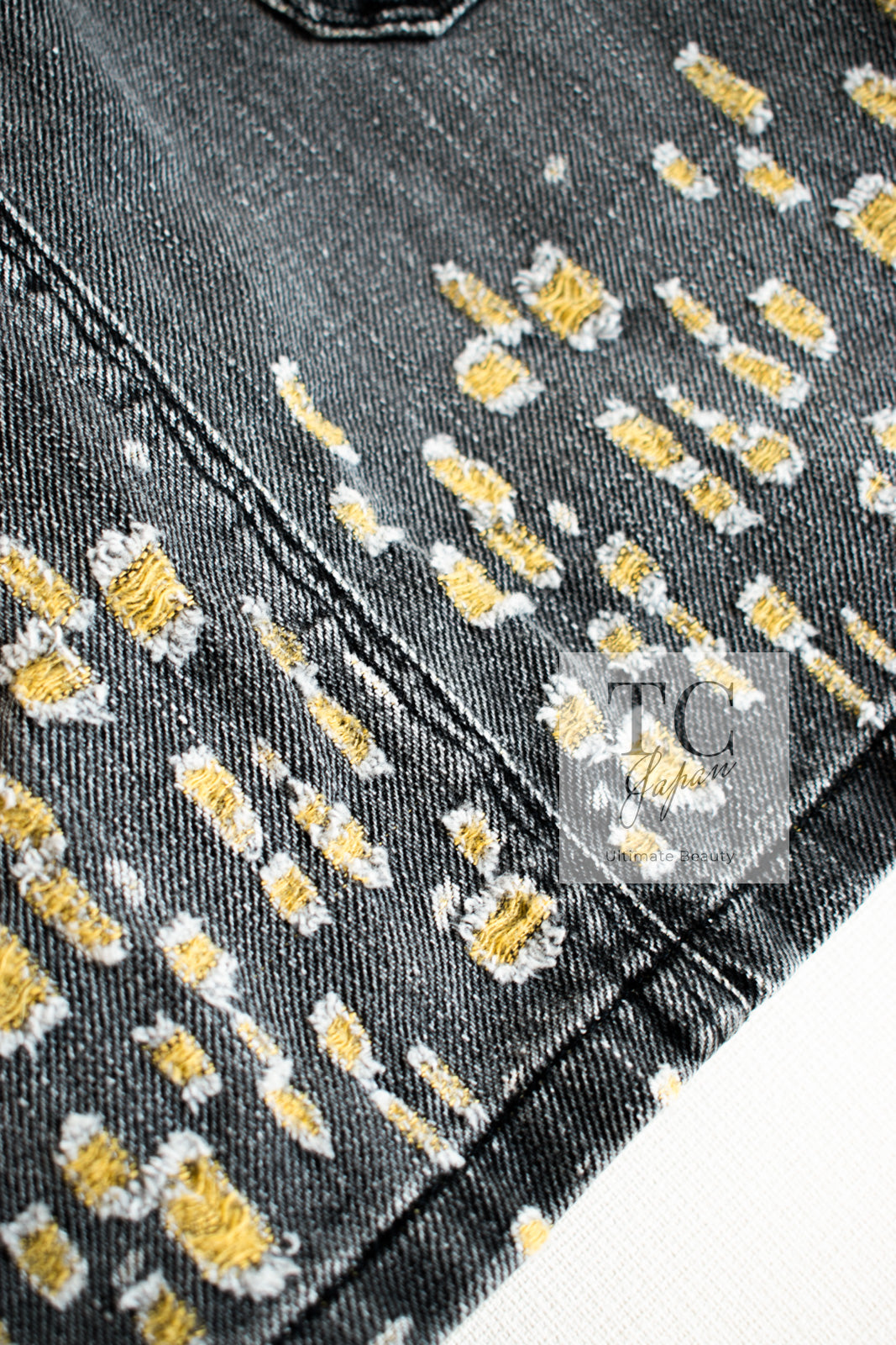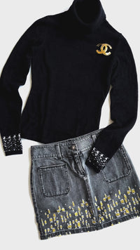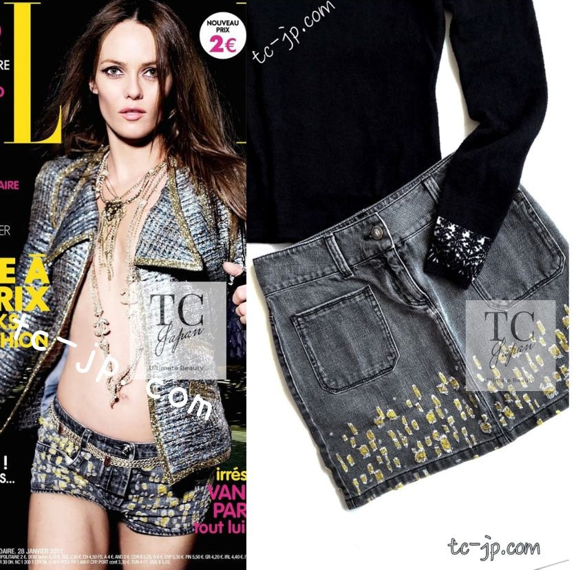 CHANEL 11S Gray Yellow Denim Cotton Mini Skirt 36 シャネル グレー イエロー デニム コットン ミニ スカート 即発
