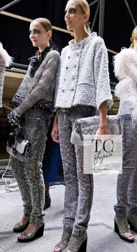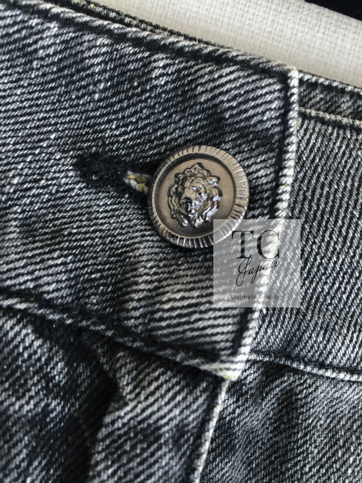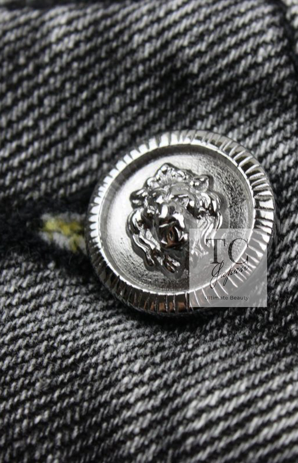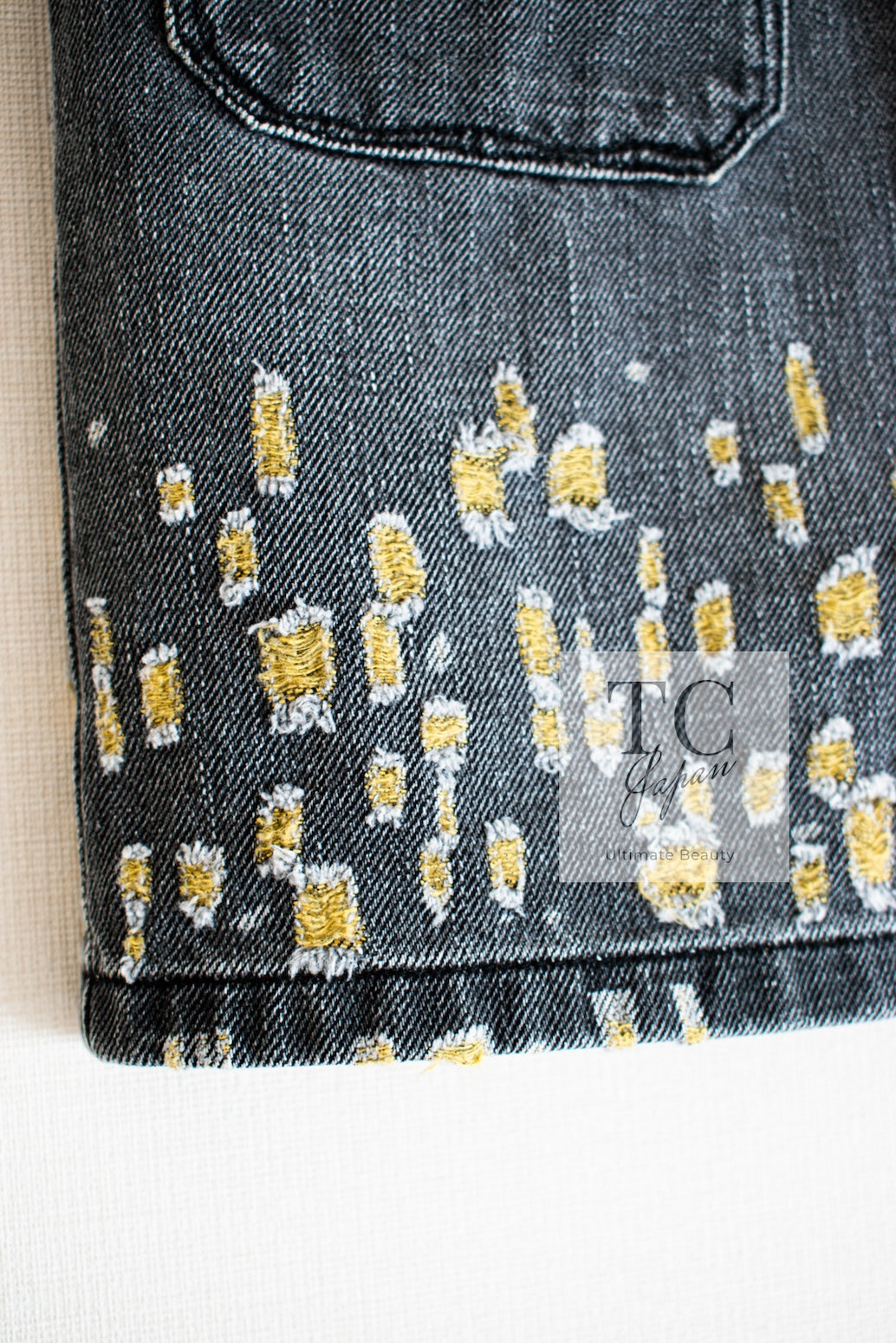 CHANEL 11S Gray Yellow Denim Cotton Mini Skirt 36 シャネル グレー イエロー デニム コットン ミニ スカート 即発