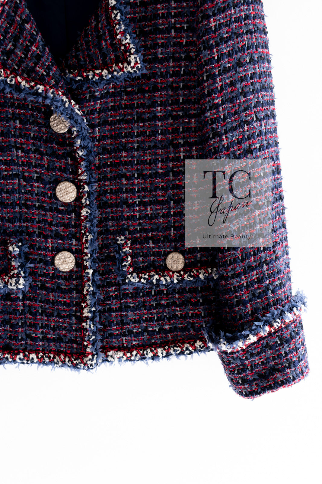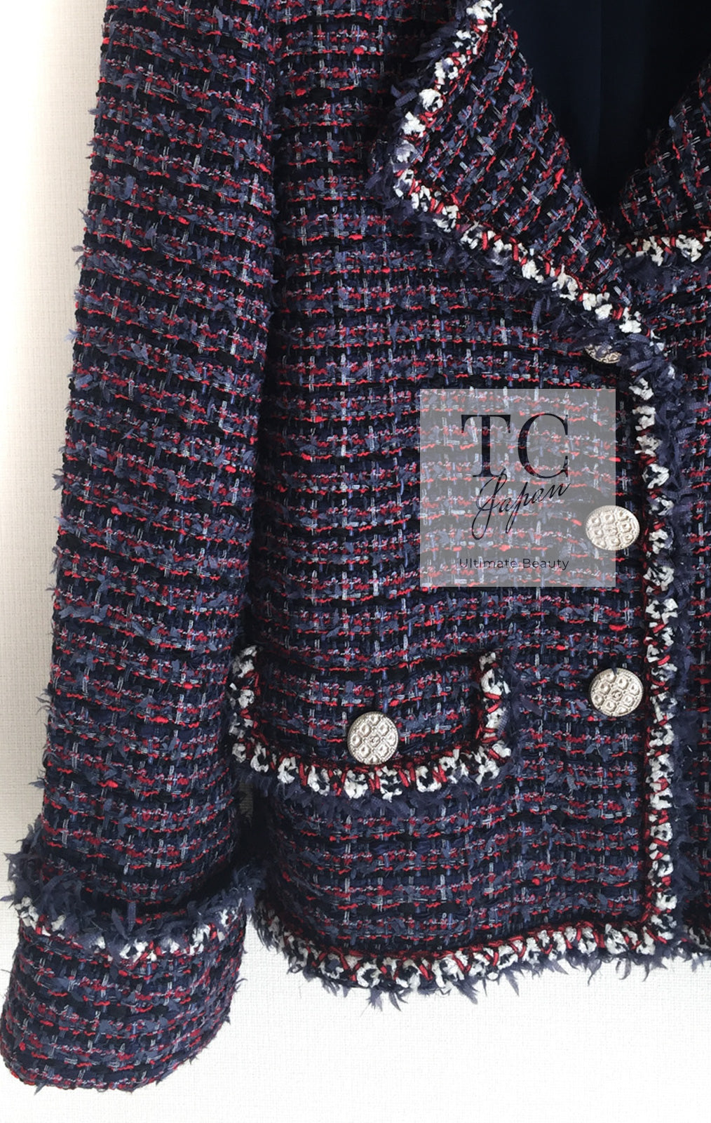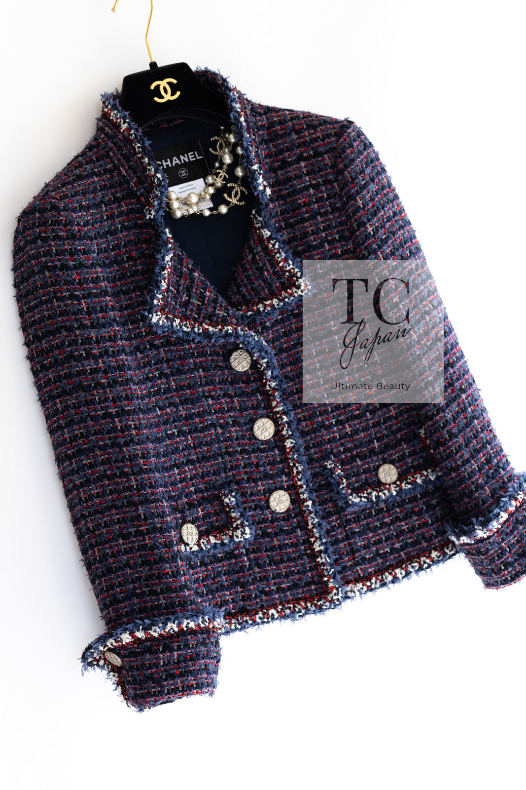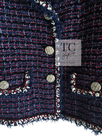CHANEL 13C Navy Purple Red Ribbon Versailles Lesage Tweed Jacket 46 48 シャネル ネイビー パープル レッド リボン ベルサイユ ルサージュ ツイード ジャケット 即発