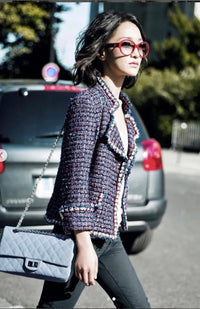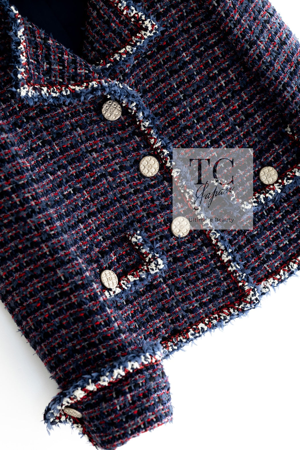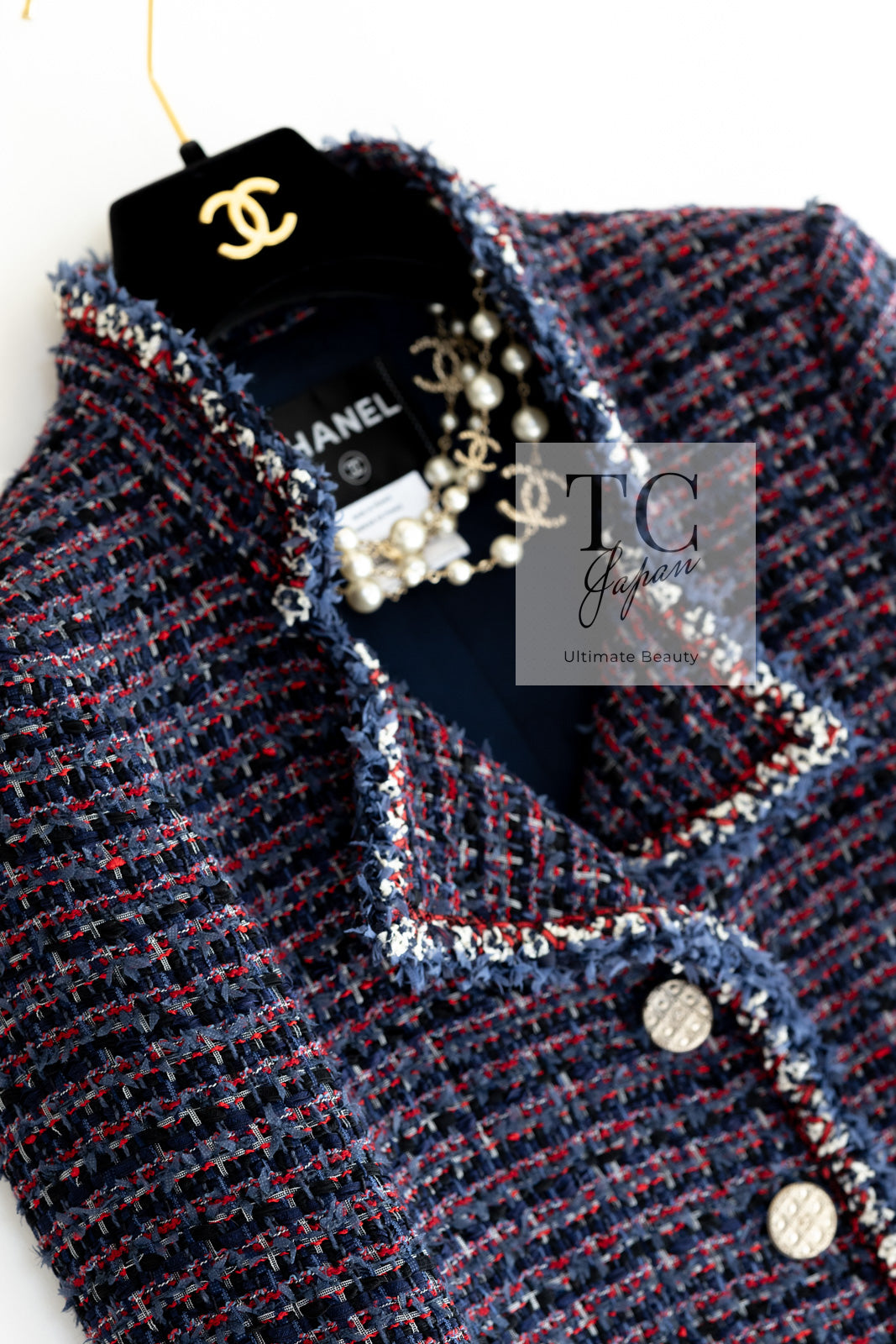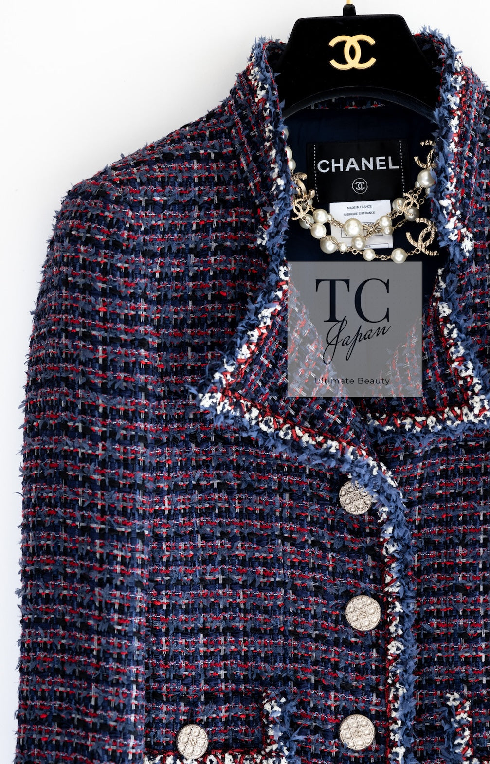CHANEL 13C Navy Purple Red Ribbon Versailles Lesage Tweed Jacket 46 48 シャネル ネイビー パープル レッド リボン ベルサイユ ルサージュ ツイード ジャケット 即発