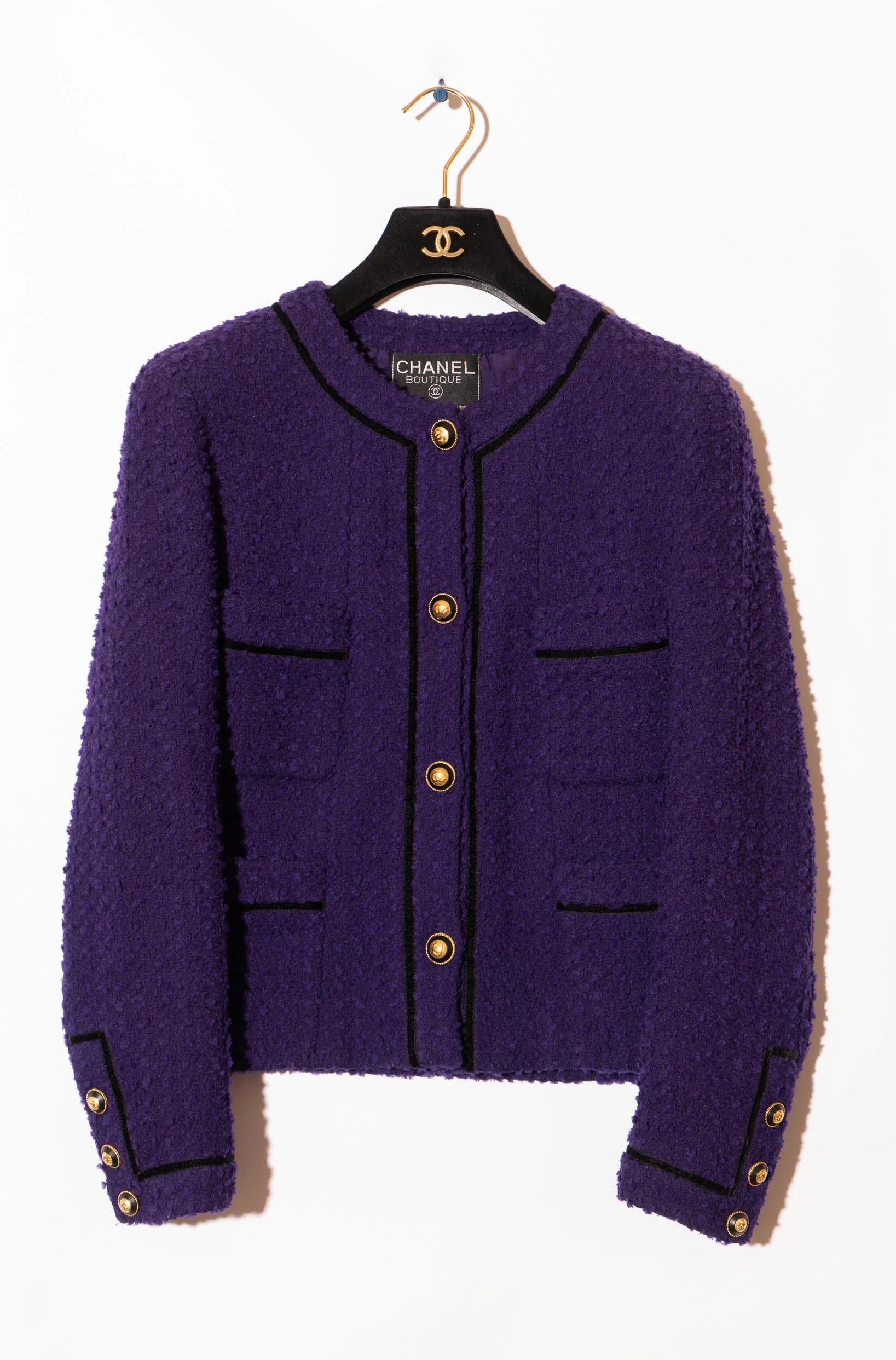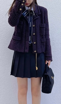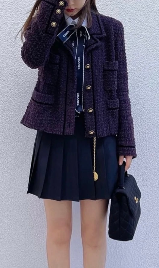 CHANEL 93A Vintage Purple Wool Tweed Jacket Skirt Suit 38 40 42 シャネル ヴィンテージ プラム パープル ウール ツイード ジャケット スカート スーツ 即発