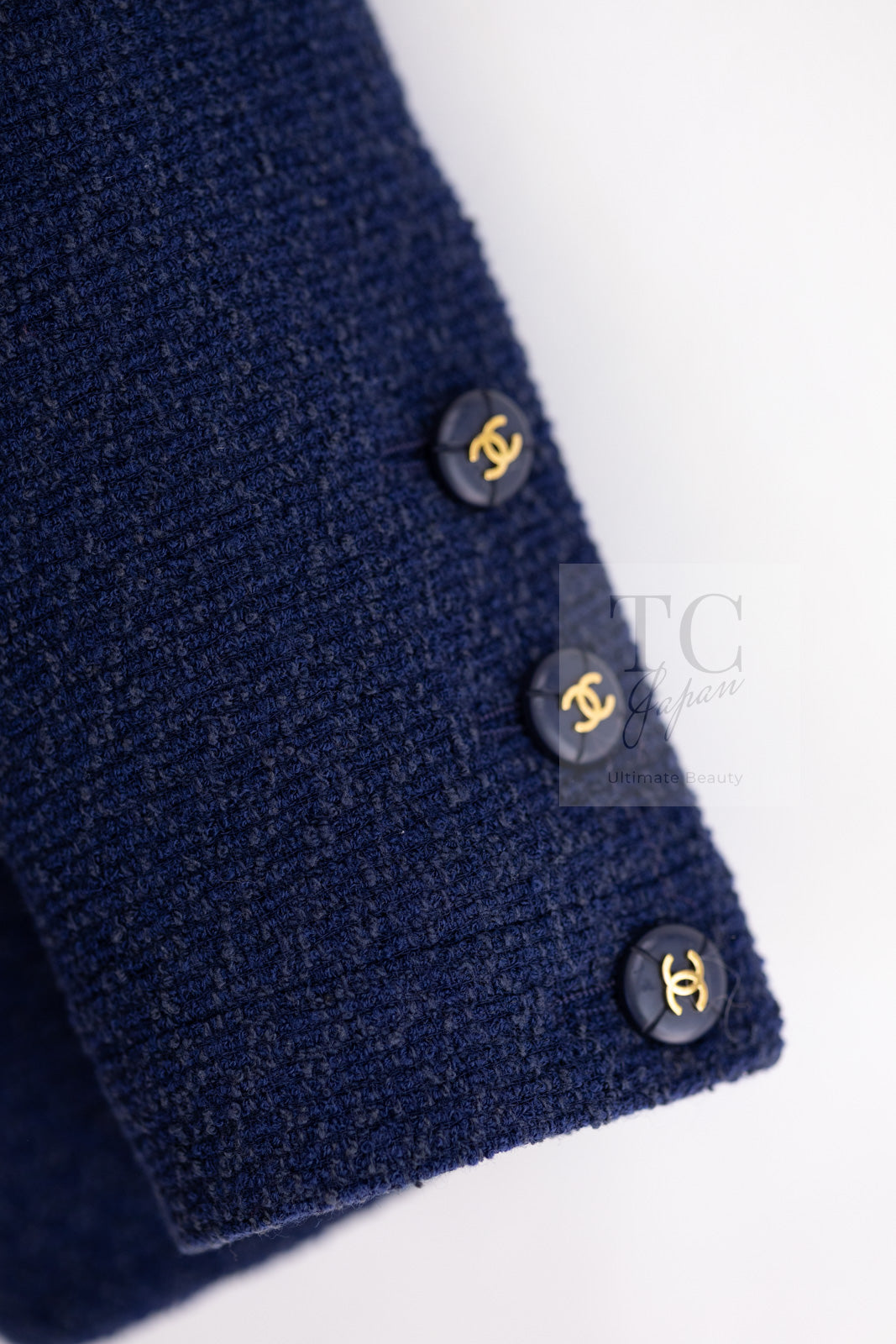 CHANEL 95S Vintage Navy Wool Cotton Jacket 36 38 シャネル ヴィンテージ ネイビー ウール コットン ジャケット 即発