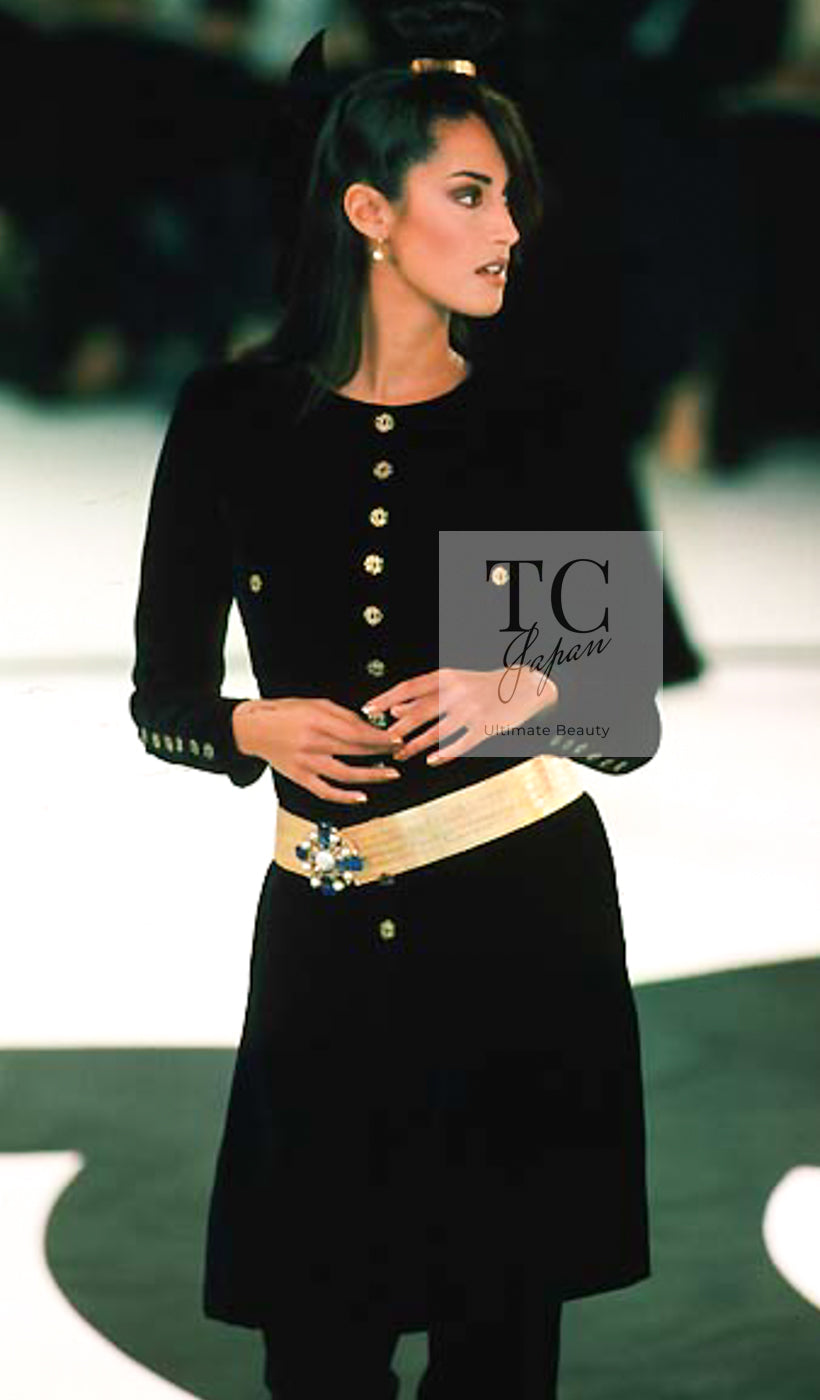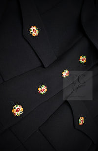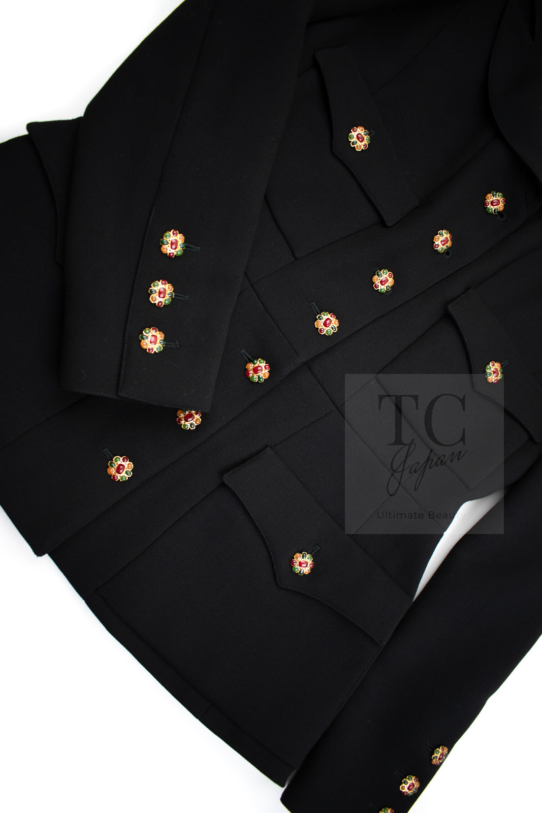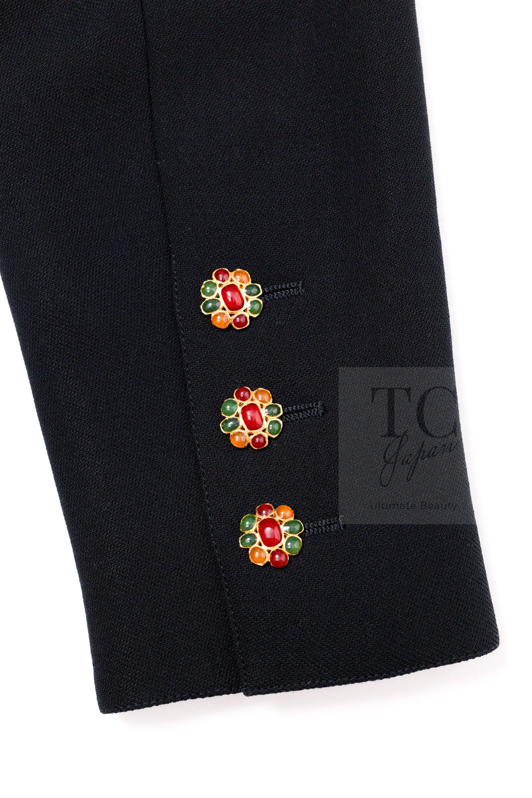 CHANEL 96A Vintage Black Wool Gripoix Jewelry Botton Jacket 34 36 シャネル ヴィンテージ ブラック ウール グリポワ 宝石 ボタン ジャケット 即発