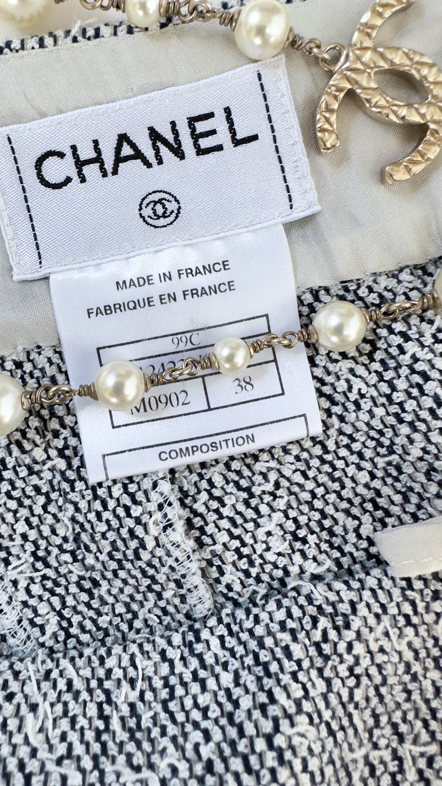 CHANEL 99C Gray Silver Light Weight Cotton Wool Skirt 38 シャネル グレー シルバー コットン ウール スカート 即発
