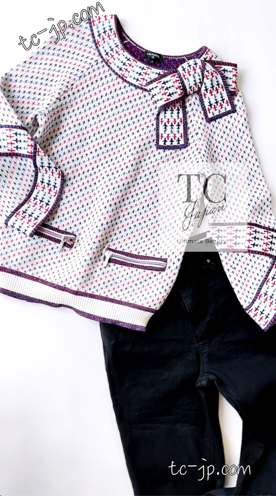 CHANEL 16S White Red Blue Airplane Tops Sweater 34 シャネル ホワイト レッド ブルー 飛行機 ニット トップス セーター 即発