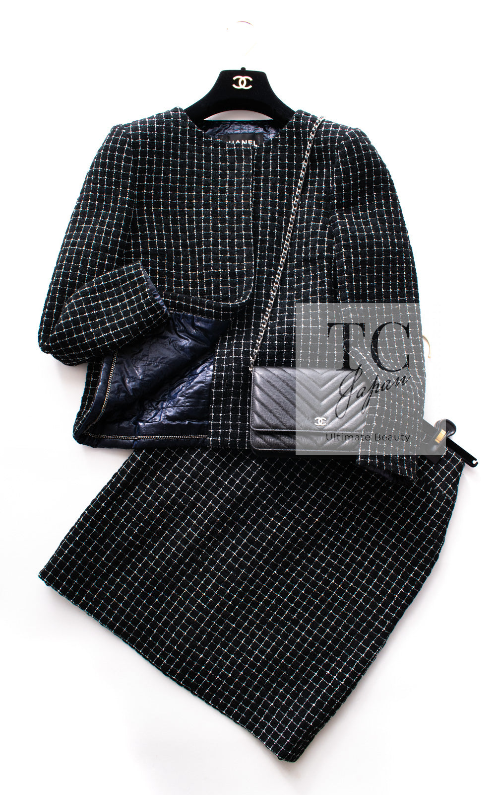 CHANEL 16S Black Check CC Lion Jacket Skirt Suit 36 シャネル ブラック チェック CC ライオン装飾 ジャケット スカート スーツ 即発