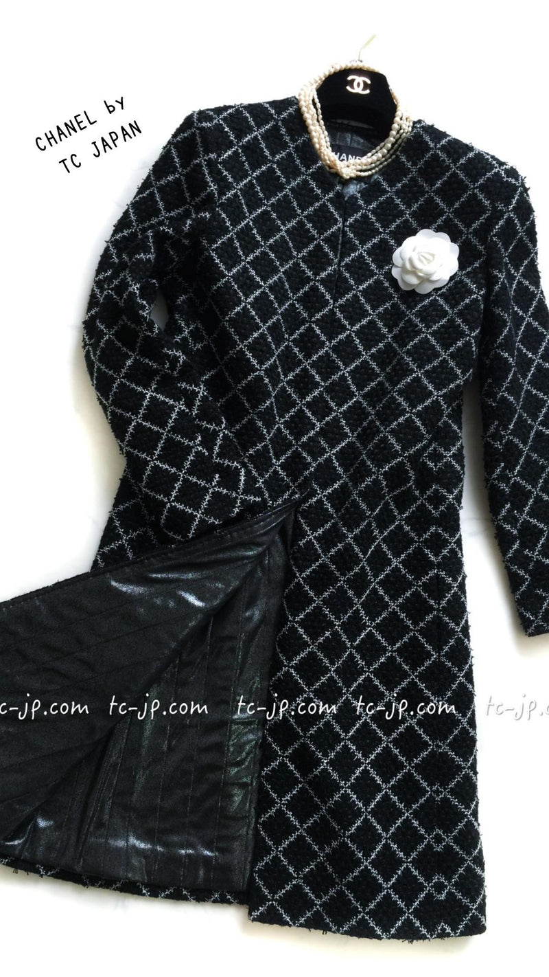 CHANEL 16S Black White Matelasse Plaid Print Coat 34 36 シャネル ブラック ホワイト マトラッセ コート 即発