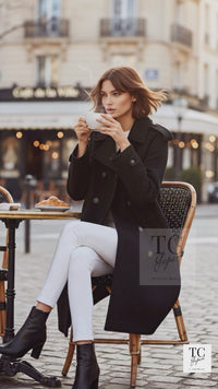 Wrapped in a deep, refined black, this CHANEL double-breasted coat is a piece that embodies both elegance and strength.