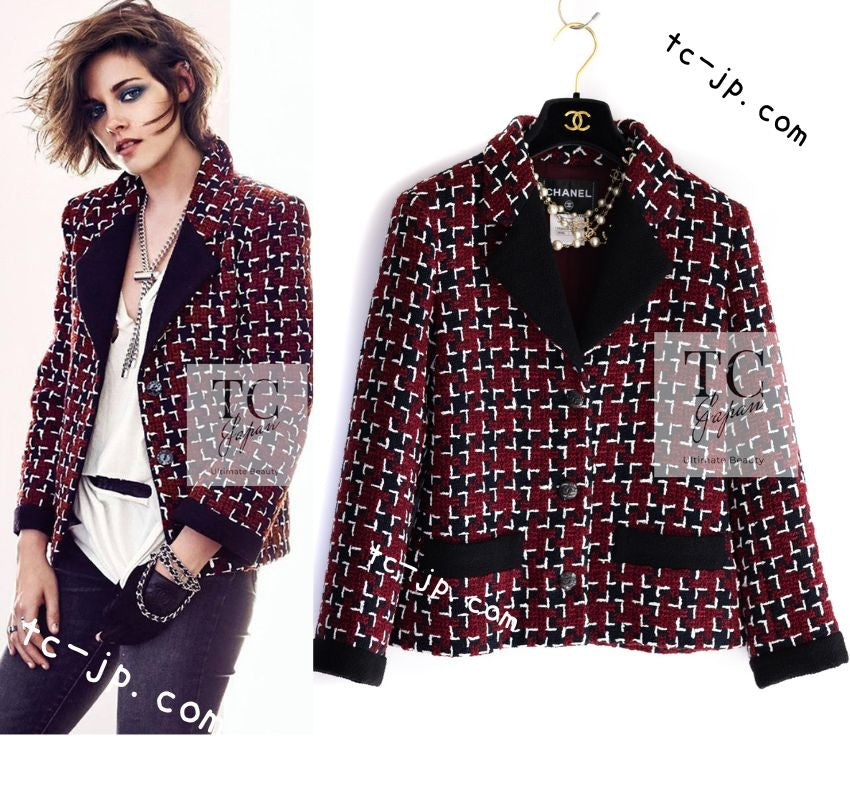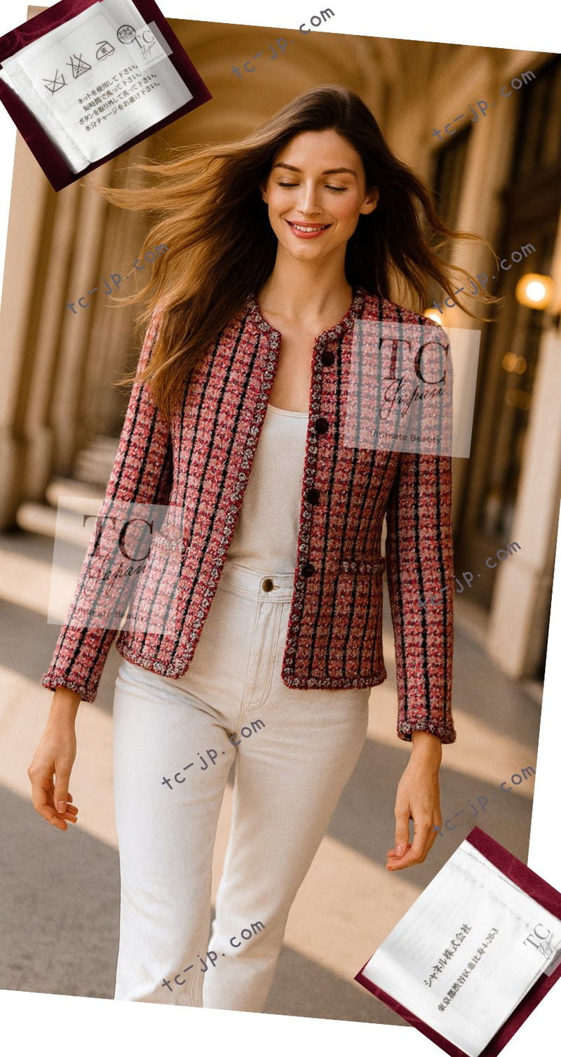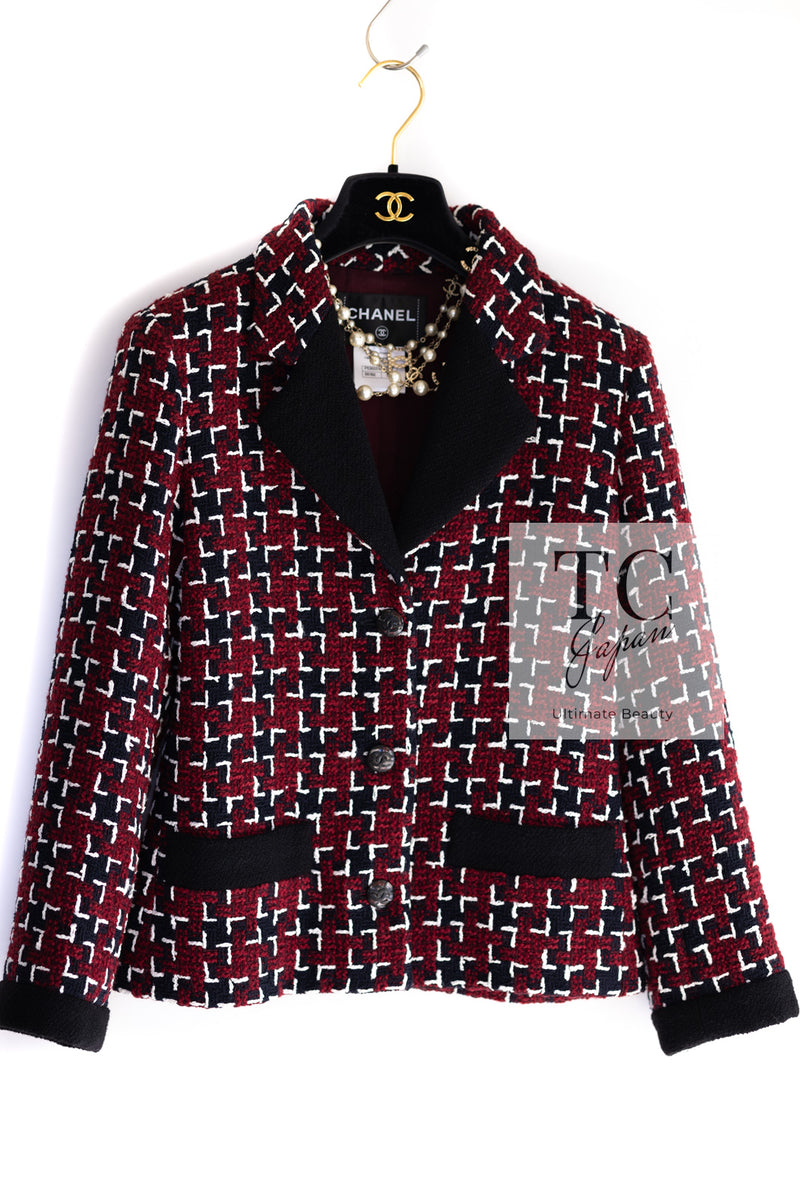 CHANEL 15A Burgundy Red Black Wool Tweed Jacket 36 38 シャネル バーガンディー レッド ブラック ウール ジャケット 即発
