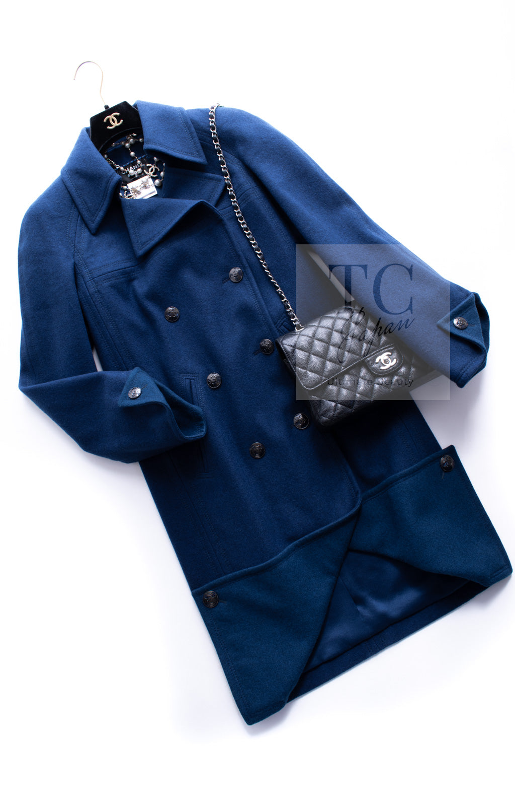 CHANEL 13A Dark Deep Blue Green Double Wool Coat 36 38 シャネル 深い ダークブルー グリーン ダブル ウール コート 即発