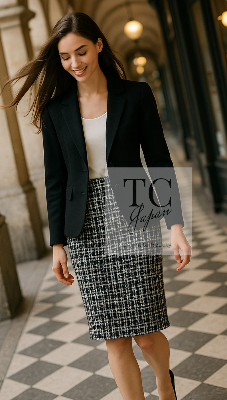 CHANEL 09S Black White Wool Cotton Tweed Skirt 34 シャネル ブラック ホワイト ウール コットン ツイード スカート 即発